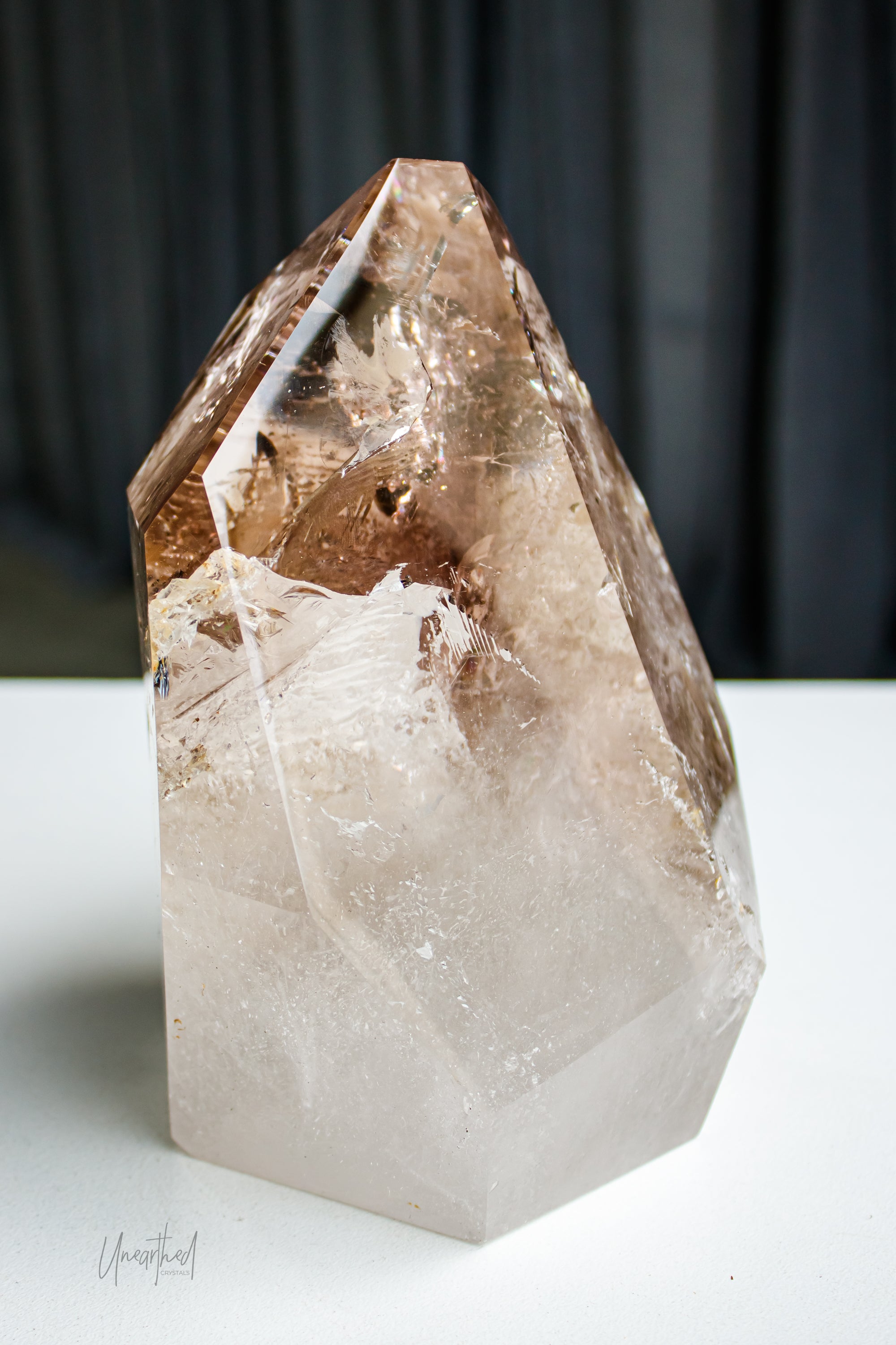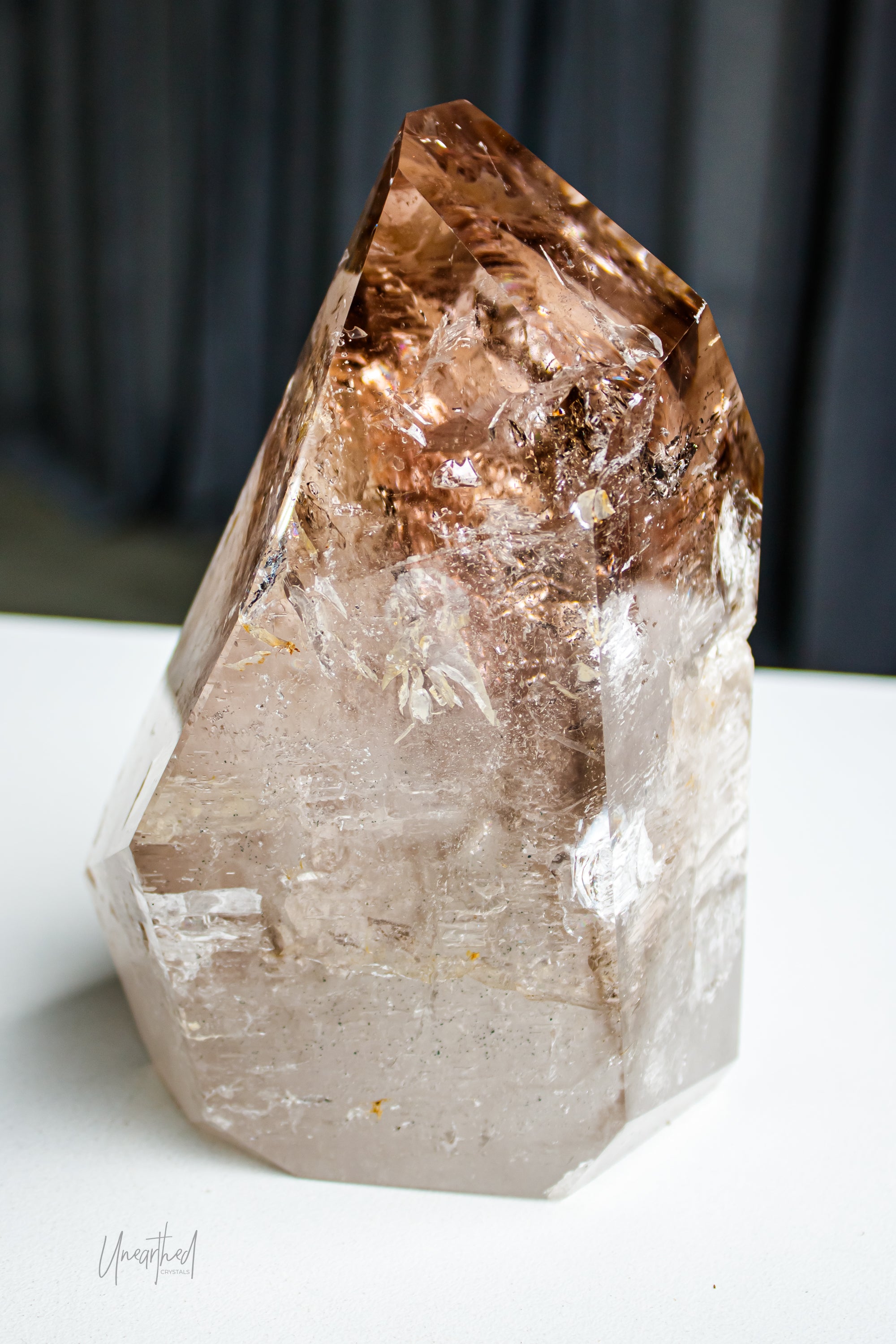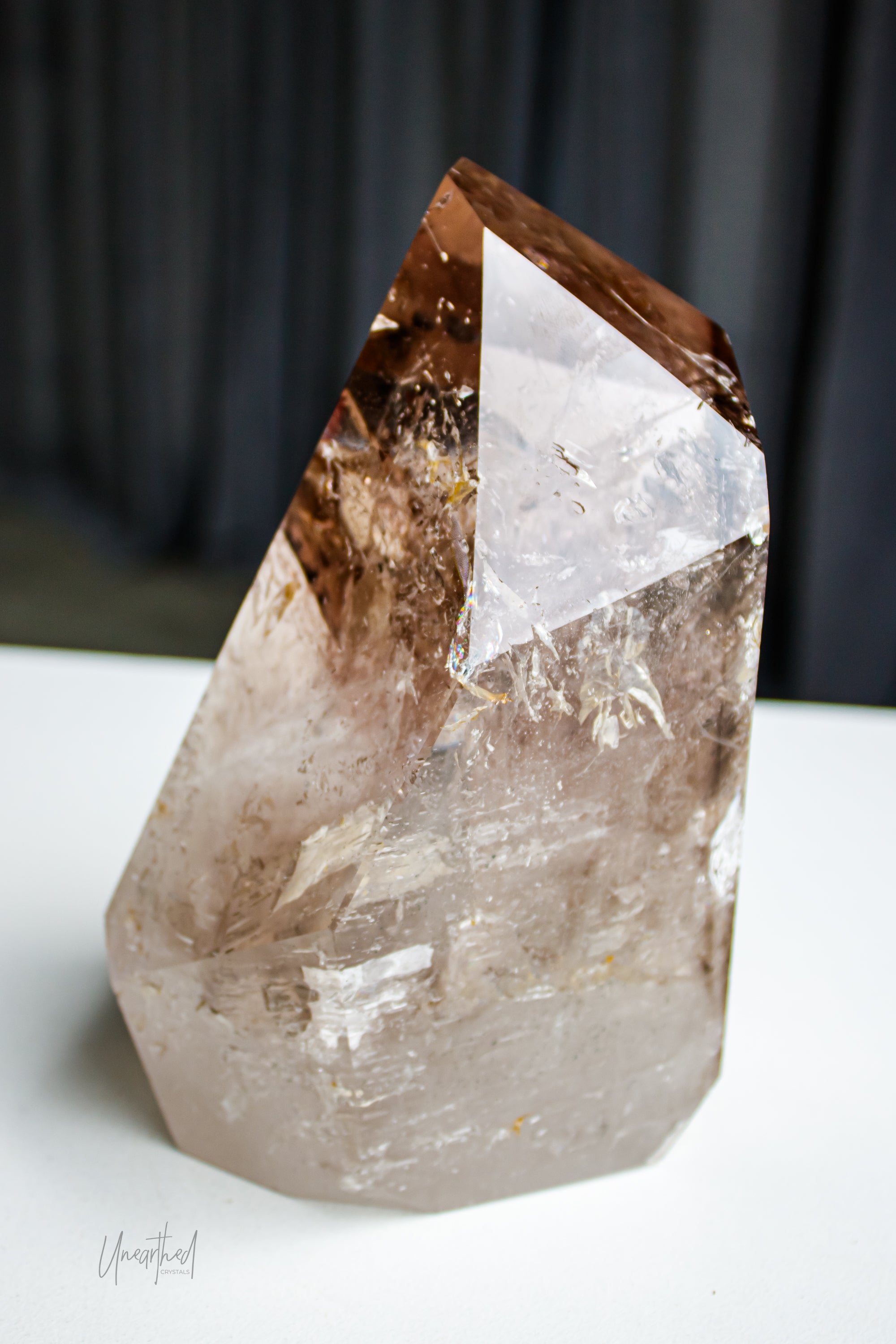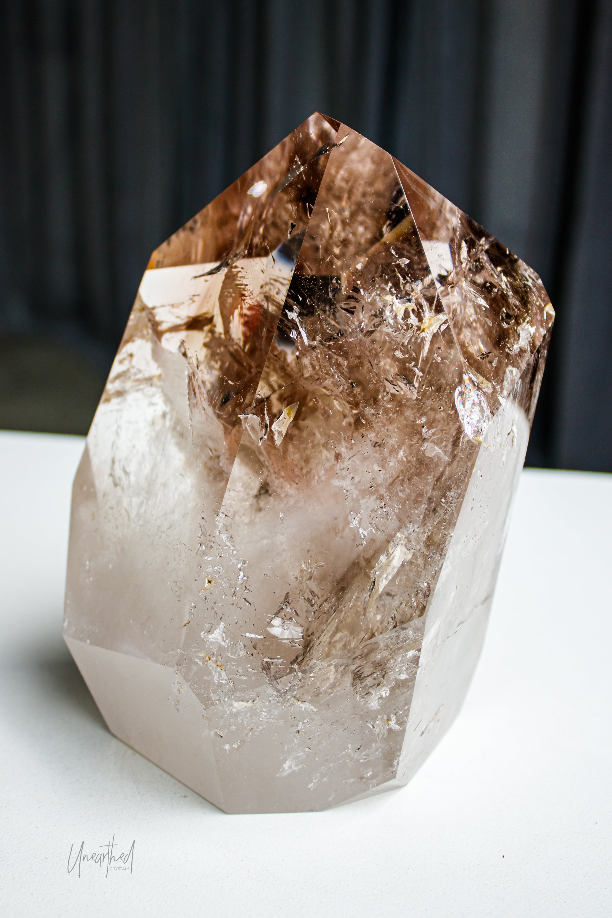 Clear Quartz is a form of Silicon Dioxide (SiOā) and belongs to the hexagonal crystal system. It forms in long, prismatic points and can often be found in clusters or stunning solitary formations. Its transparency comes from the purity of its growth environmentāand even microscopic inclusions can cause fabulous rainbows inside.