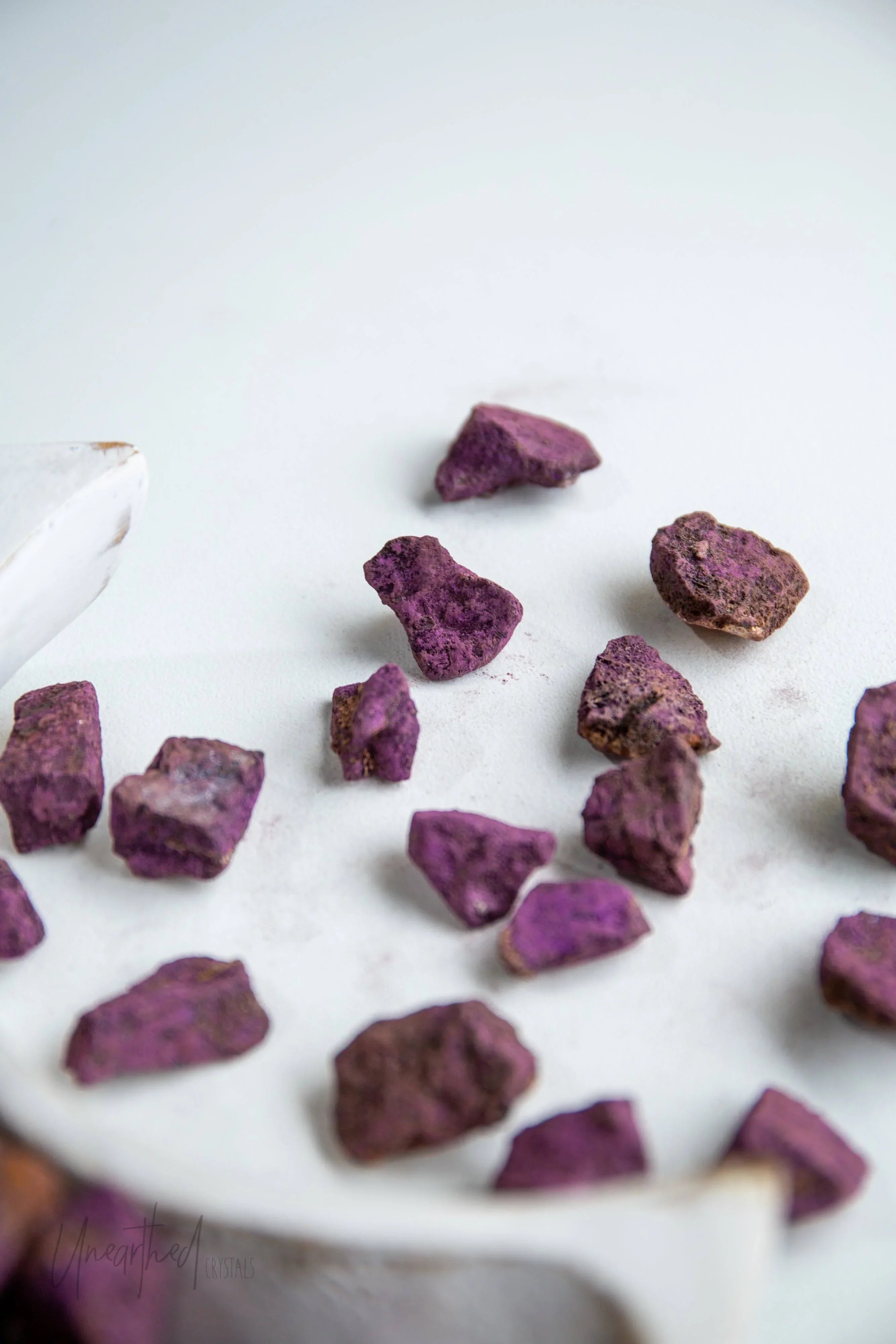Purpurite stimulates the Crown Chakra and connects you to a higher consciousness. It makes you more aware of your own mind and the energy of the universe, allowing you to open yourself to truth in all ways. Purpurite helps you to access and trust your insight.