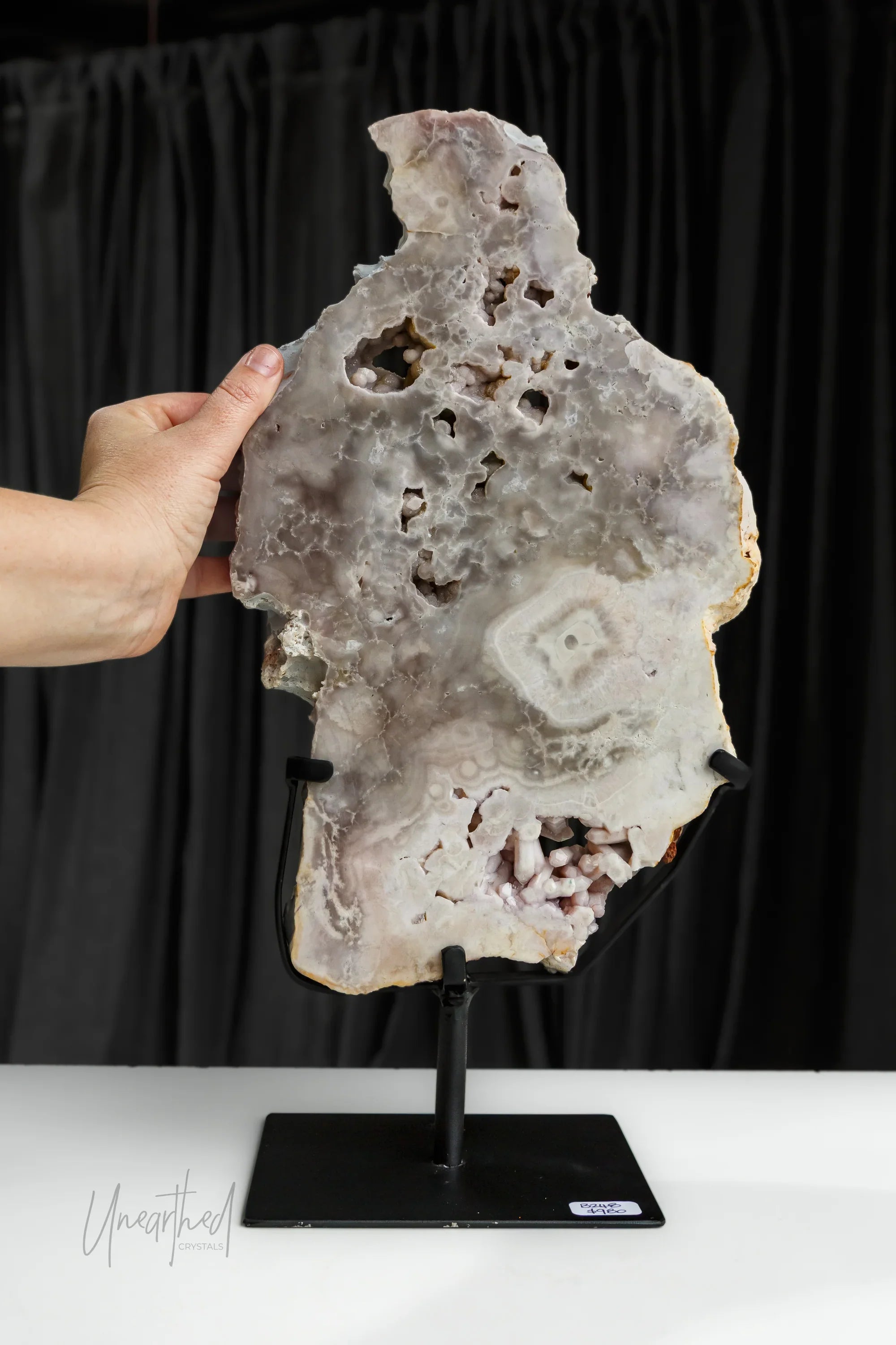 Pink Amethyst Slab on Custom Stand | Statement Piece