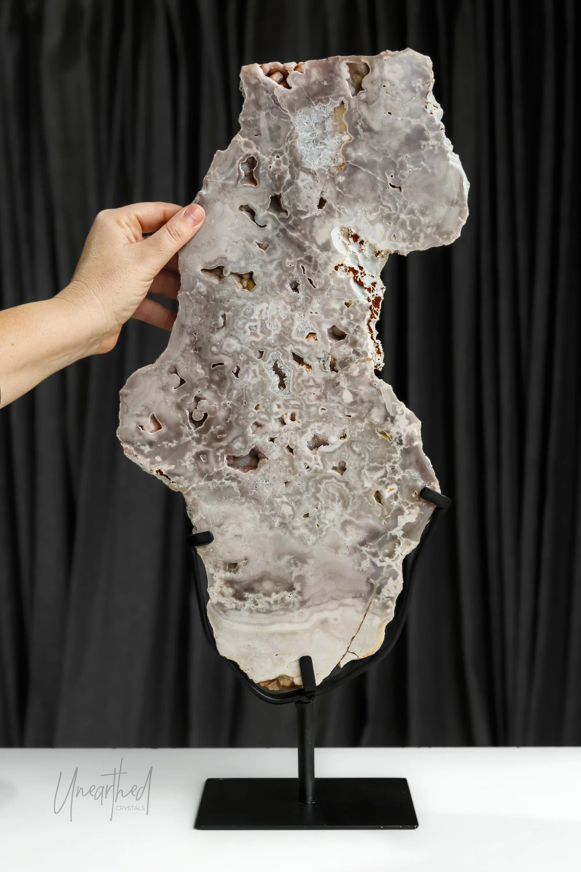 Pink Amethyst Slab on Custom Stand | Statement Piece