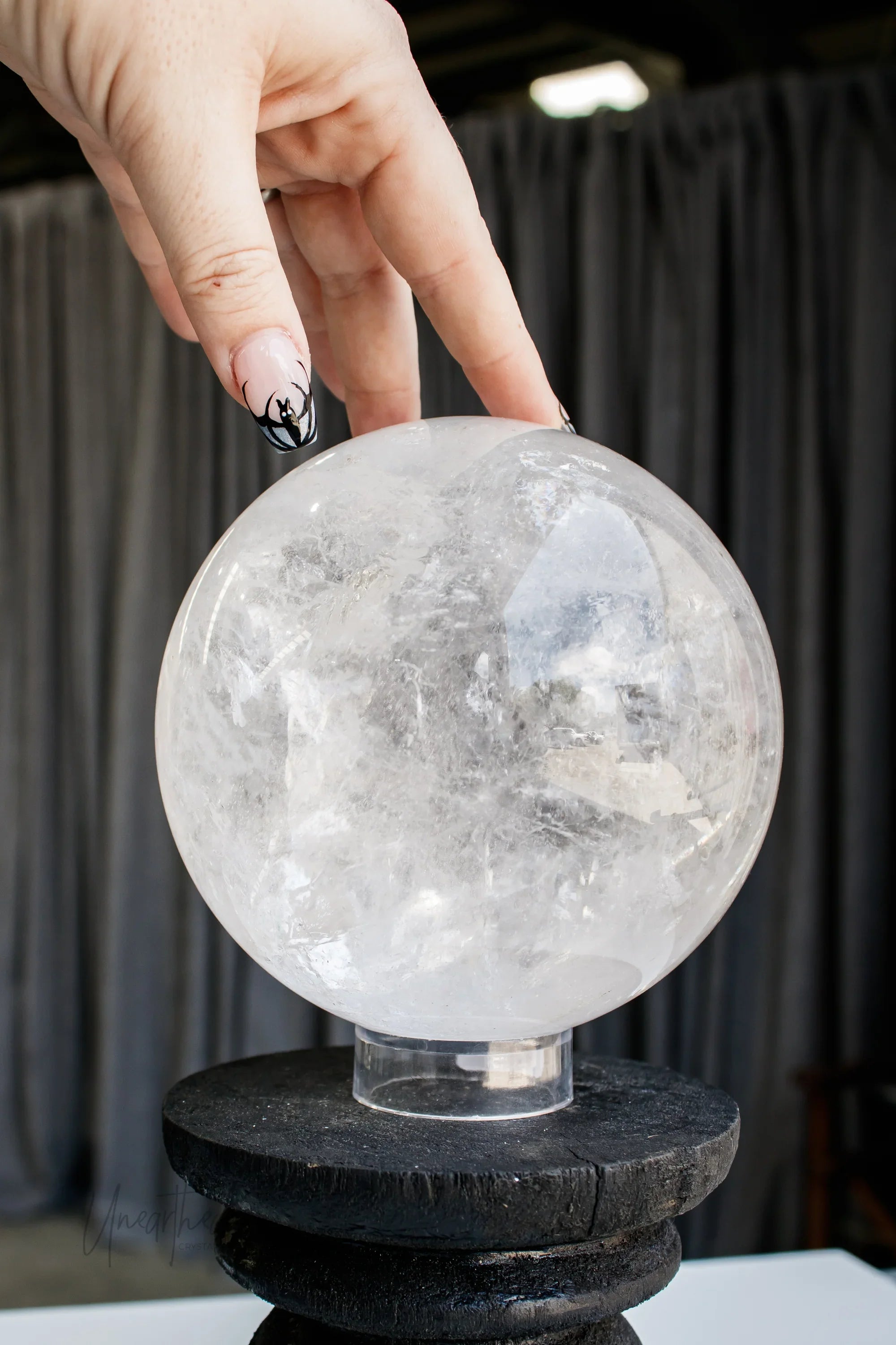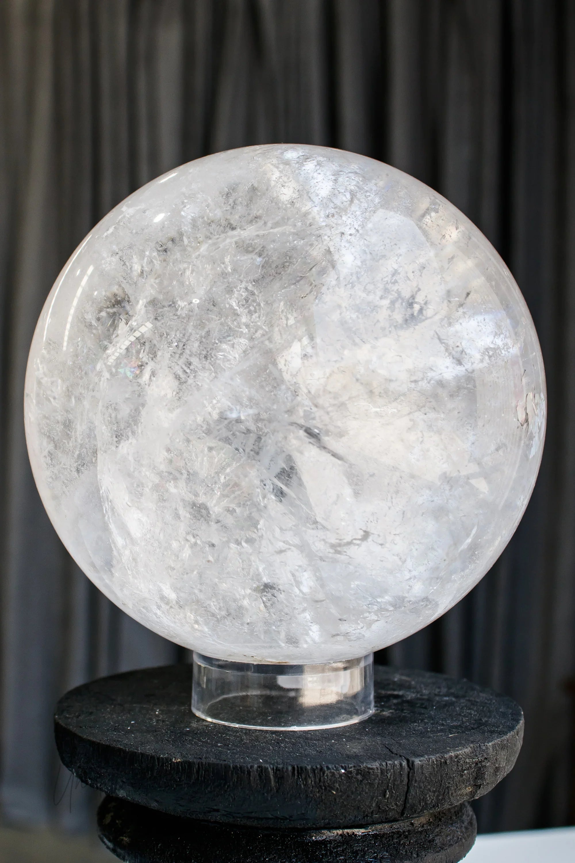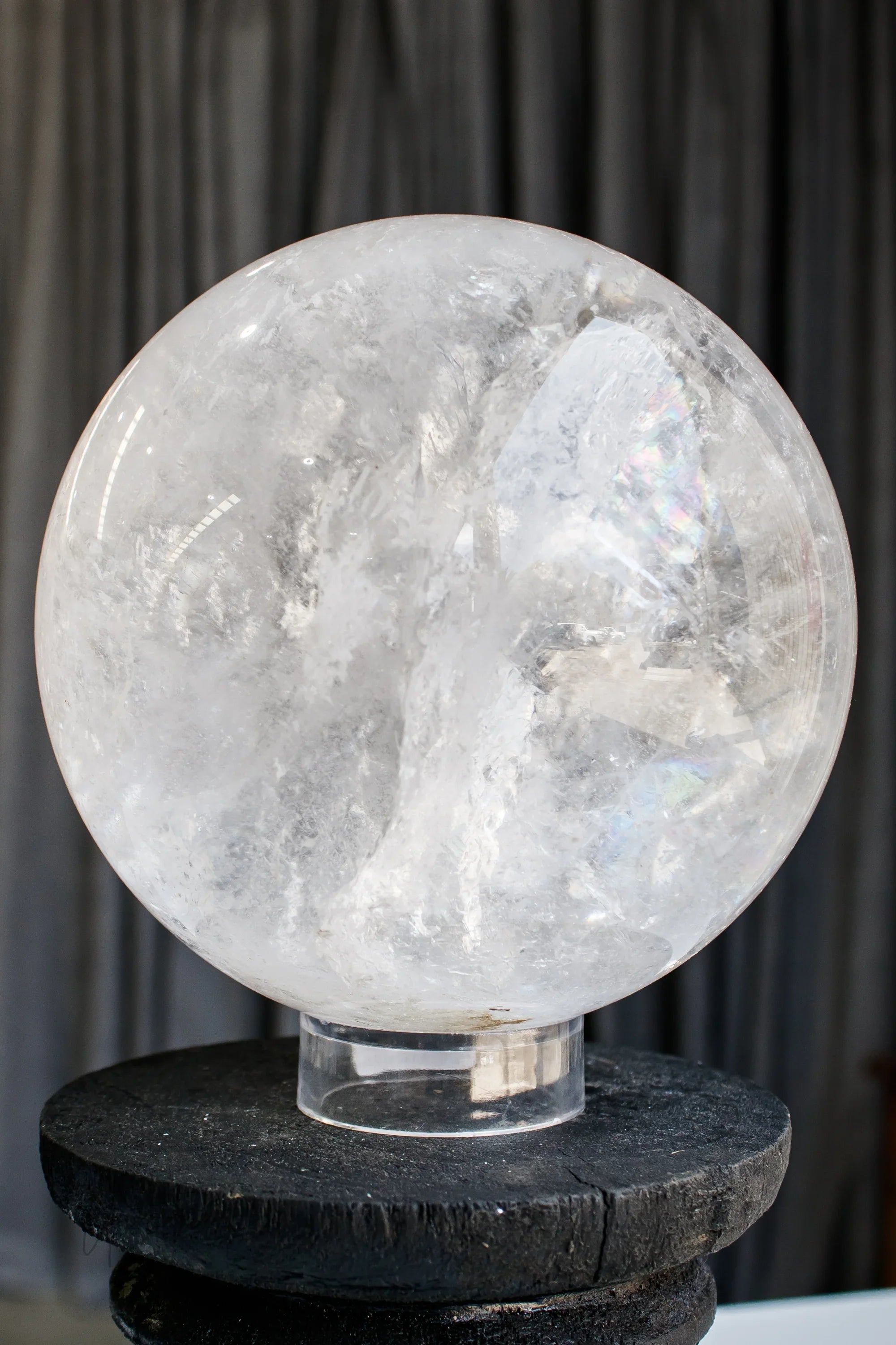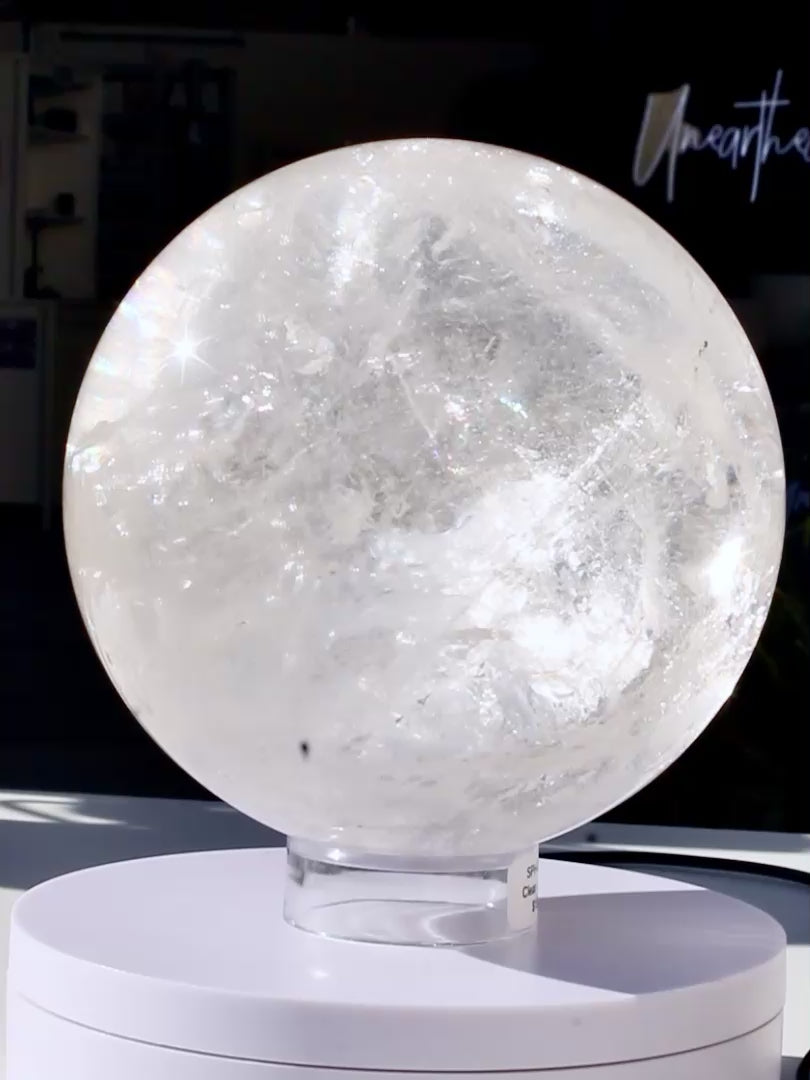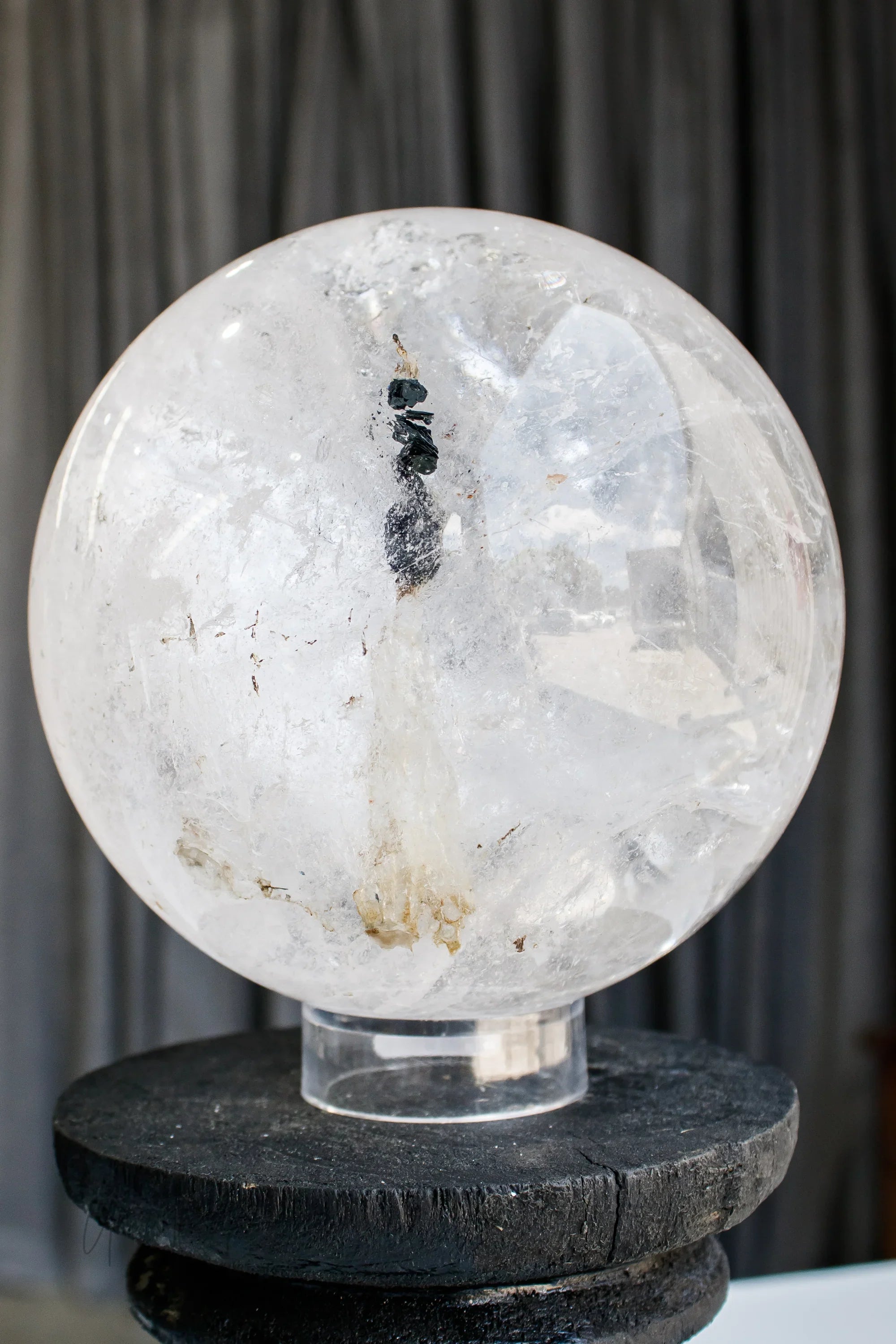 Clear Quartz Sphere with Specularite Inclusions | Statement Piece