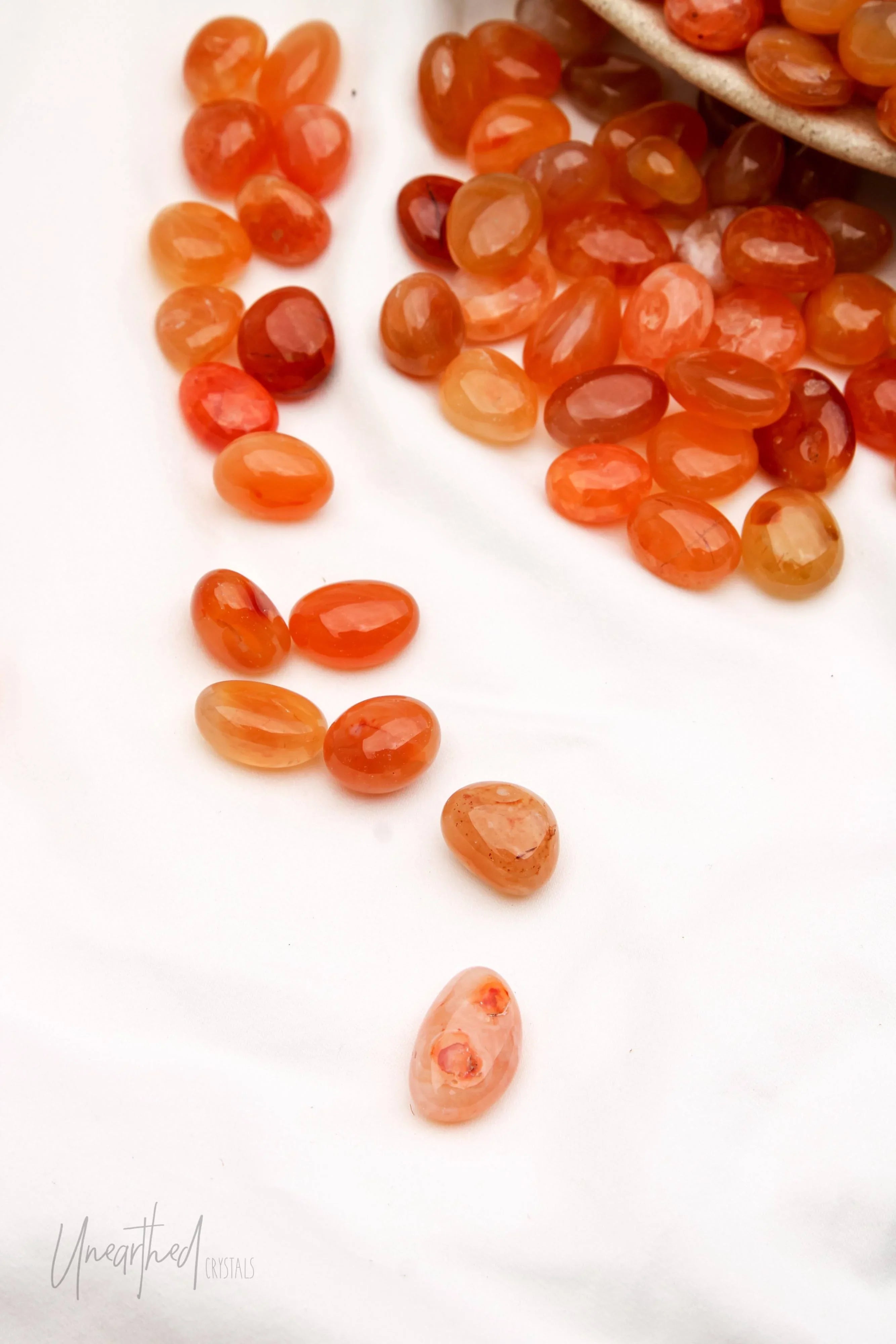 COMPANION STONES: Citrine (to amplify joy and creativity), Red Jasper (for grounding energy), and Rose Quartz (to balance fiery passion with self-love).