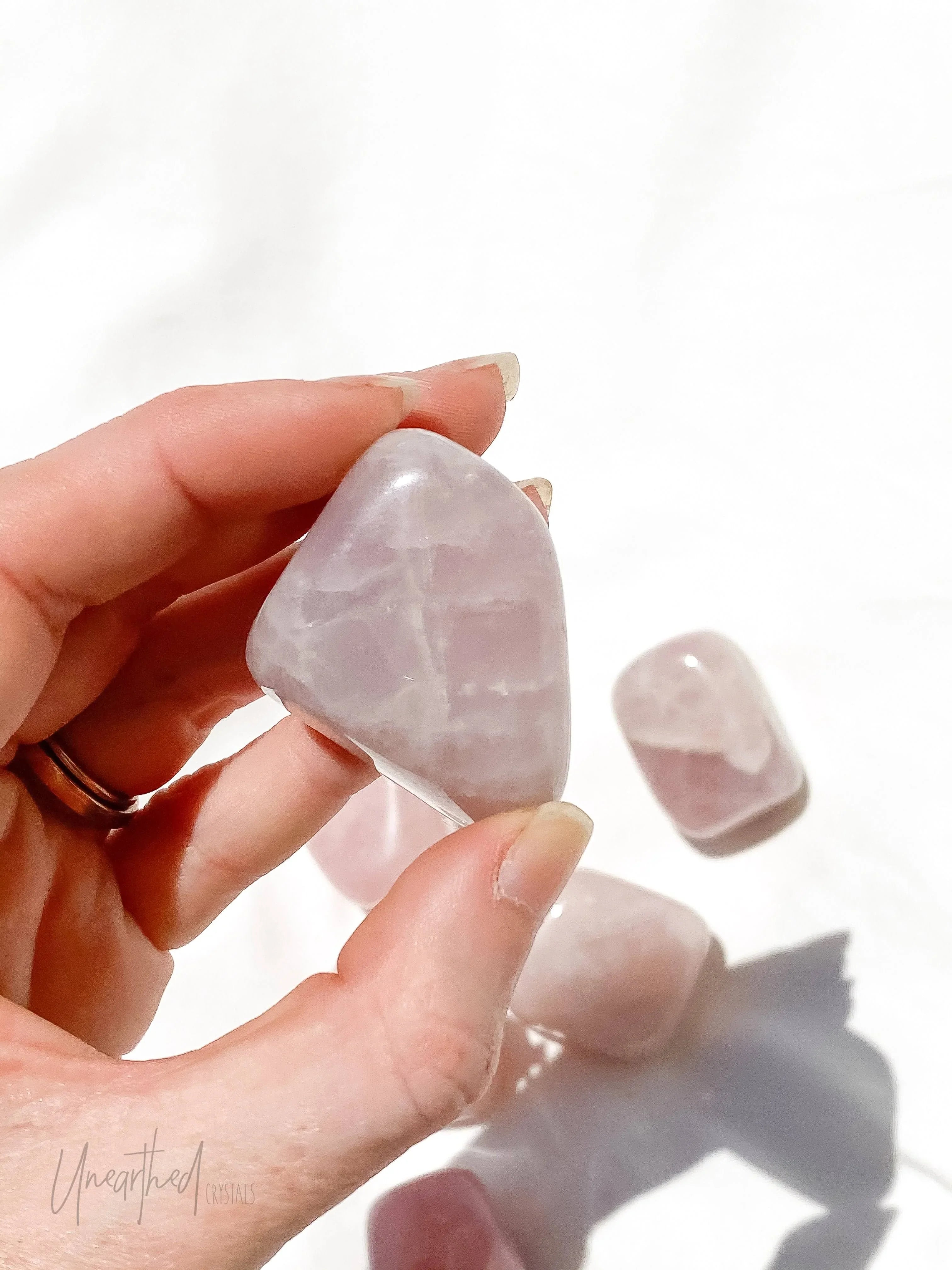 COMPANION STONES: Amethyst (for spiritual love and protection), Rhodonite (for deeper emotional healing), and Clear Quartz (to amplify its gentle vibes).