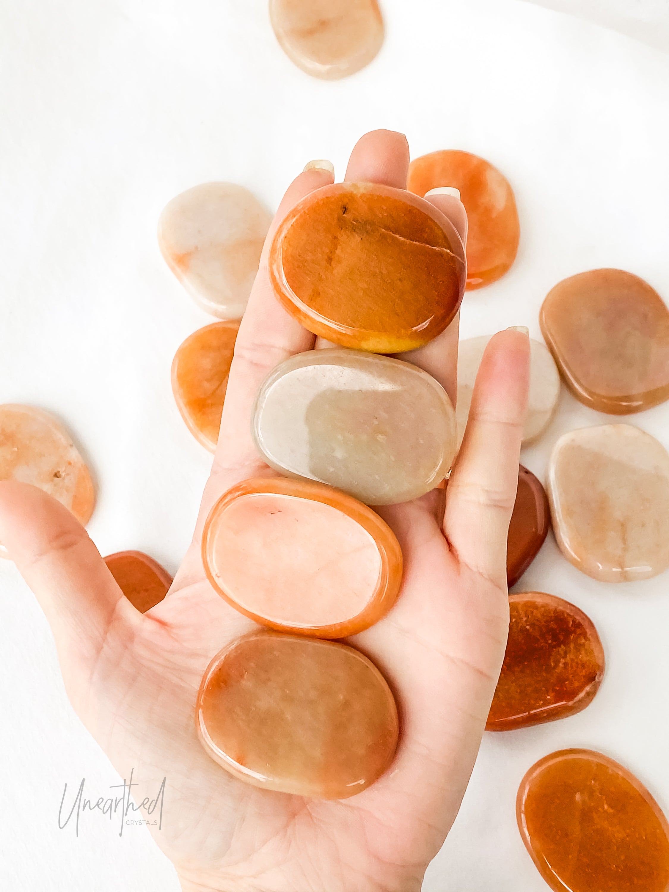 Get your vibes right with this Flat Palm Stone, perfect for meditation and energy healing with a side of tranquillity. The smooth flat shape makes it comfortable to hold and easy to transport - the perfect crystal companion anytime, anyplace!