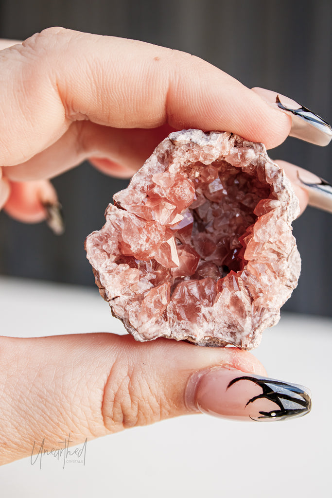 Pink Amethyst gets its dreamy hue from trace amounts of hematite or iron in its crystalline structure. Unlike Rose Quartz (which is opaque), Pink Amethyst forms in geodes and druzy clusters, just like purple Amethyst—but with a sweeter, rosier vibe.