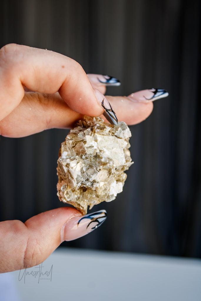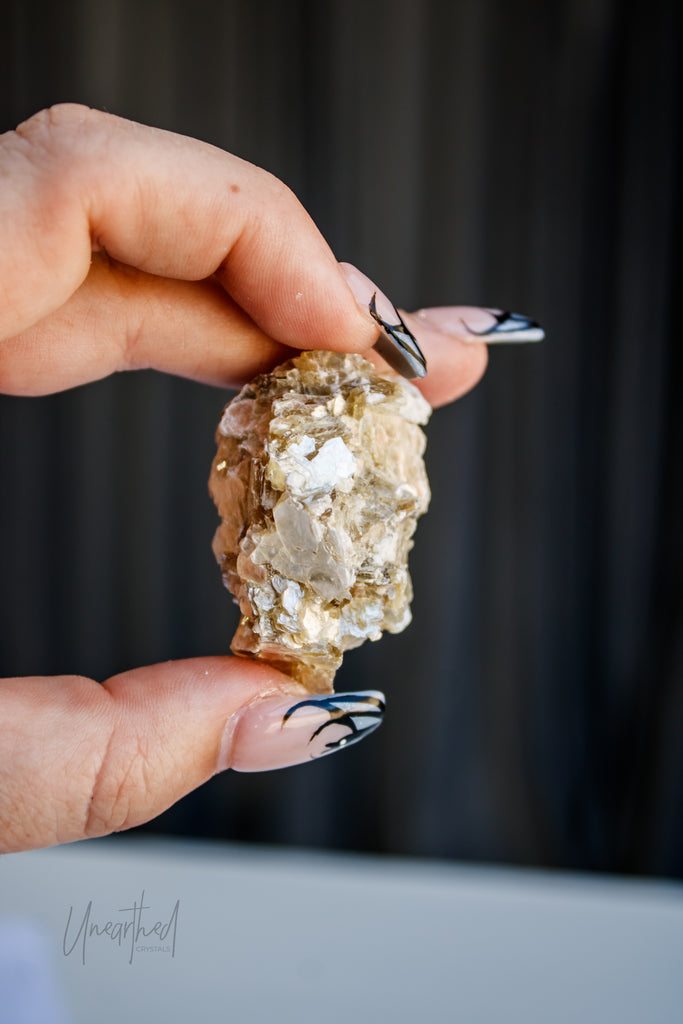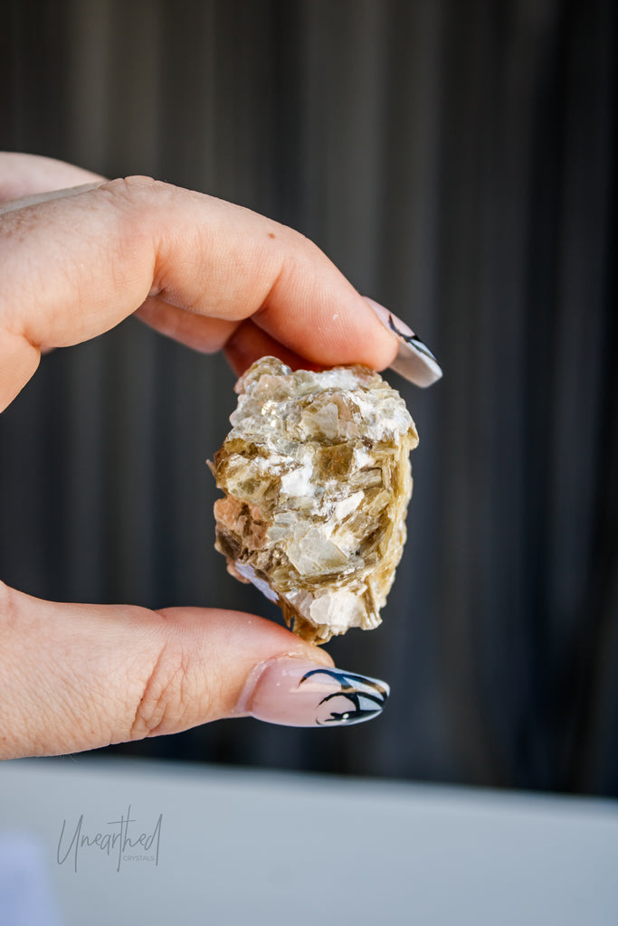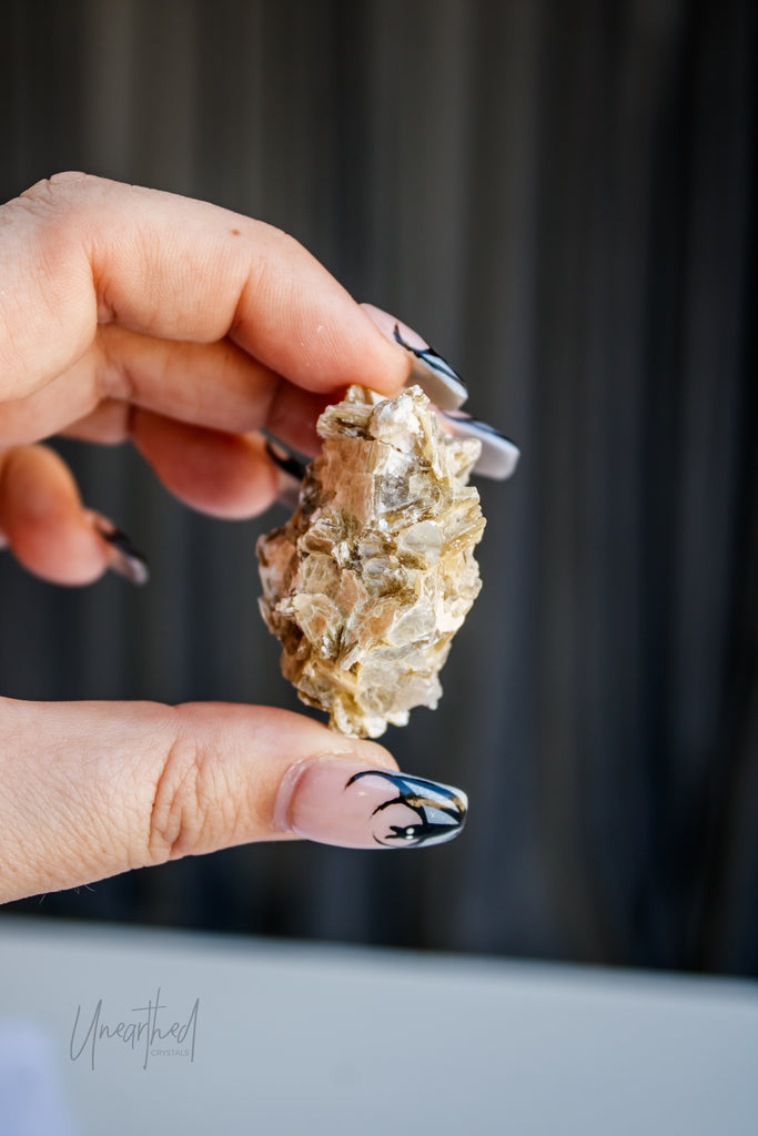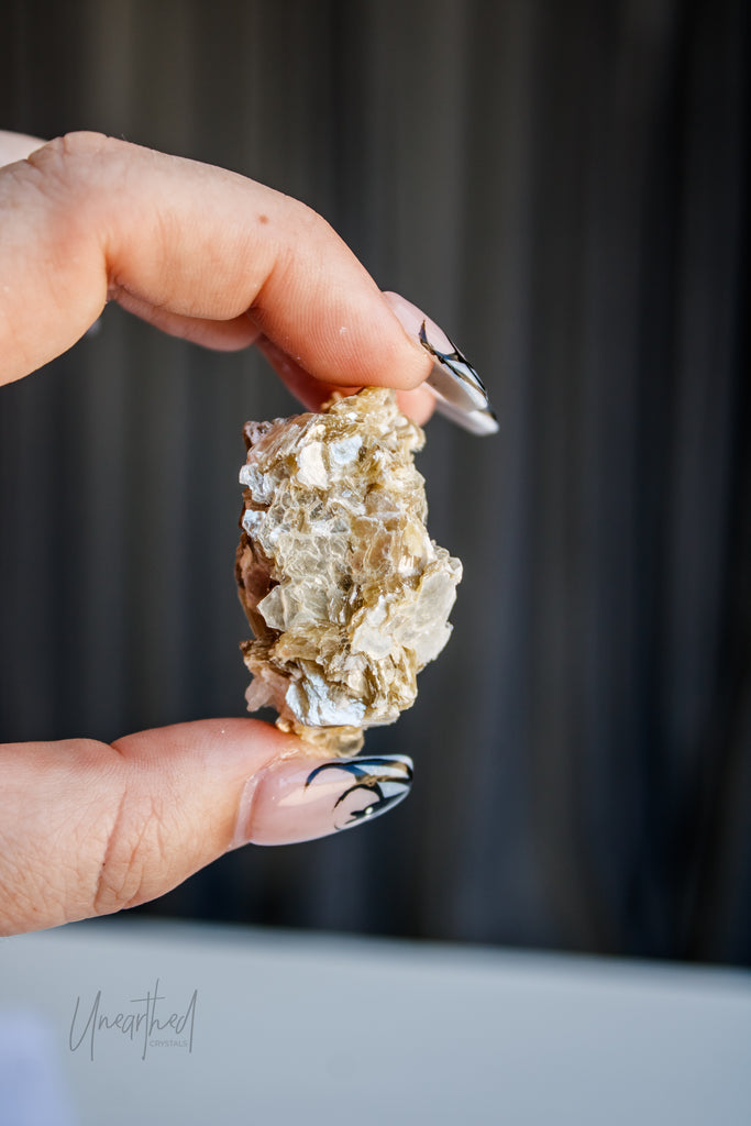 Golden Muscovite, with its dazzling, light-reflecting shimmer, is like having a cosmic spotlight illuminating your mind and spirit. It’s all about clarity, intuition, and inspiration, making it the ultimate muse for dreamers, thinkers, and visionaries alike.