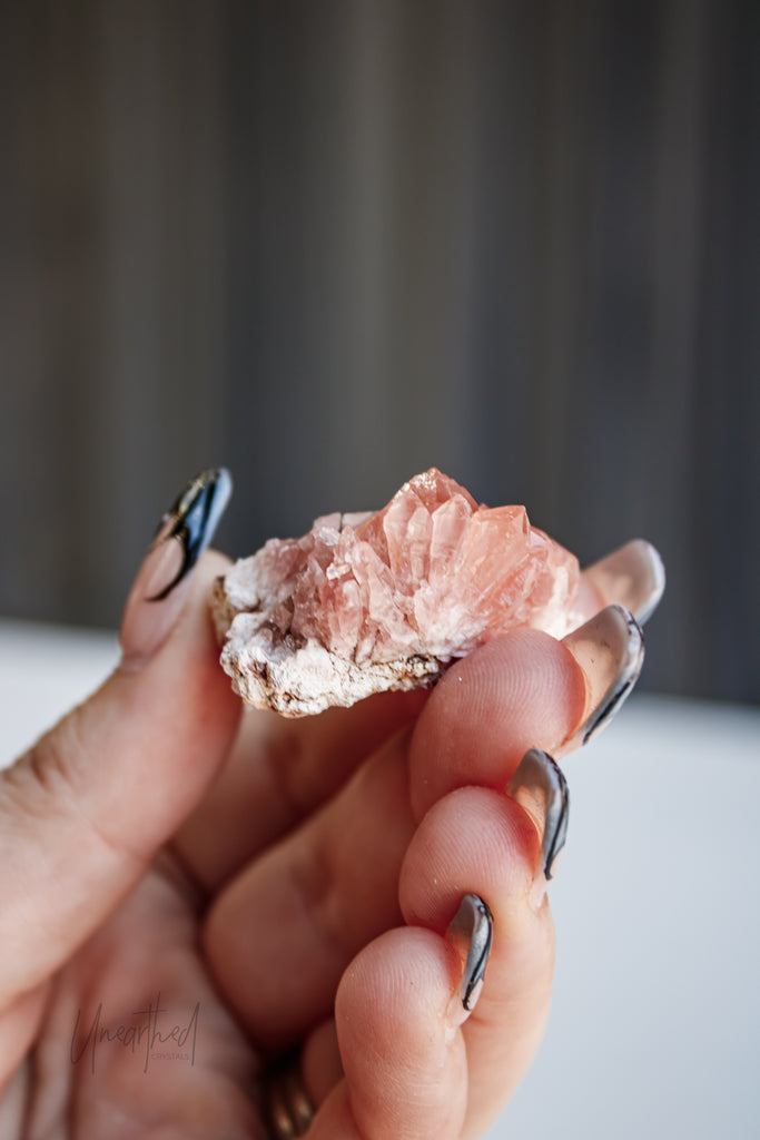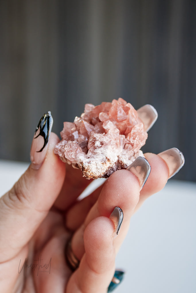 Pink Amethyst gets its dreamy hue from trace amounts of hematite or iron in its crystalline structure. Unlike Rose Quartz (which is opaque), Pink Amethyst forms in geodes and druzy clusters, just like purple Amethyst—but with a sweeter, rosier vibe.
