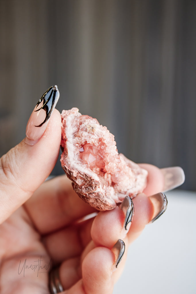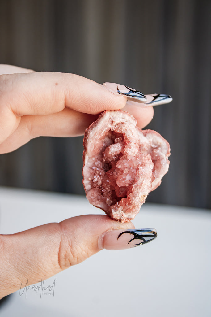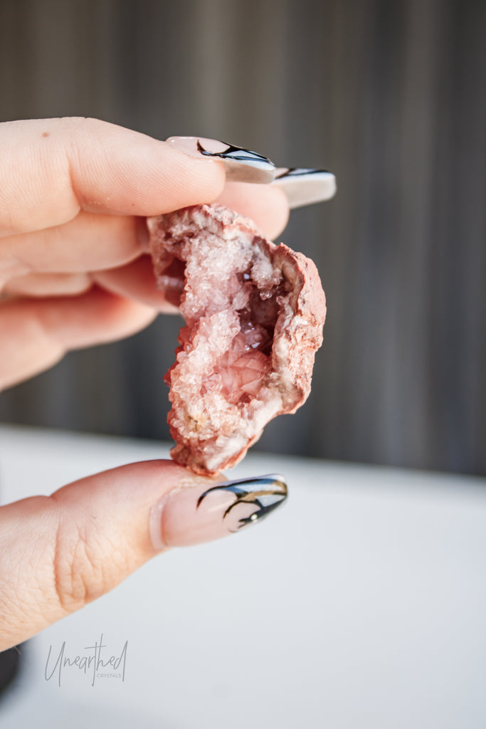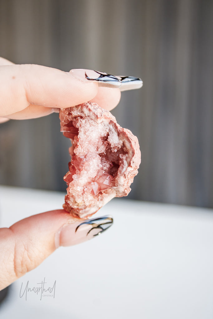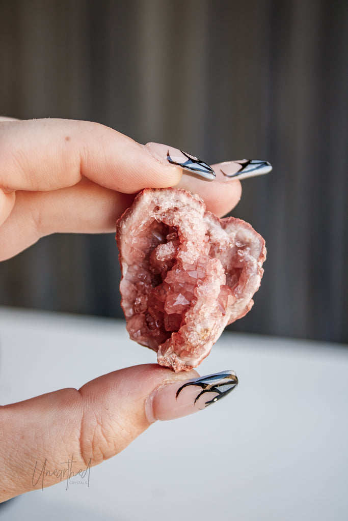 Pink Amethyst gets its dreamy hue from trace amounts of hematite or iron in its crystalline structure. Unlike Rose Quartz (which is opaque), Pink Amethyst forms in geodes and druzy clusters, just like purple Amethyst—but with a sweeter, rosier vibe.