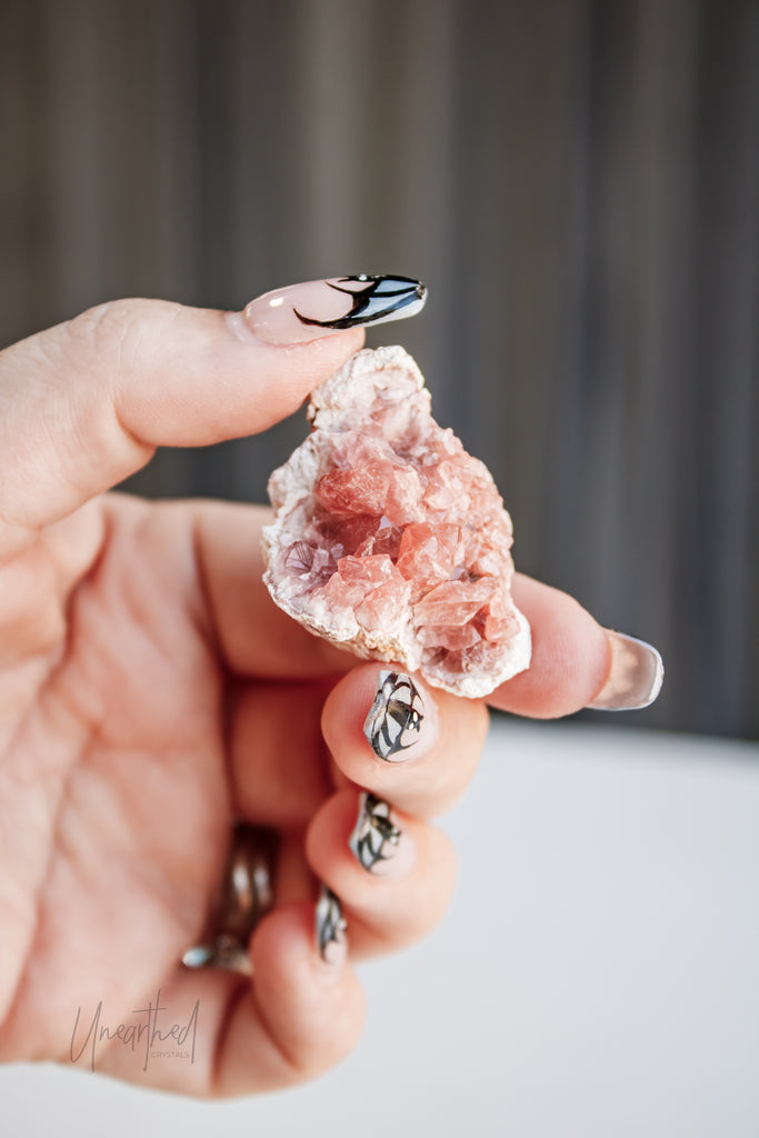Pink Amethyst gets its dreamy hue from trace amounts of hematite or iron in its crystalline structure. Unlike Rose Quartz (which is opaque), Pink Amethyst forms in geodes and druzy clusters, just like purple Amethyst—but with a sweeter, rosier vibe.