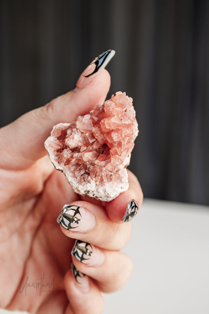 Pink Amethyst gets its dreamy hue from trace amounts of hematite or iron in its crystalline structure. Unlike Rose Quartz (which is opaque), Pink Amethyst forms in geodes and druzy clusters, just like purple Amethyst—but with a sweeter, rosier vibe.