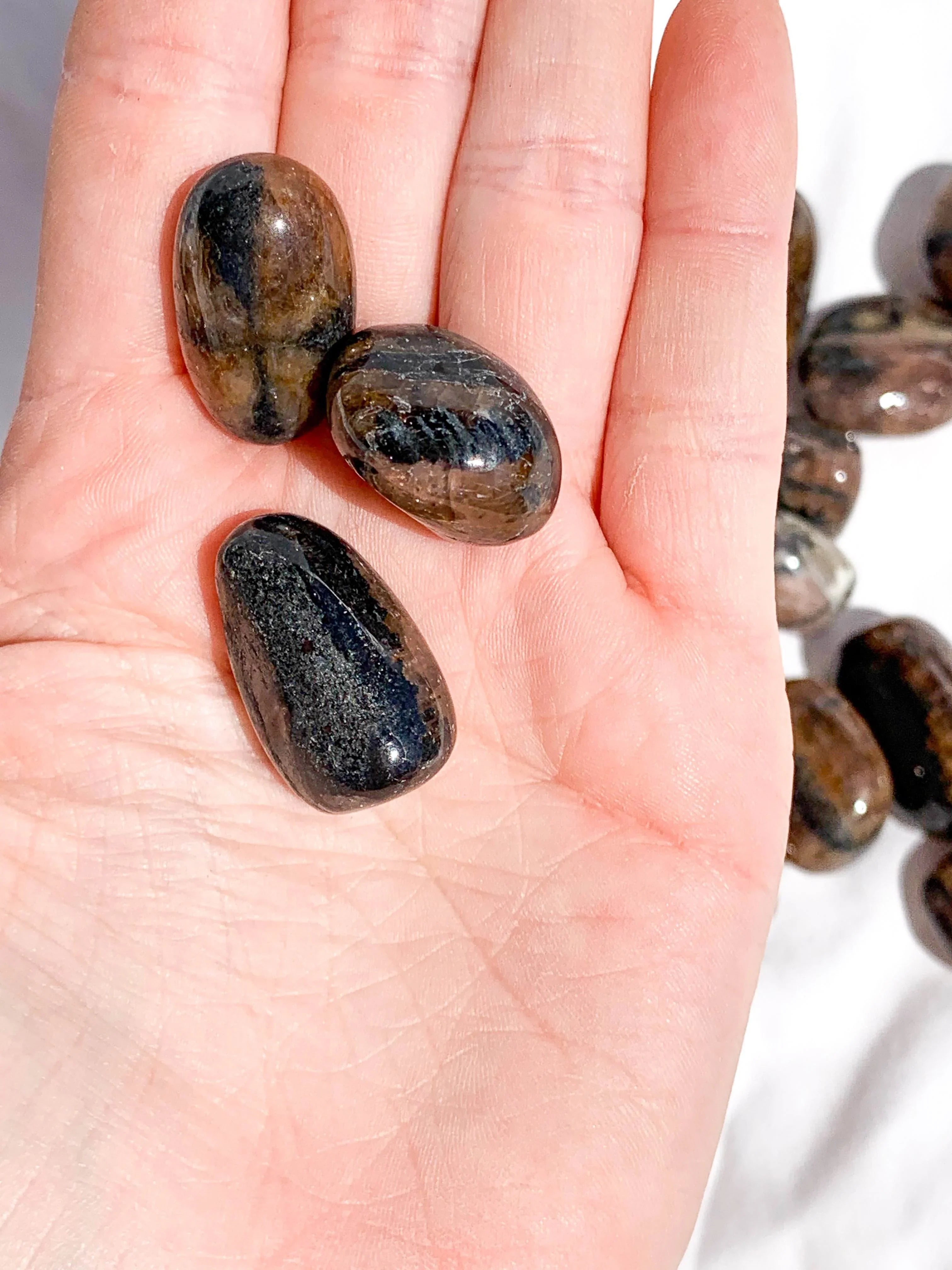 🌙 All of our tumbles are sized not by eye, but by weight so we can be sure all pieces within a size are cohesive. The weight range for Small tumbles is as follows: