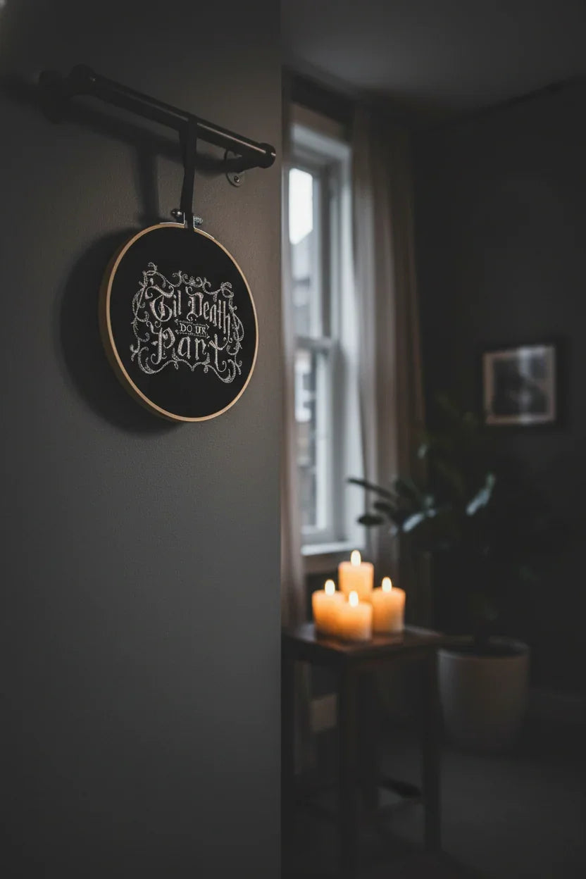 These beautiful pieces of wall art have been machine embroidered onto felt and mounted onto a 15.5cm bamboo hoop. The back is sealed with additional felt to protect the back of the piece.