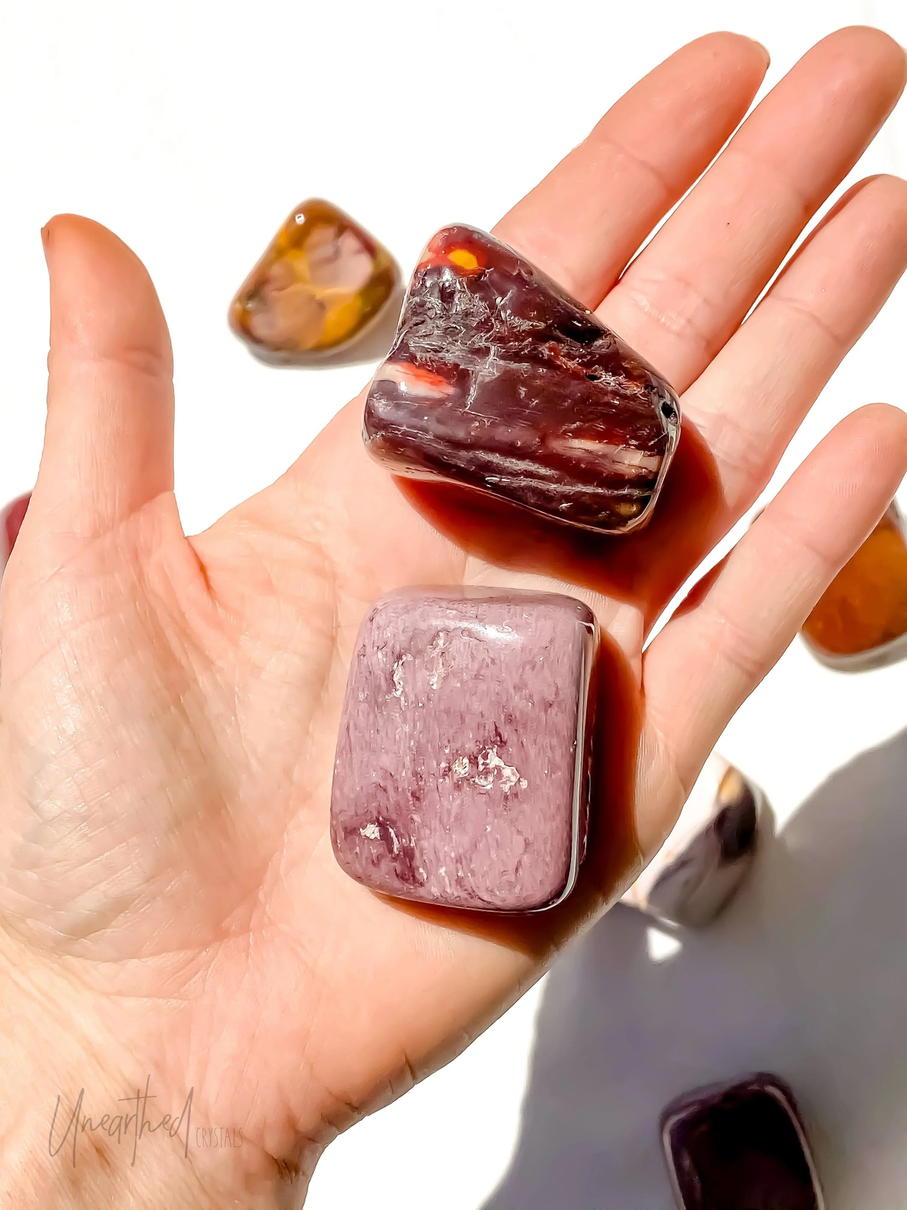 Mookaite is your ticket to a life filled with vibrancy and courage. With its earthy palette of reds, yellows, and creams, this Australian gem radiates a bold yet grounding energy that says, “Let’s explore life without fear!”