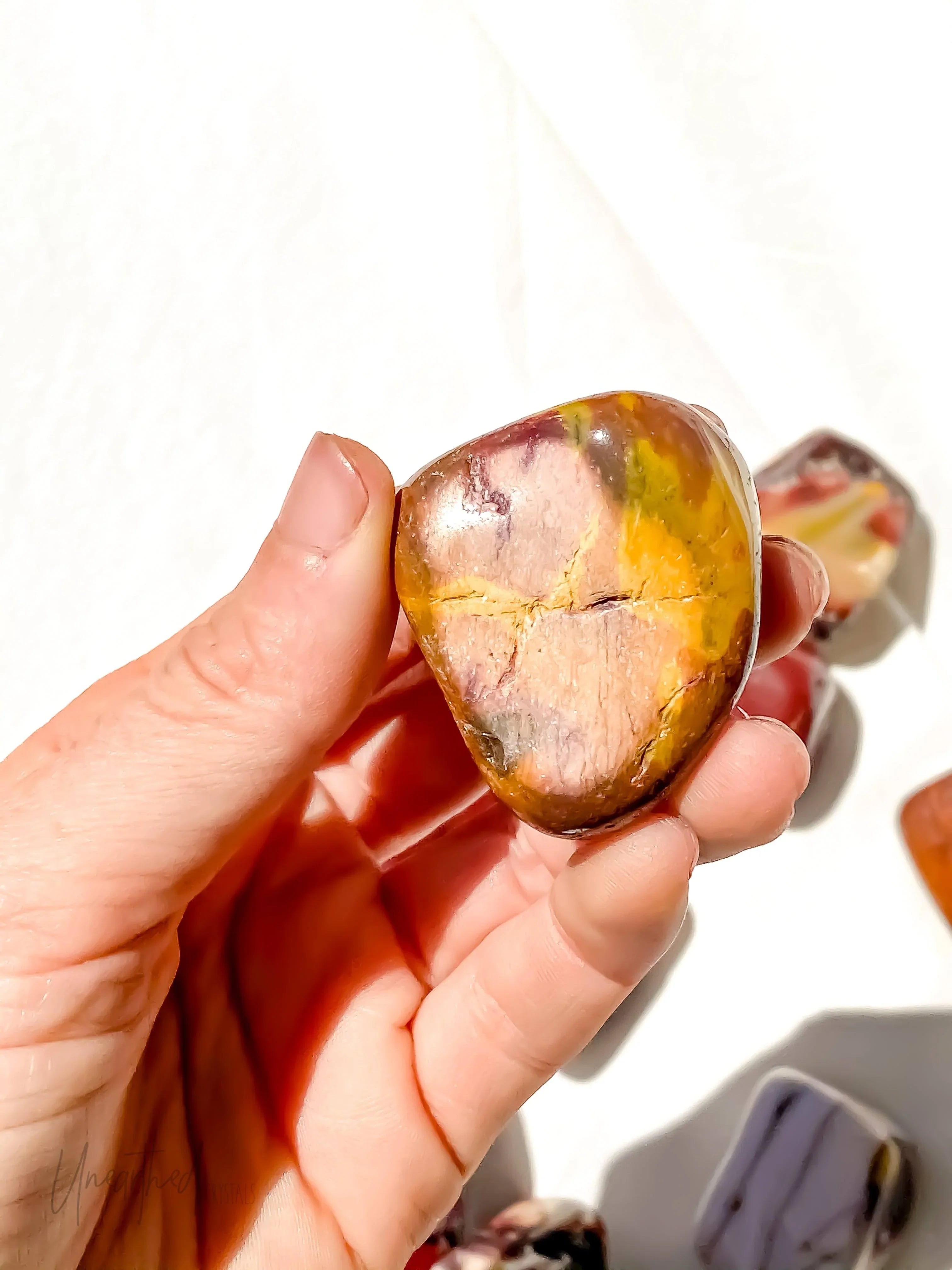 Spiritually, Mookaite is like a bridge between your primal instincts and higher wisdom. It encourages a balanced, adaptable approach to life while connecting you to the nurturing energy of the Earth.