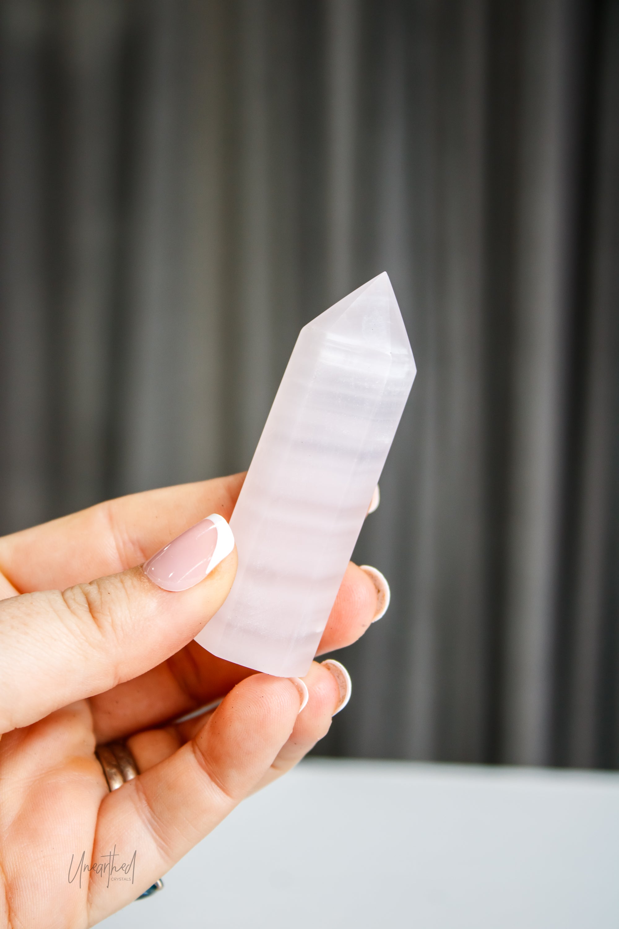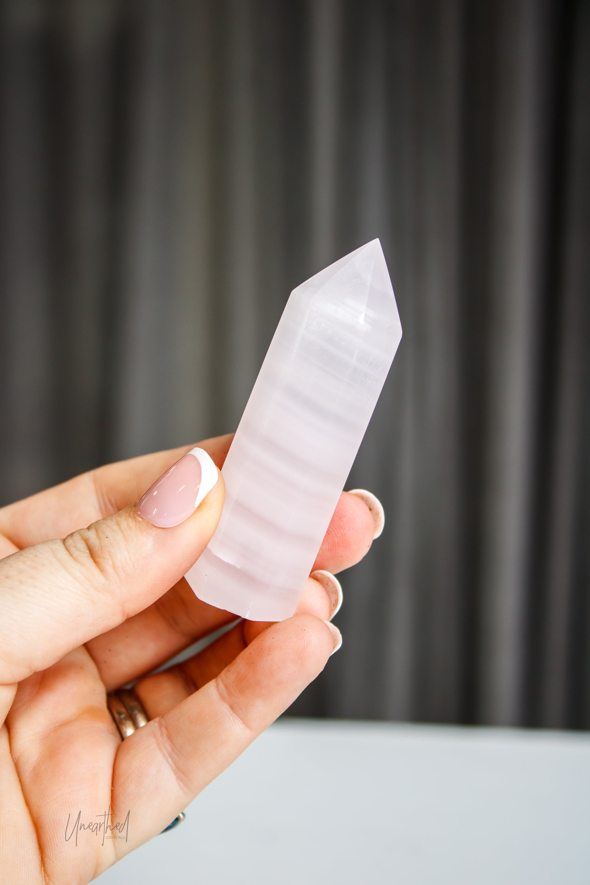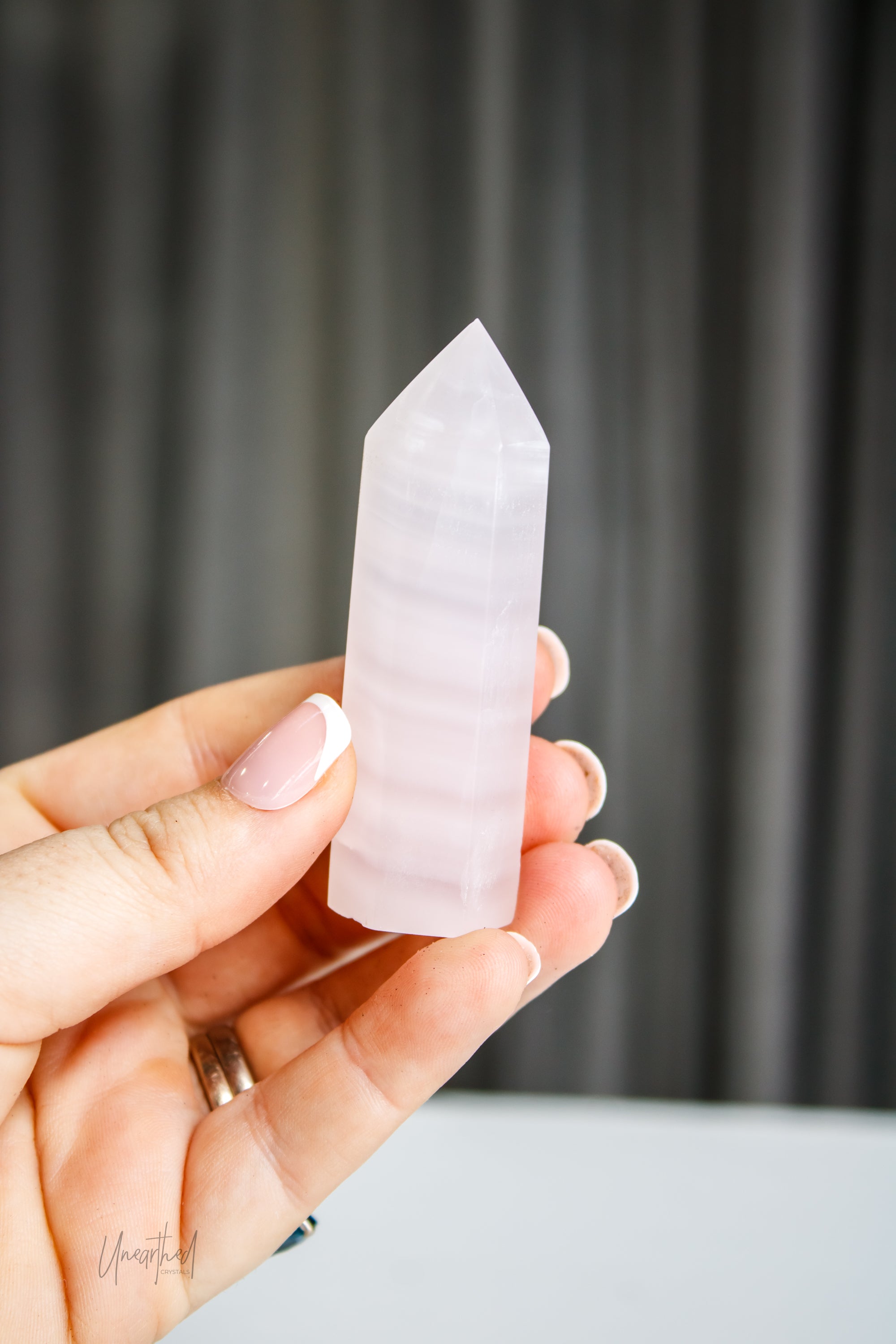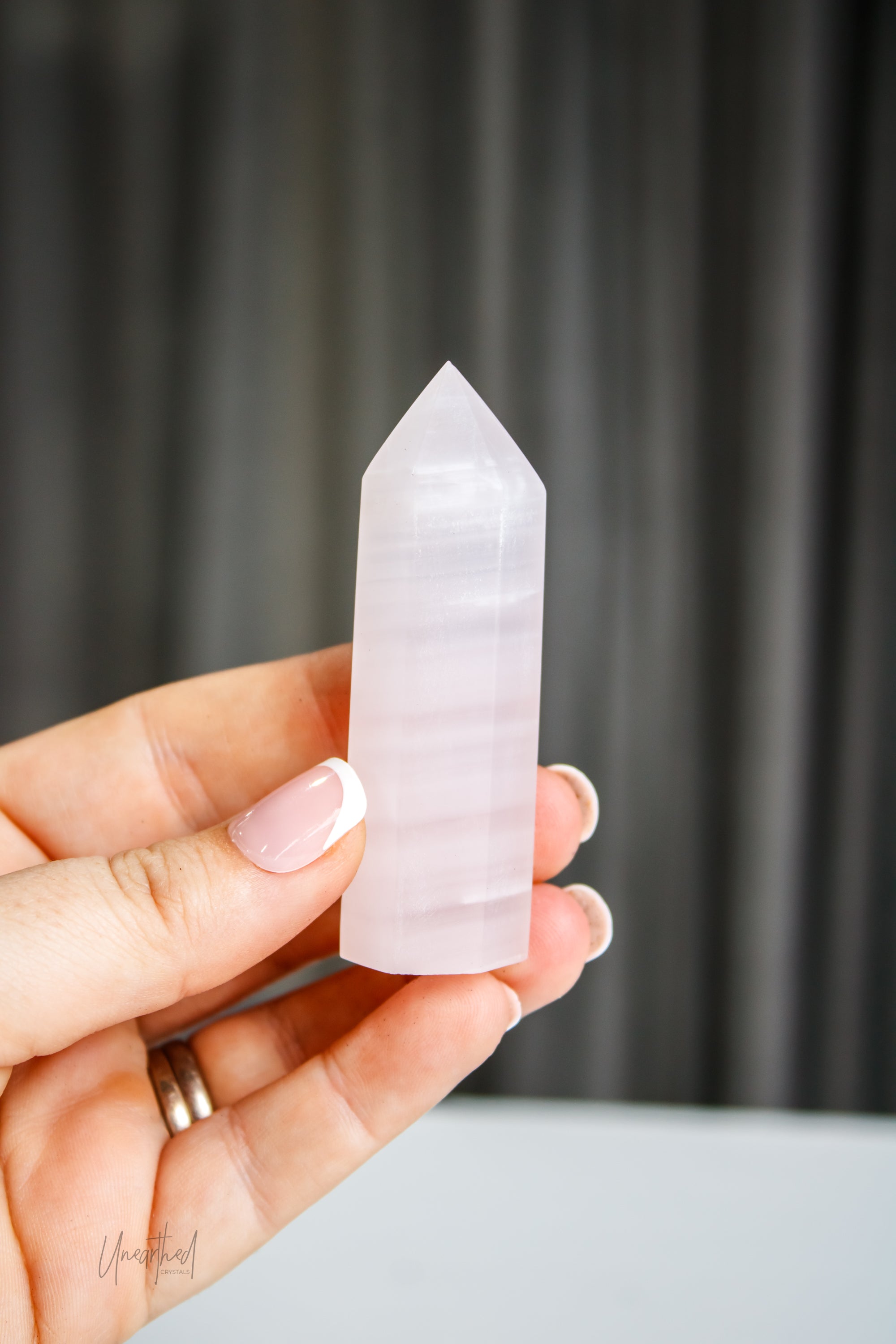 Mangano Calcite gets its stunning pink hue from manganese, a mineral known for boosting energy and promoting calmness. And under UV light? This stone fluoresces an ethereal neon pink glow, adding an extra layer of magic to its already high-vibe energy.
