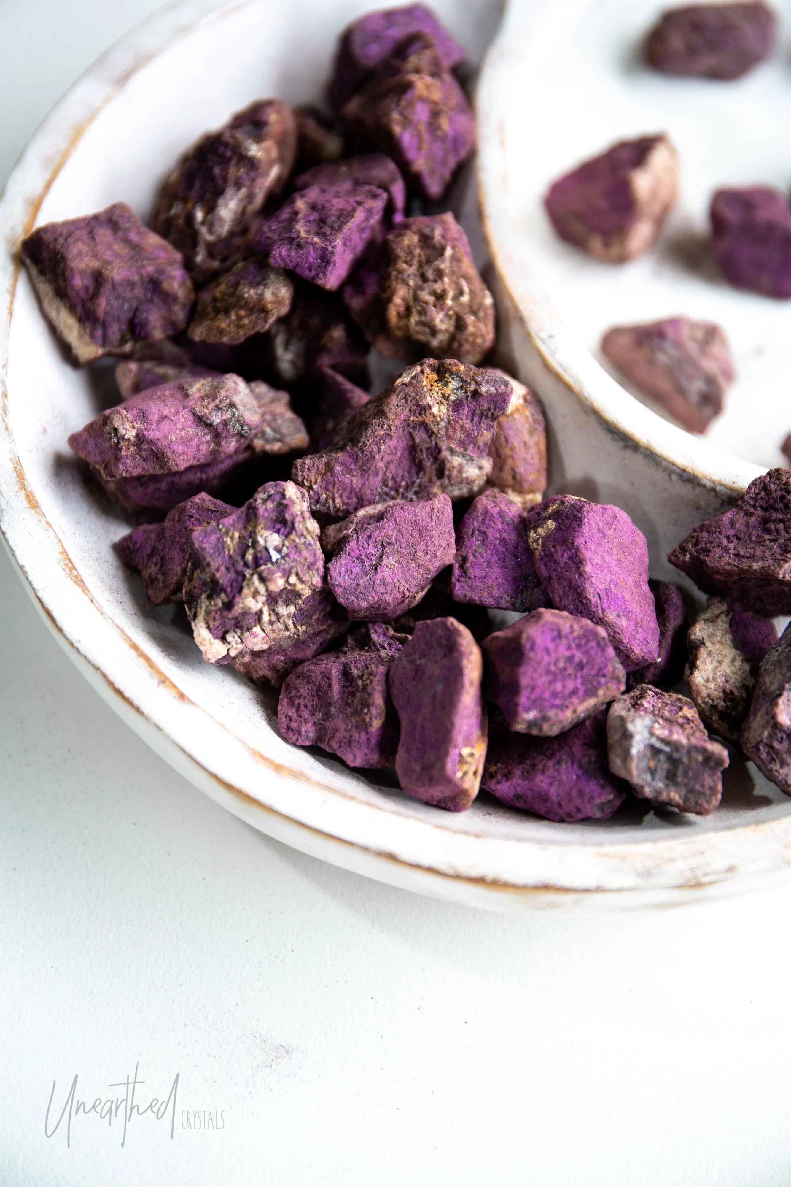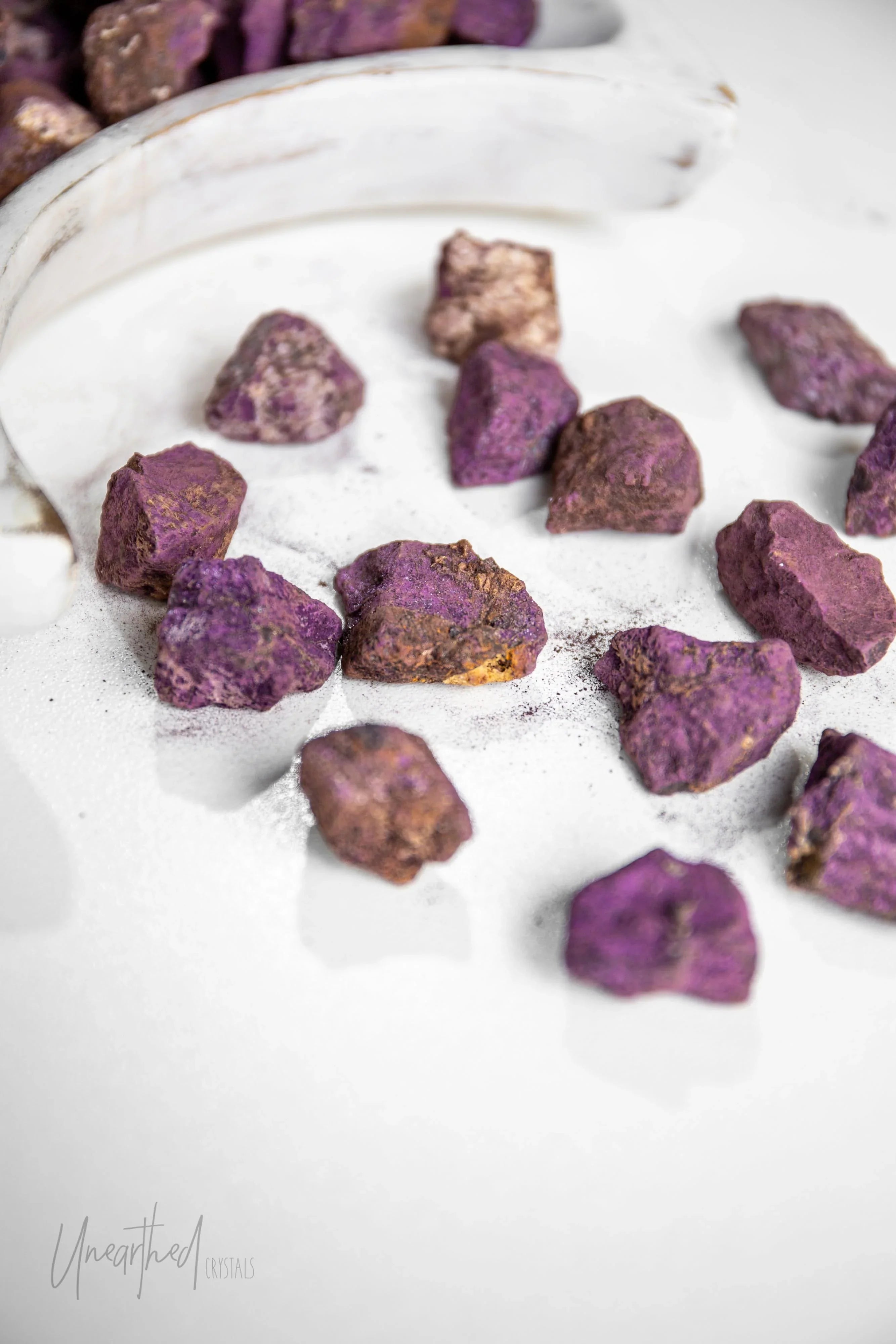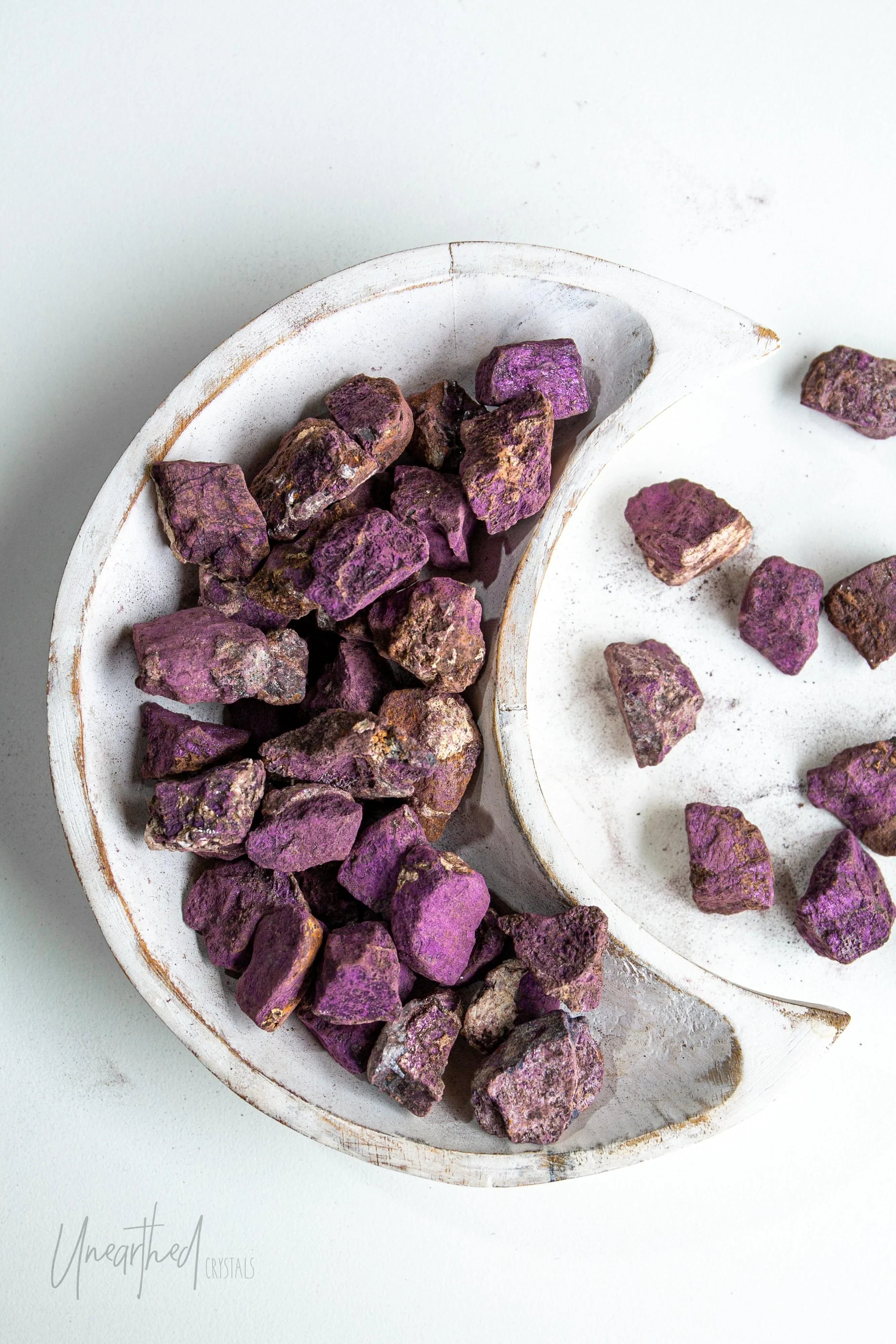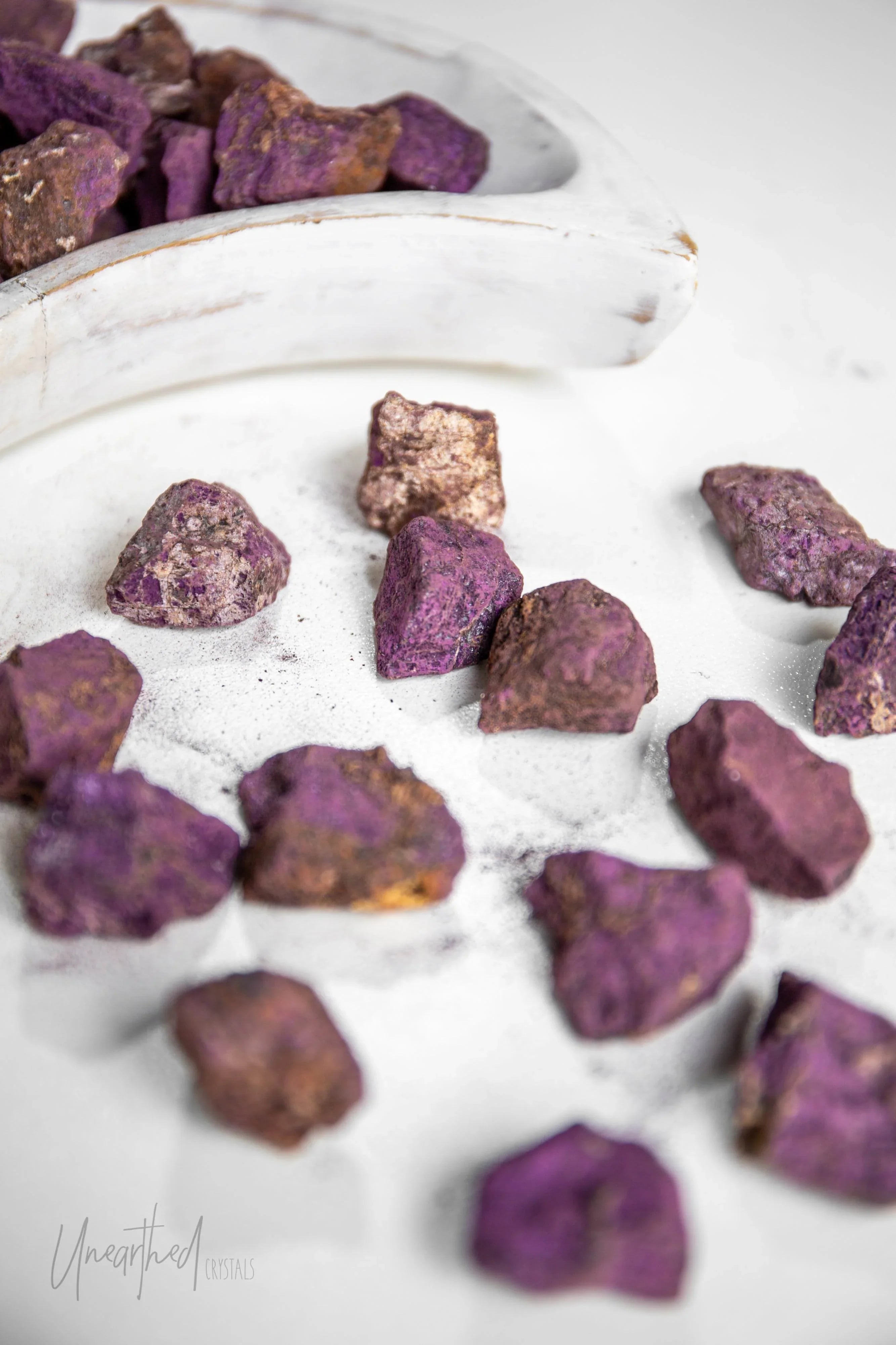 Purpurite stimulates the Crown Chakra and connects you to a higher consciousness. It makes you more aware of your own mind and the energy of the universe, allowing you to open yourself to truth in all ways. Purpurite helps you to access and trust your insight.