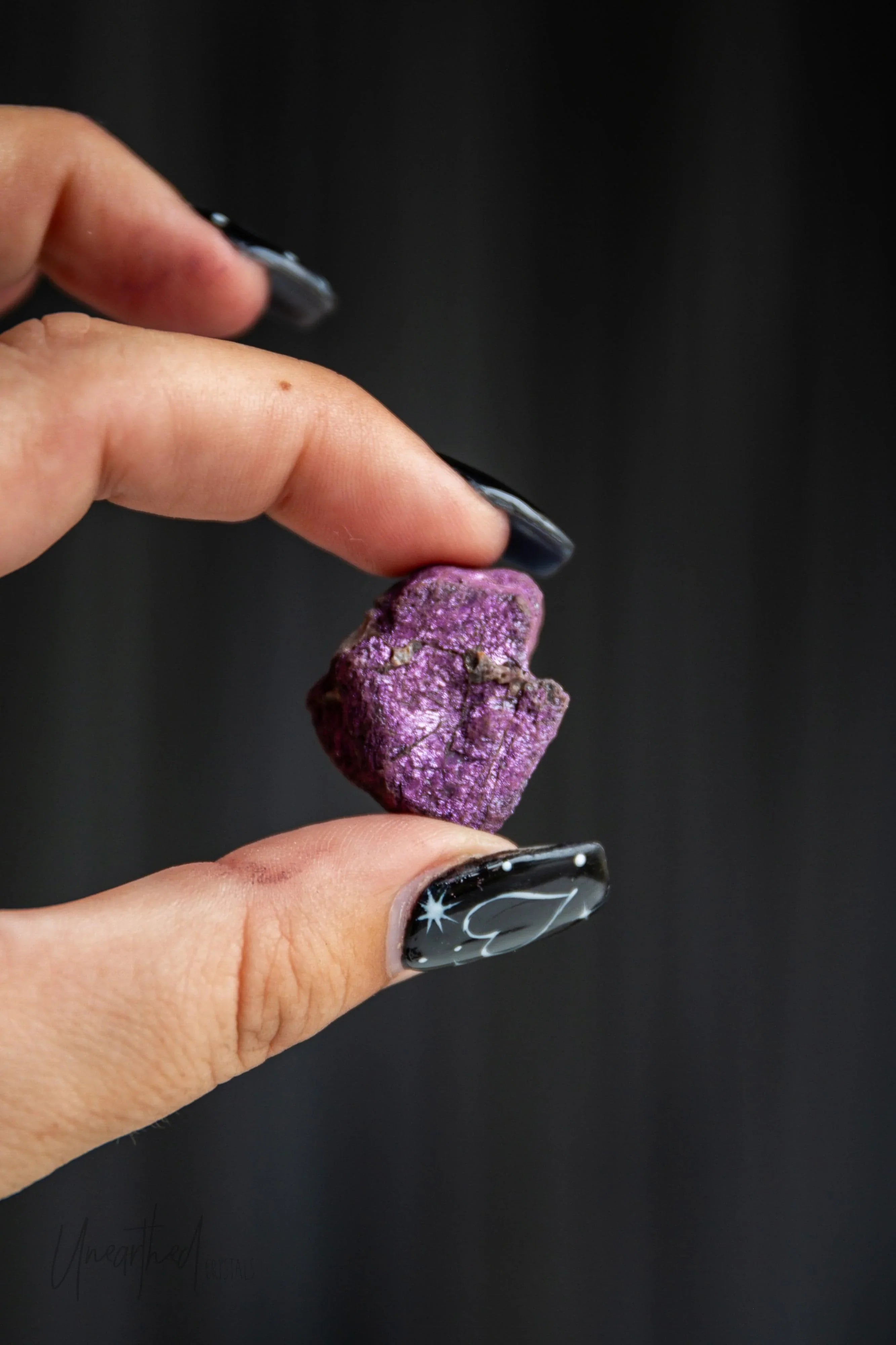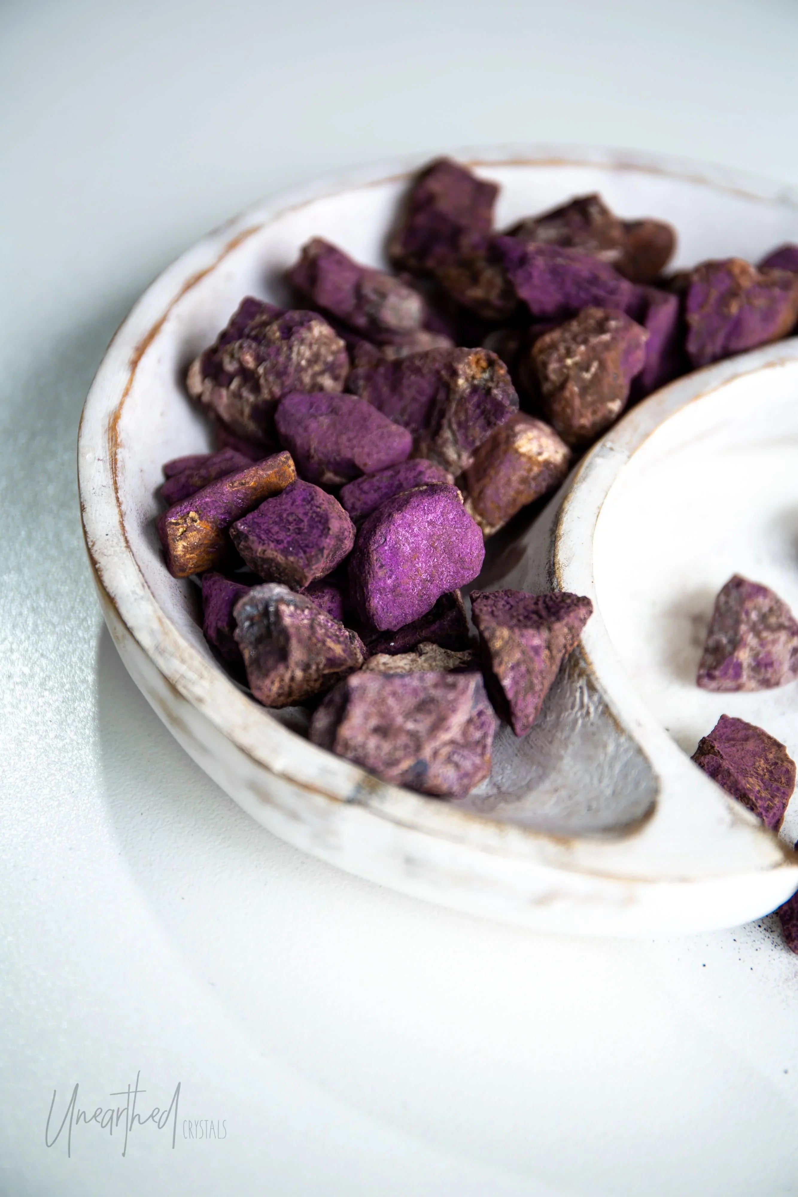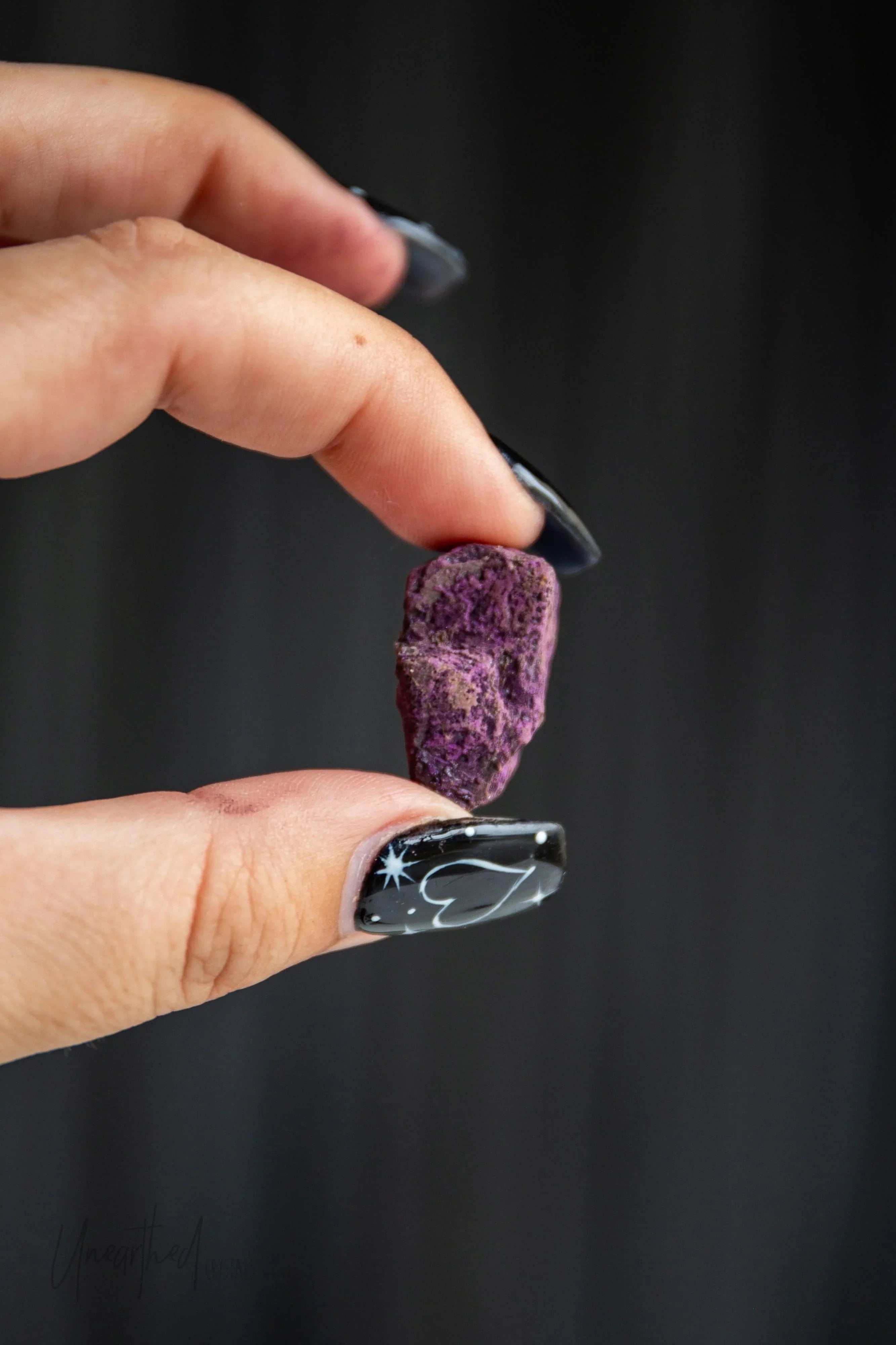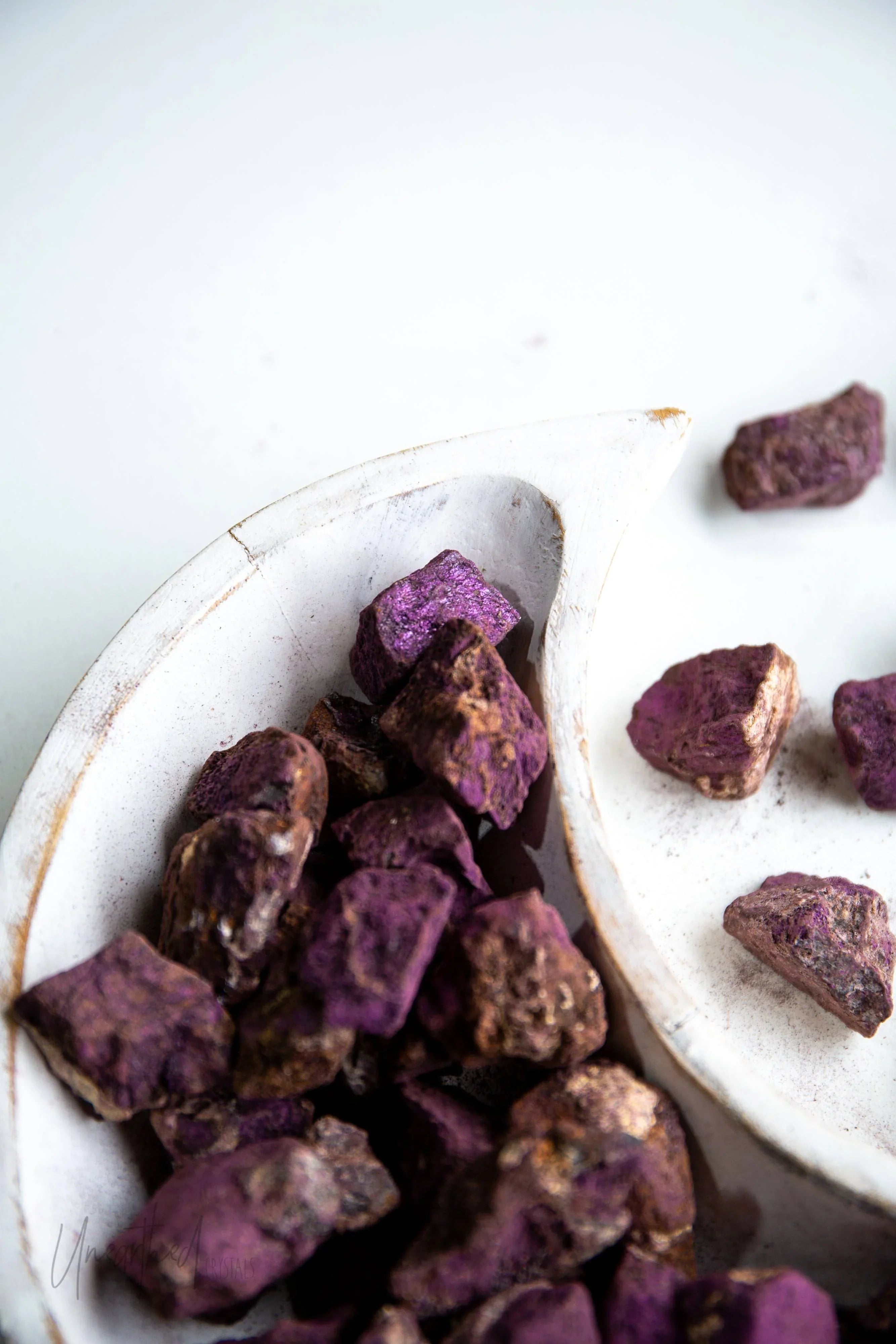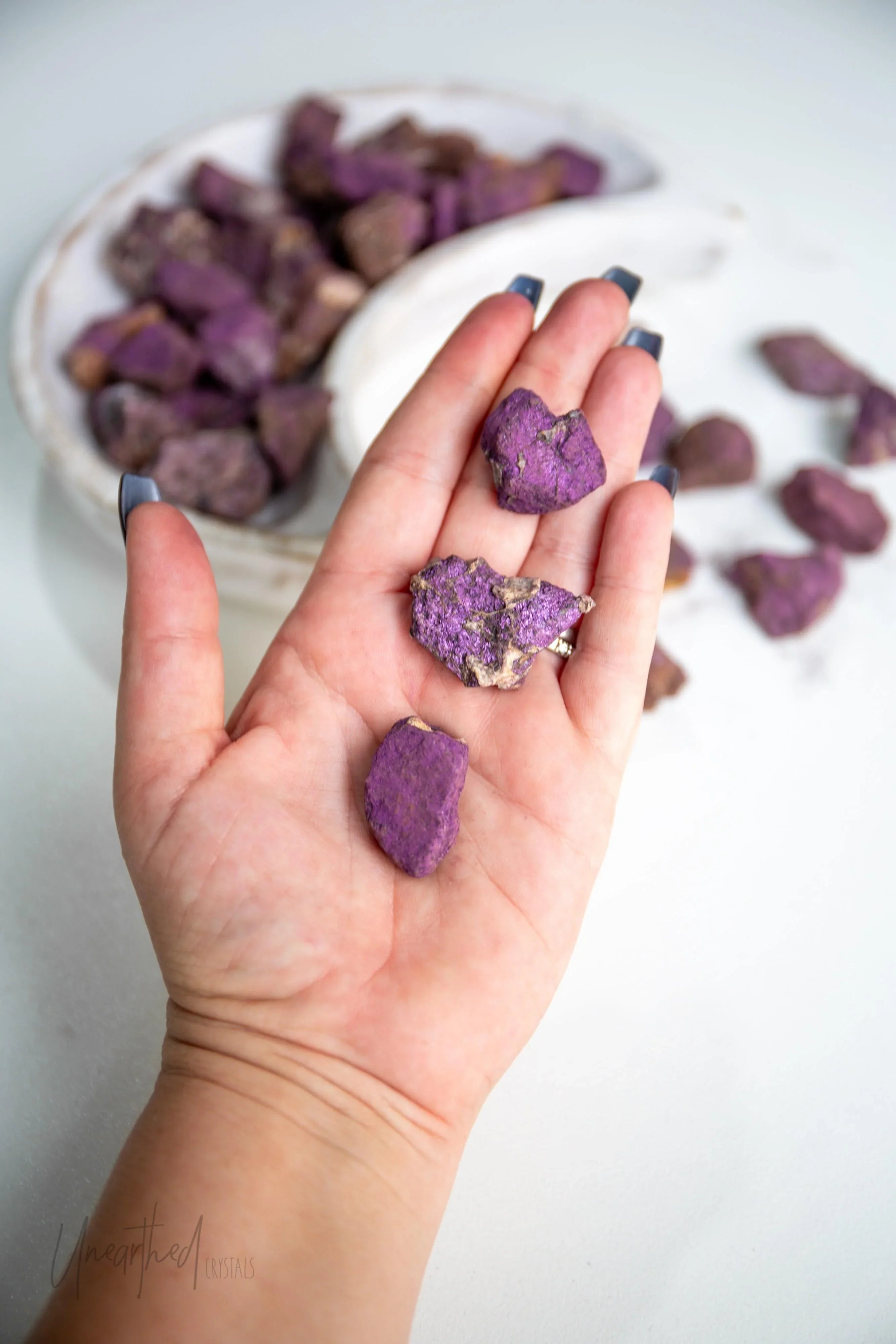 Purpurite stimulates the Crown Chakra and connects you to a higher consciousness. It makes you more aware of your own mind and the energy of the universe, allowing you to open yourself to truth in all ways. Purpurite helps you to access and trust your insight.