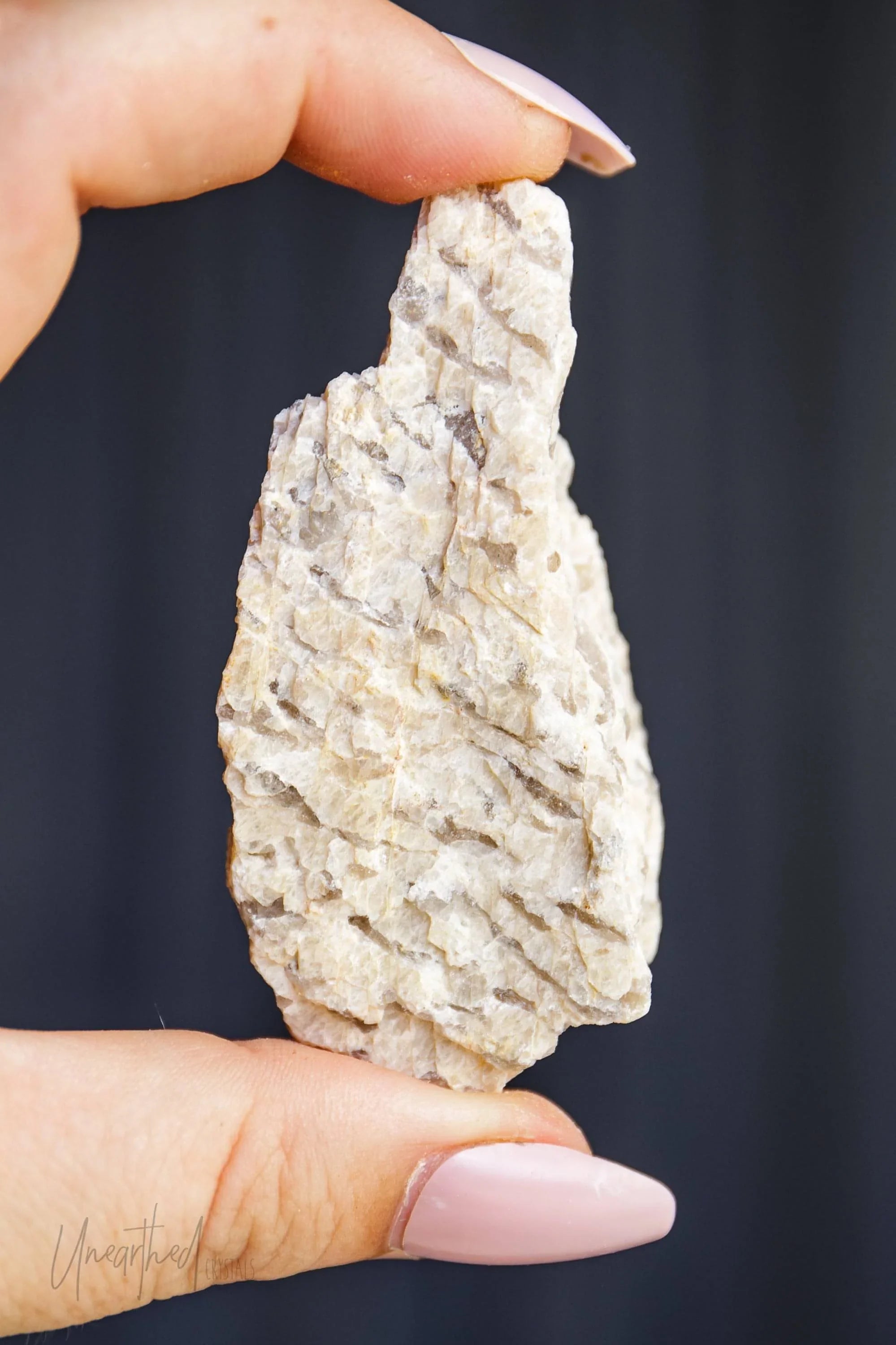 Graphic Moonstone is like the grounding big sibling of traditional moonstoneâstill dreamy and intuitive but with a stabilising twist. This unique crystal is a natural fusion of smokey quartz embedded within feldspar, creating a striking appearance that symbolises its duality: balancing the ethereal and the earthly.