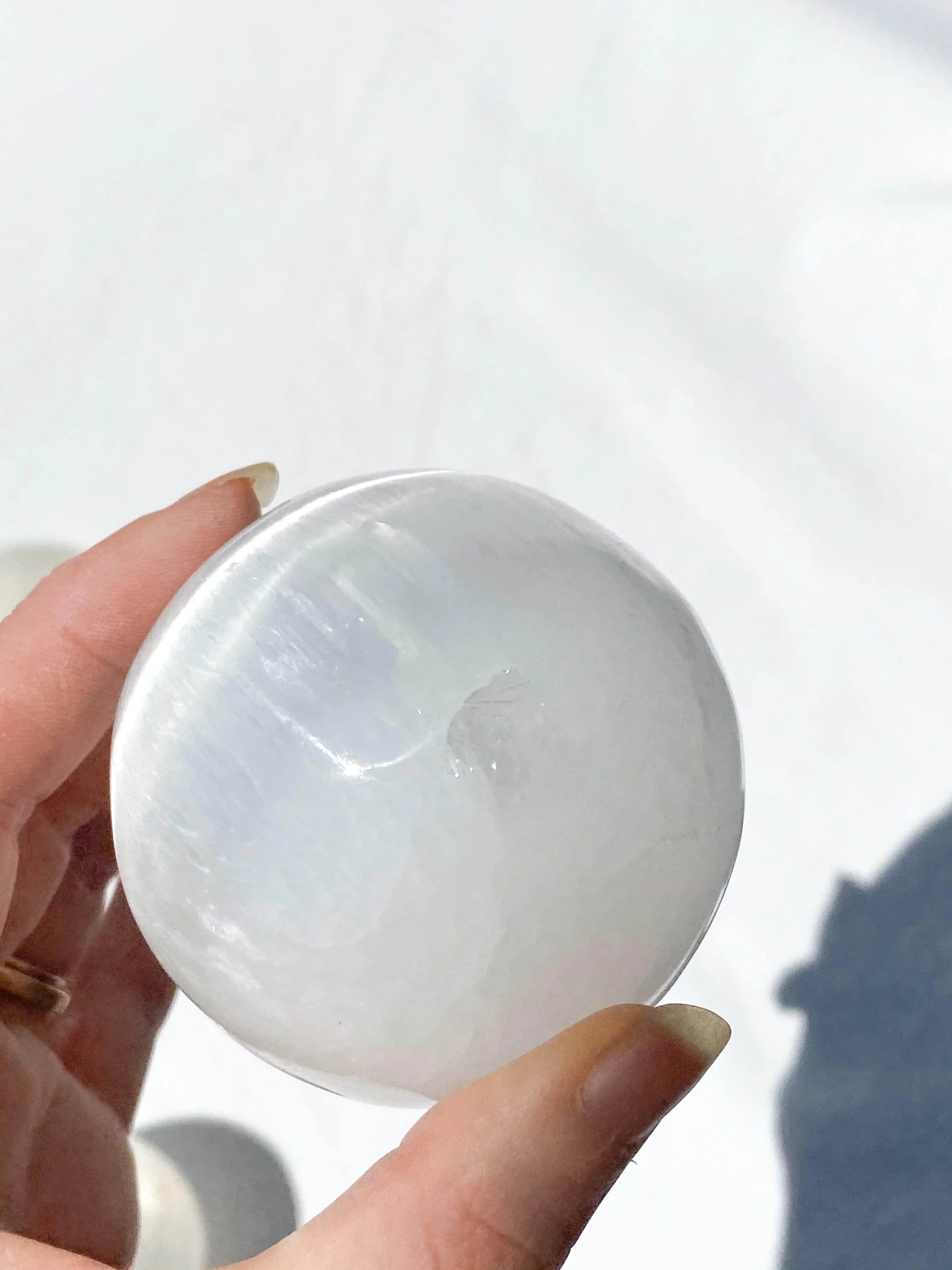 đ Please note: these are hand carved and may have slight imperfections. Selenite is a very soft material and there may be slight inconsistencies.  There may also be a slight yellow tinge when light shines through certain angles of the sphere. Â