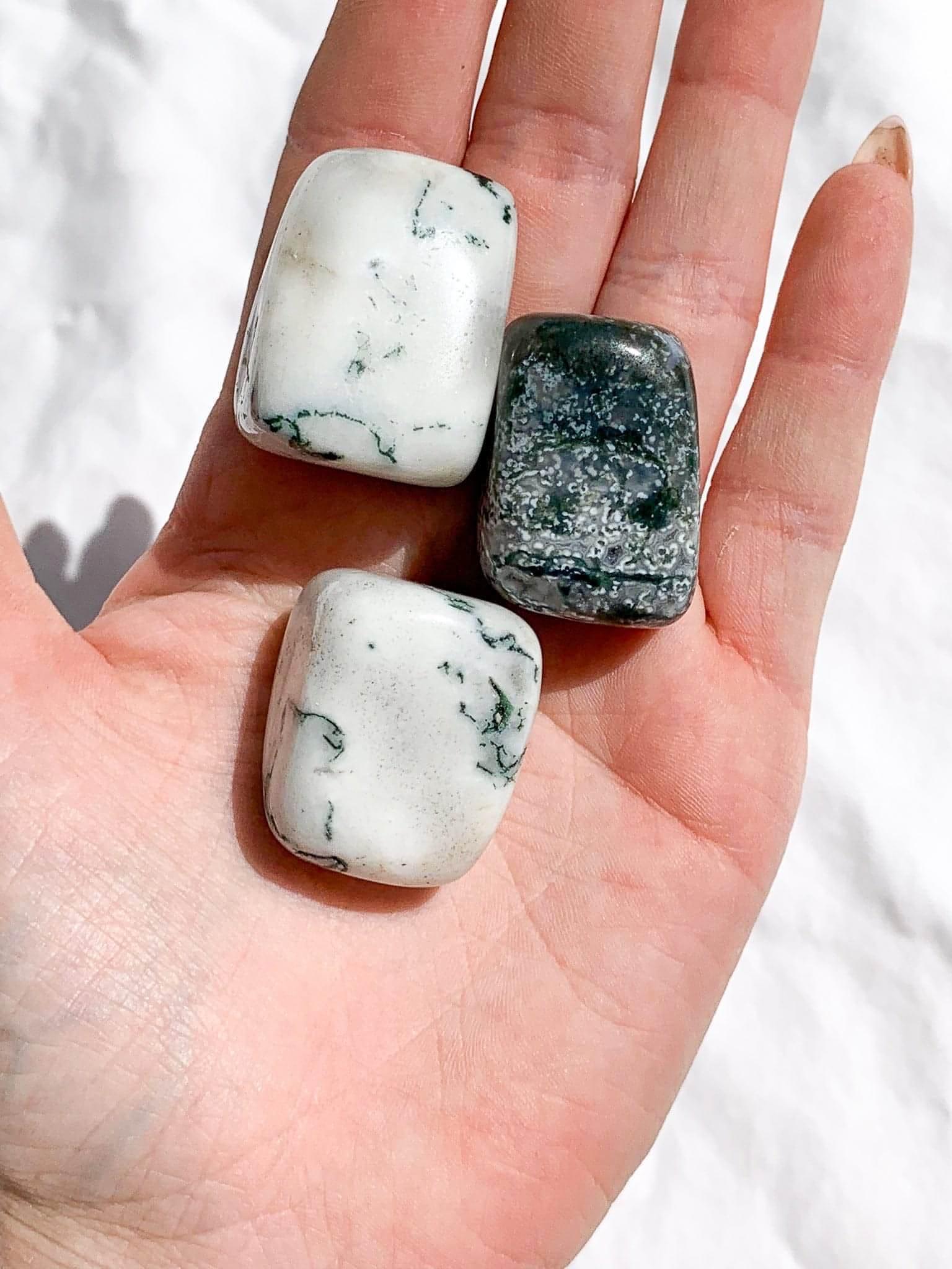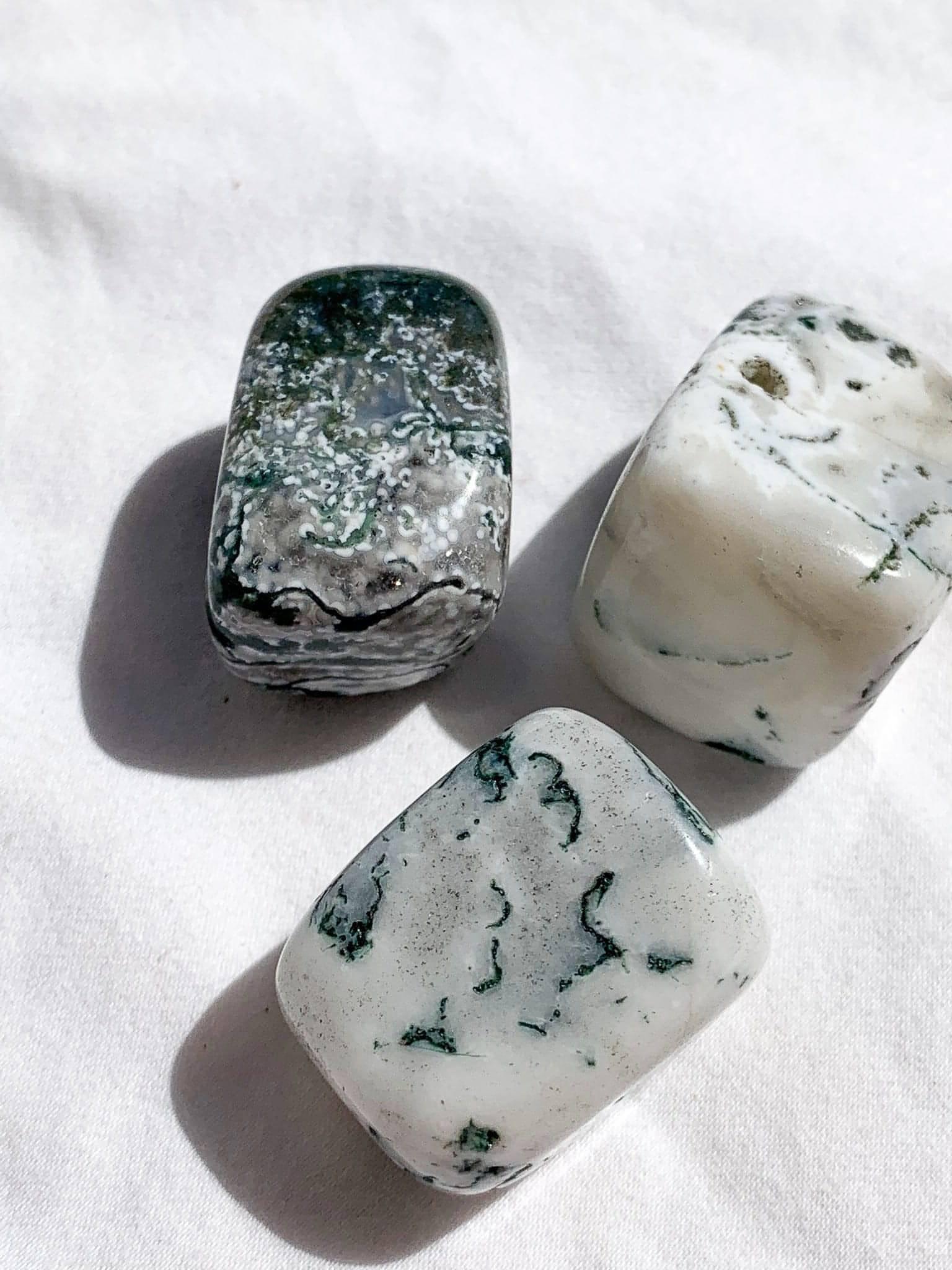 Tree Agate is a highly supportive stone that boosts the immune system and regulates the balance of water in the body. Tree Agate helps to clear energy blockages in the Nadis (energy channels) to allow for a greater flow of this energy throughout the body. By opening up these pathways, Tree Agate can help connect to the natural cycles in life, thereby opening one up to a flow of abundance and prosperity.