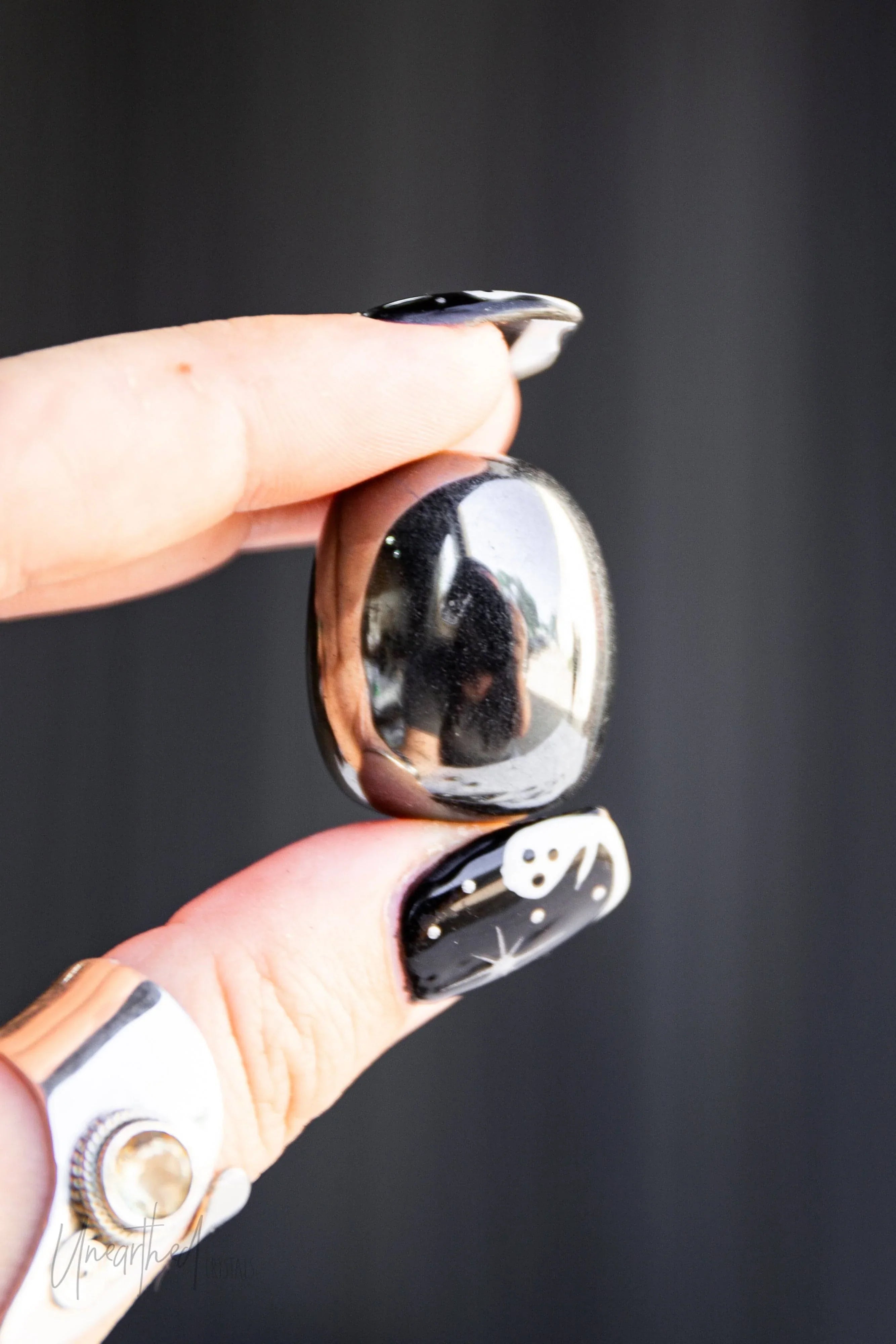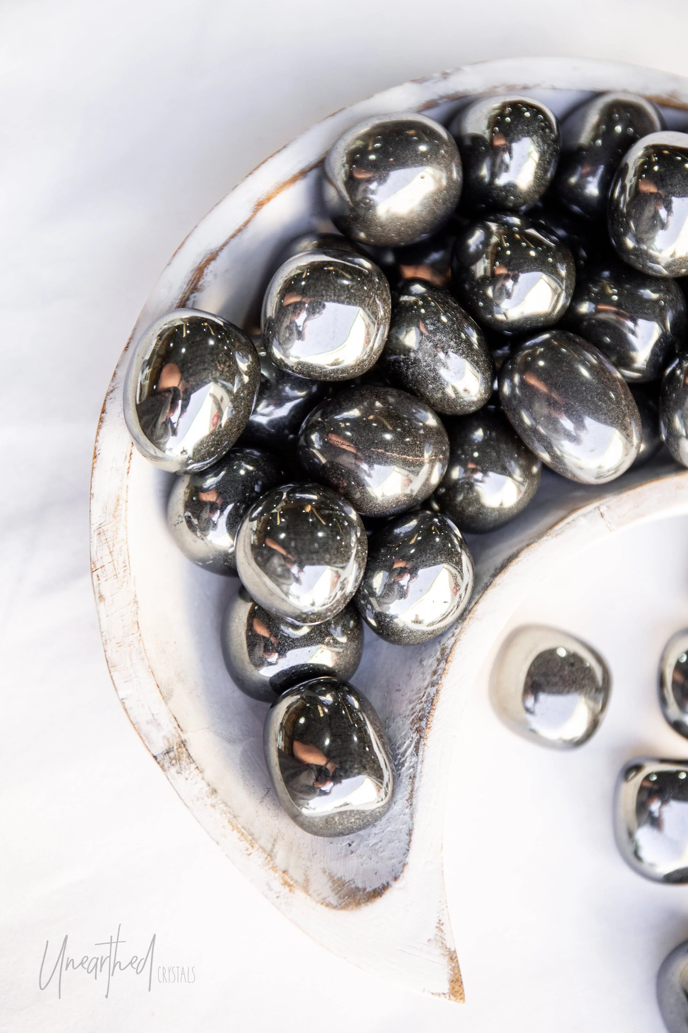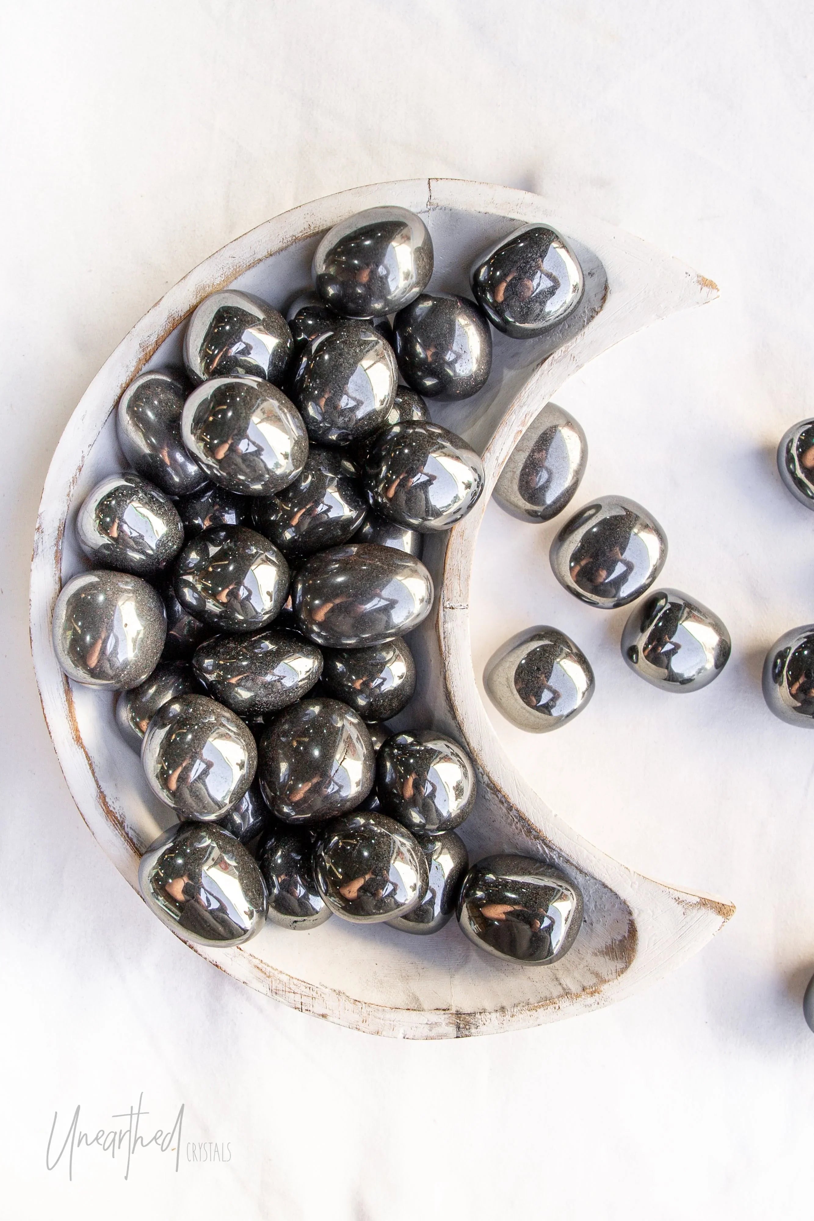 Hematite is the ultimate “get back in your body” stone; glossy gunmetal with a serious don’t-mess-with-me vibe. It pulls scattered energy down into the Root, steadies your breathing, and helps your brain stop doing Olympic-level spirals. If you’re feeling floaty, frazzled or overstimulated, Hematite brings you back to centre like a firm hand on the shoulder.