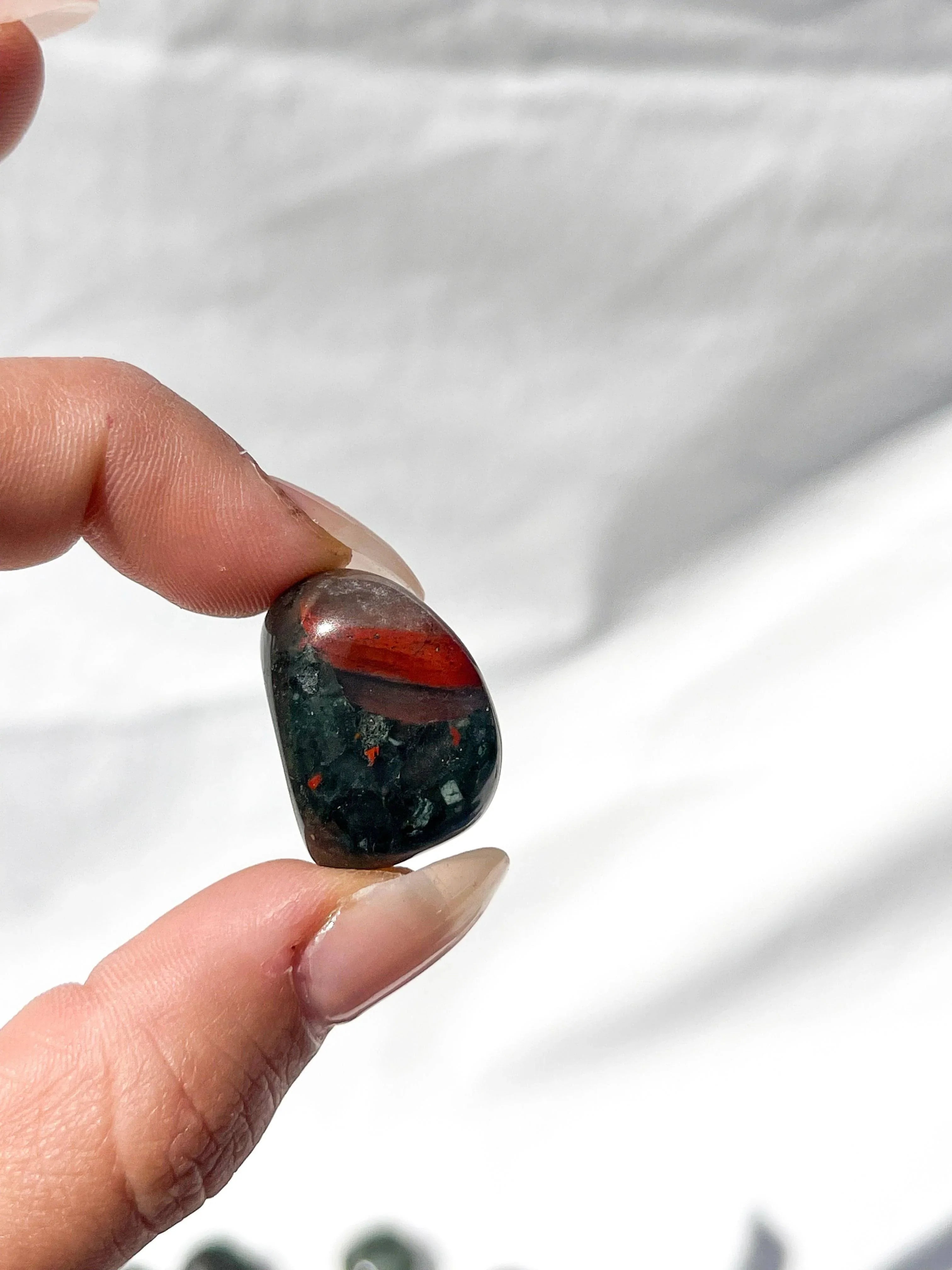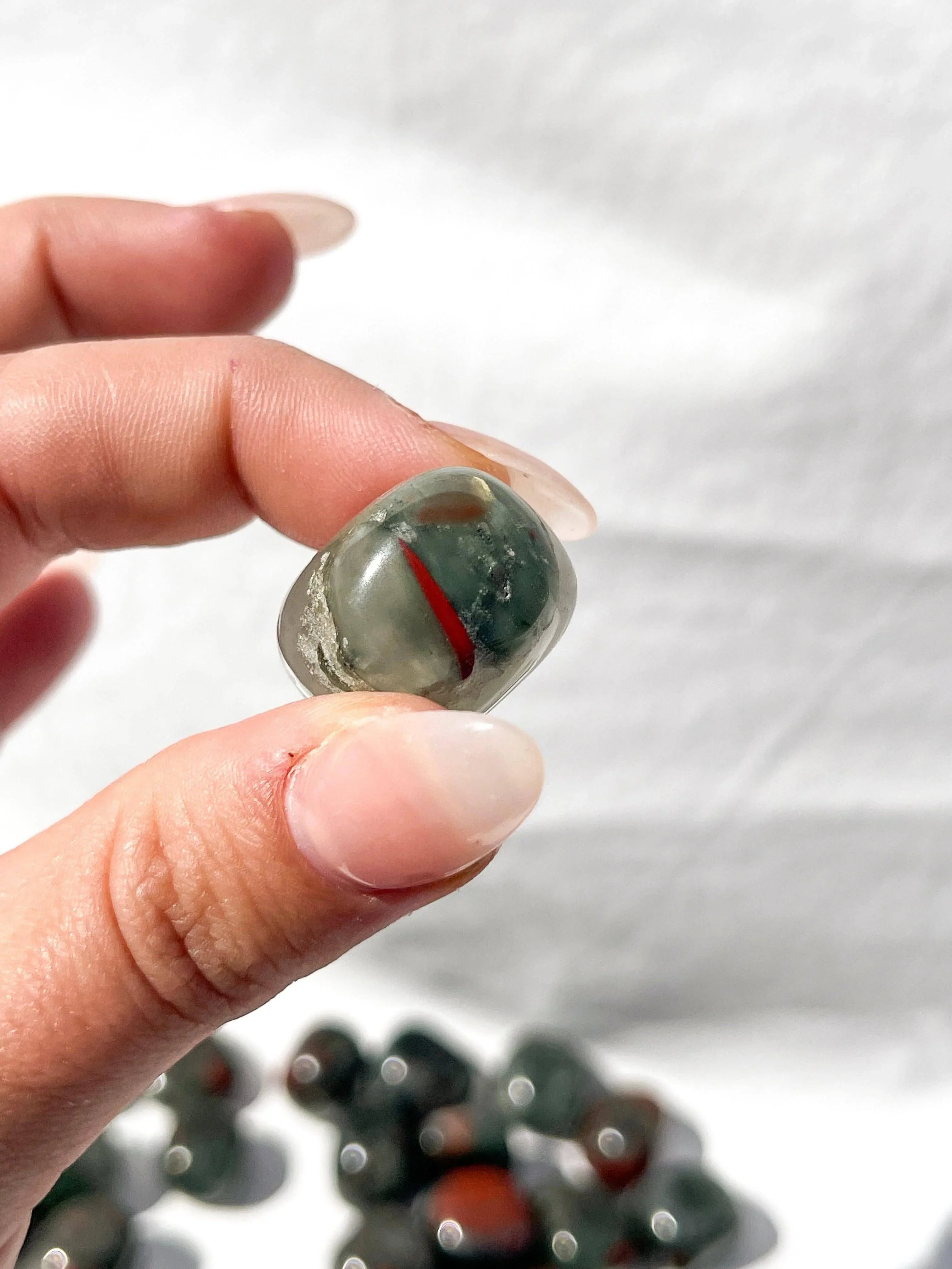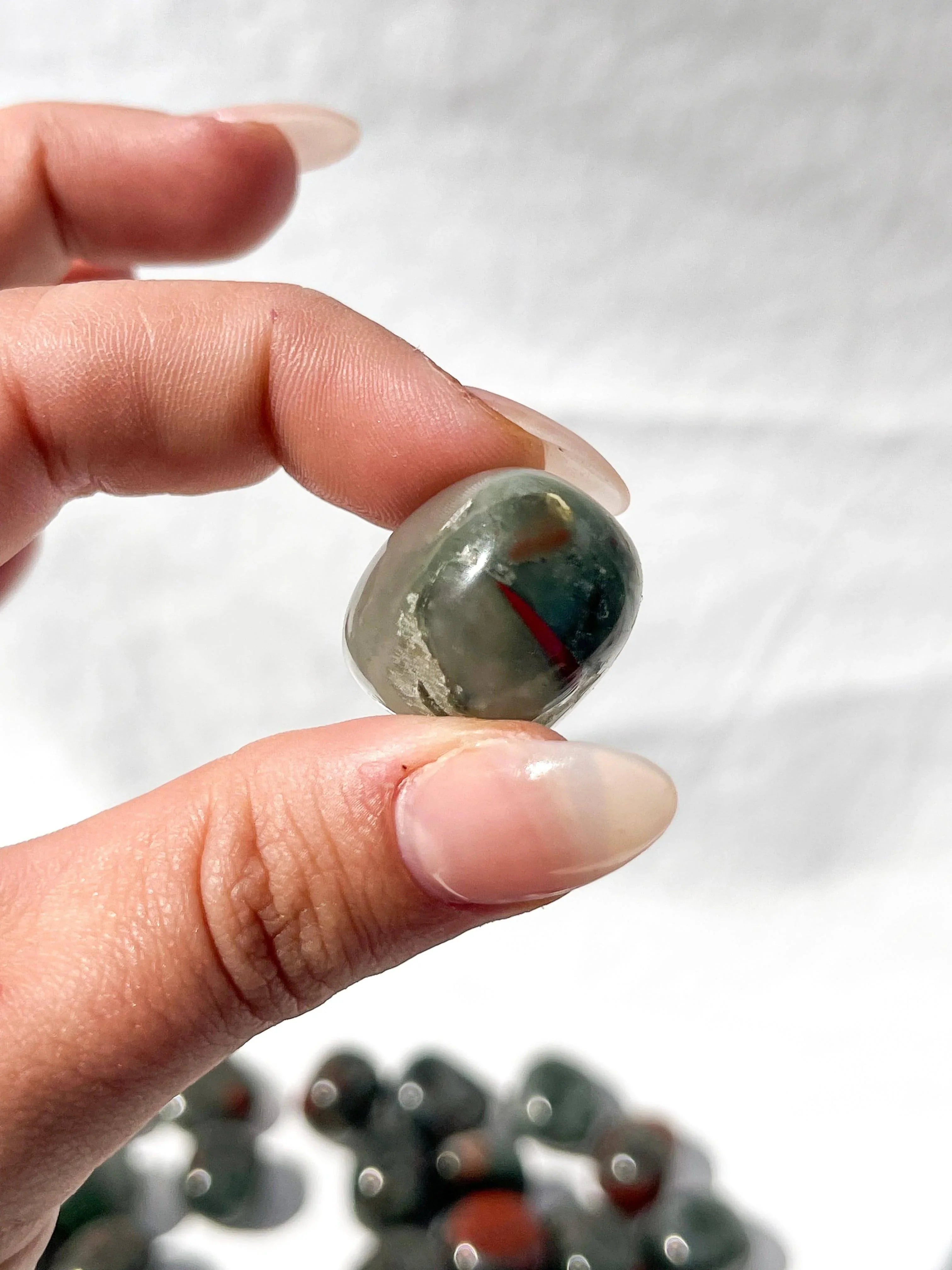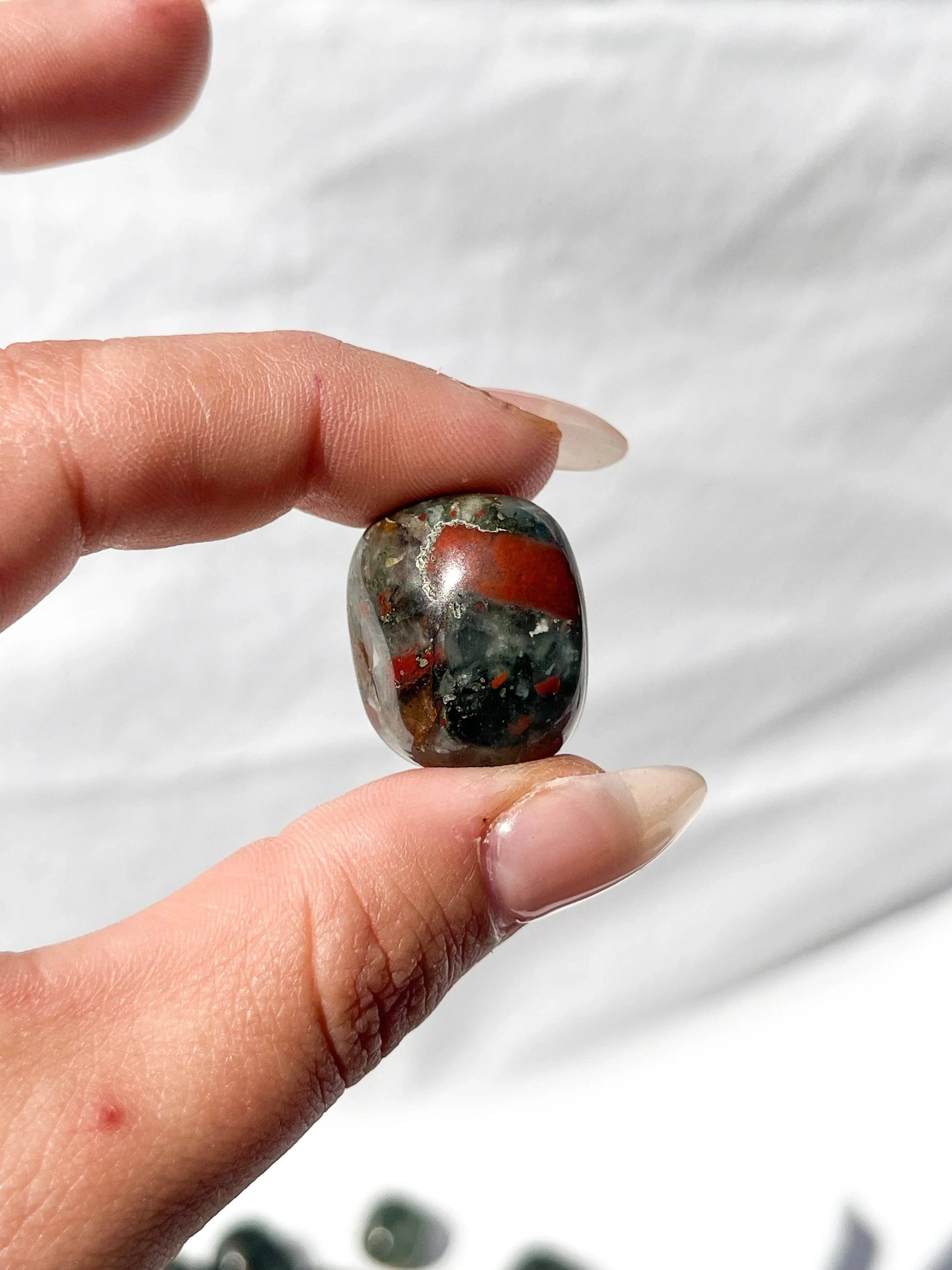 Spiritually, Bloodstone has a strong connection to vitality and strength. Its energy can revitalise your aura, help you align with your higher purpose, and empower you to break through personal barriers. It also helps ground and protect you, making it great for spiritual practices like meditation or energy work.