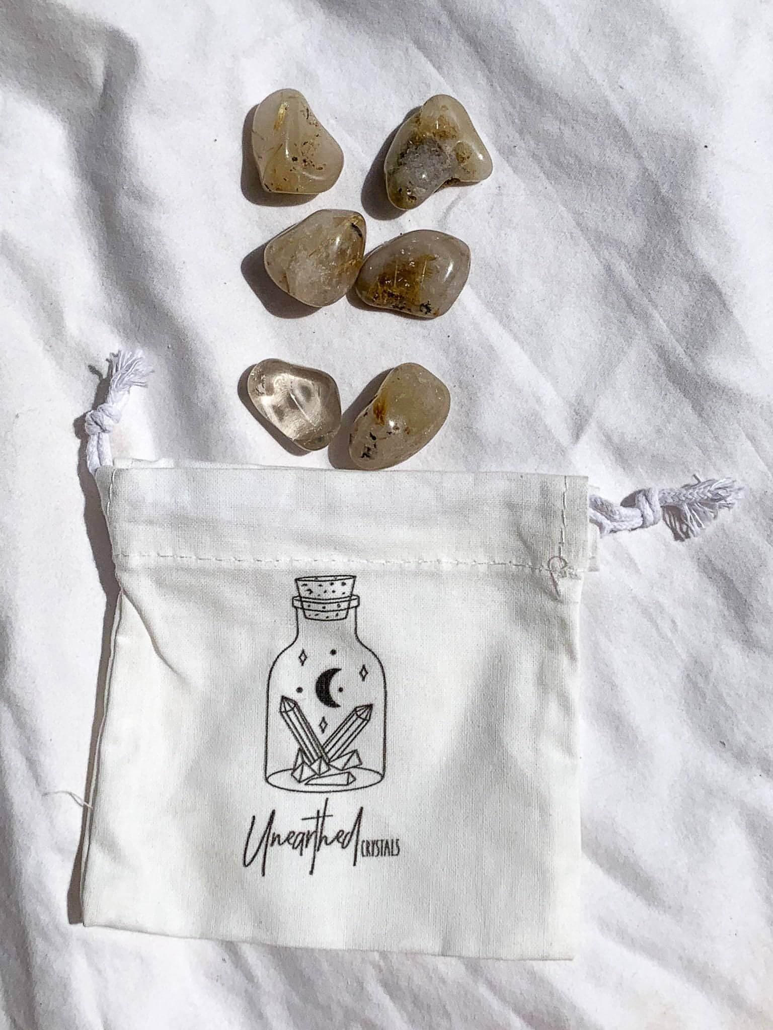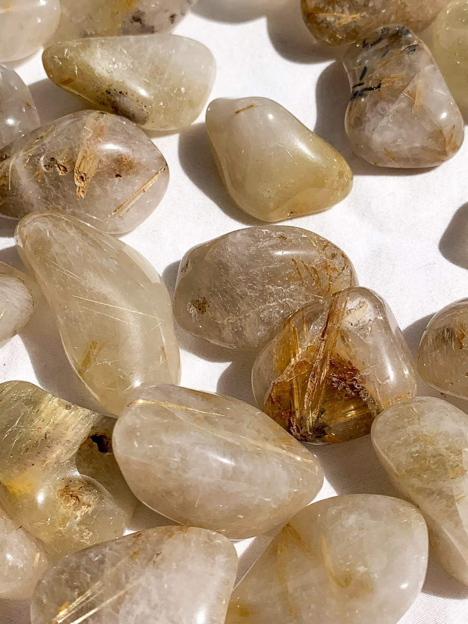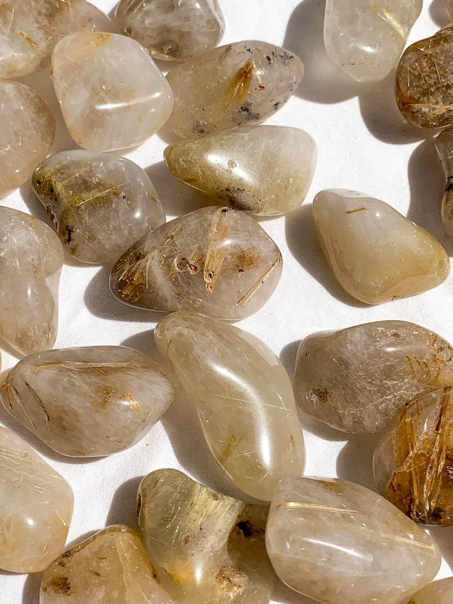 Golden Rutile in Quartz Tumbles | Small