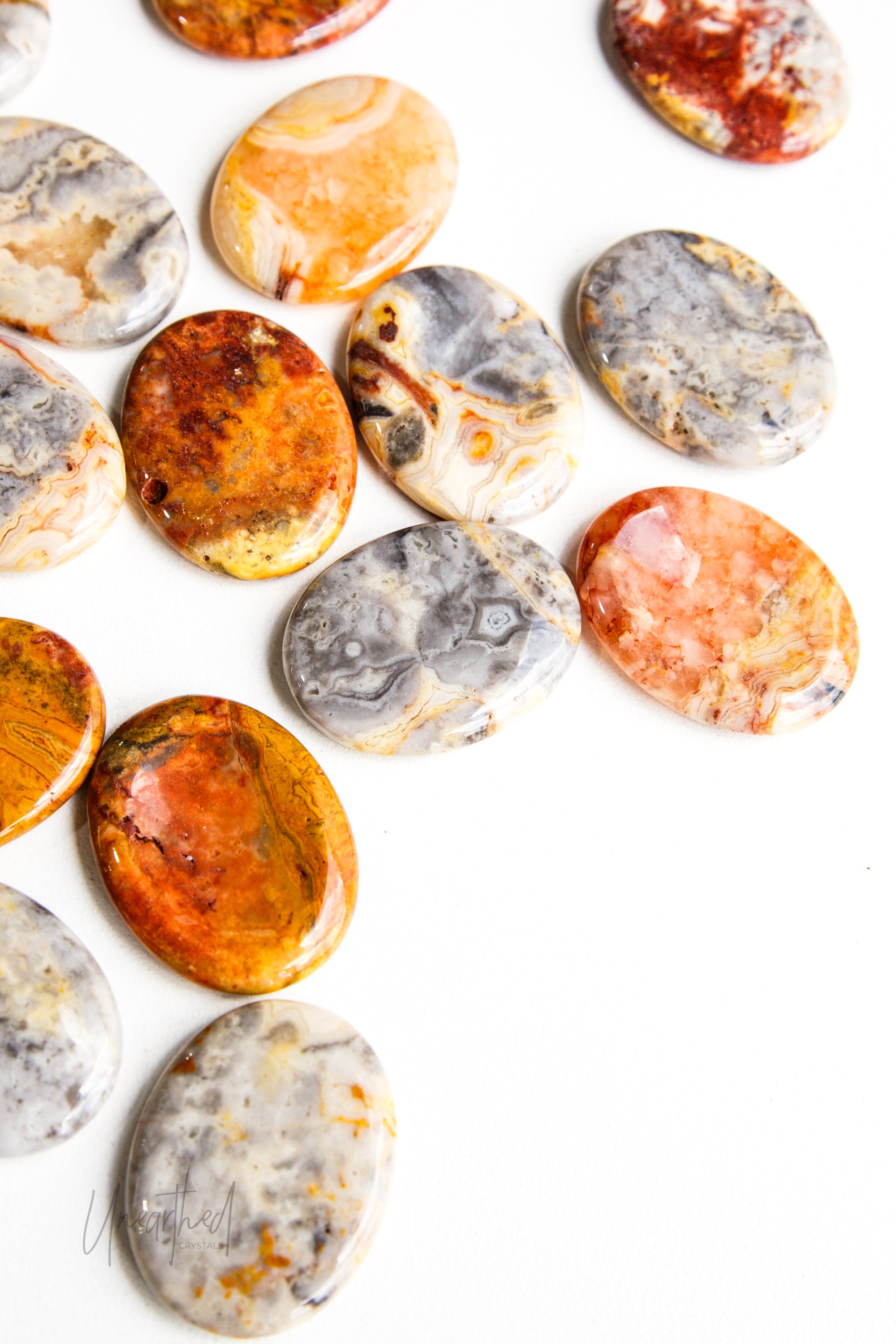 ALTERNATIVE NAMES: None; colour-based varieties include Blue Lace Agate, Fire Agate, and Moss Agate