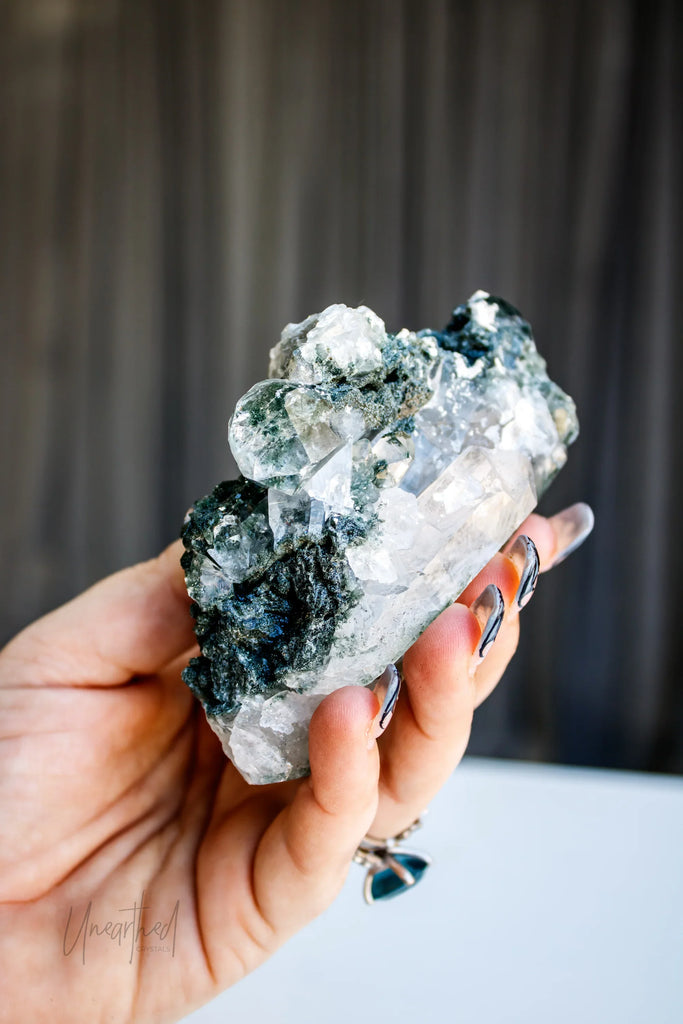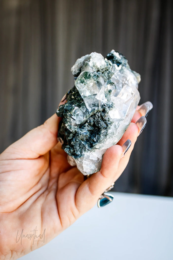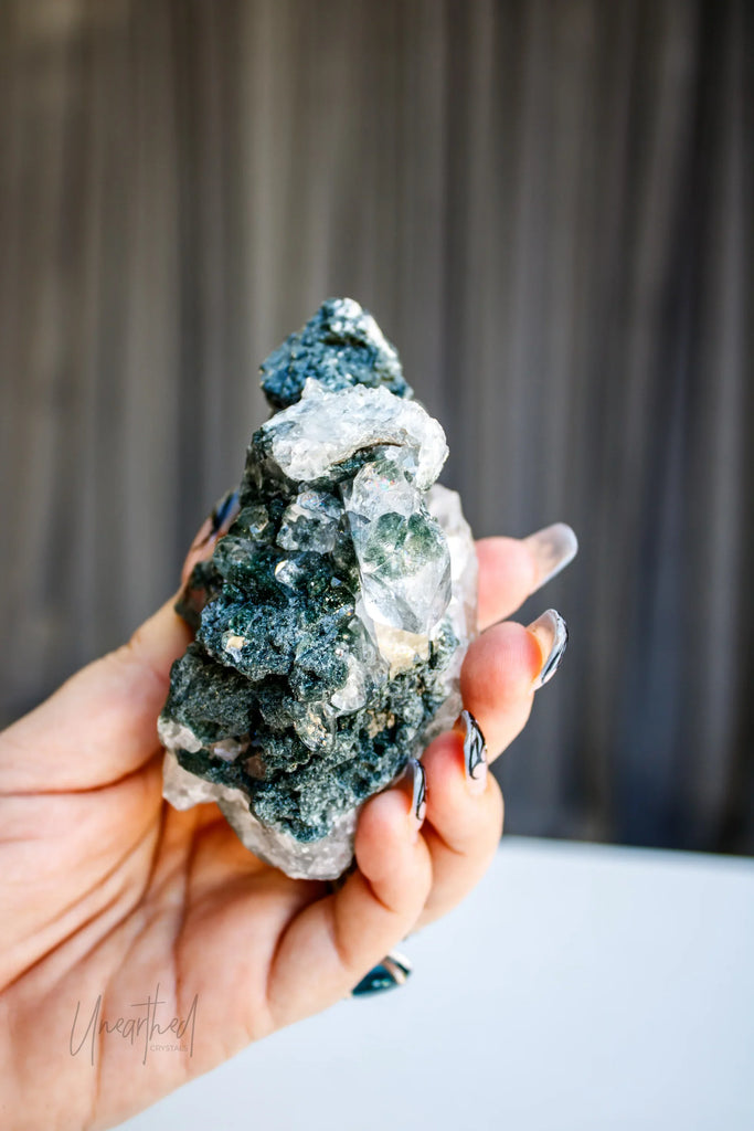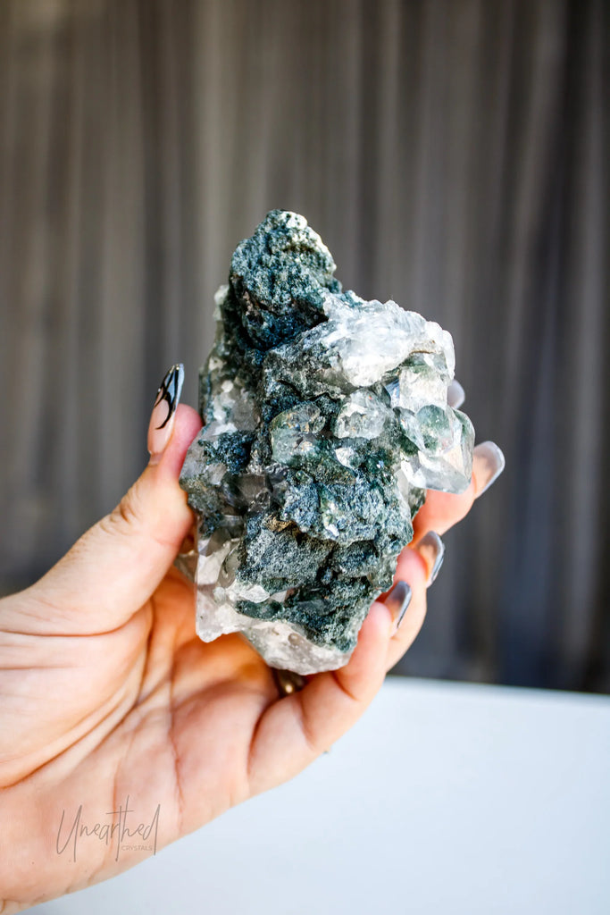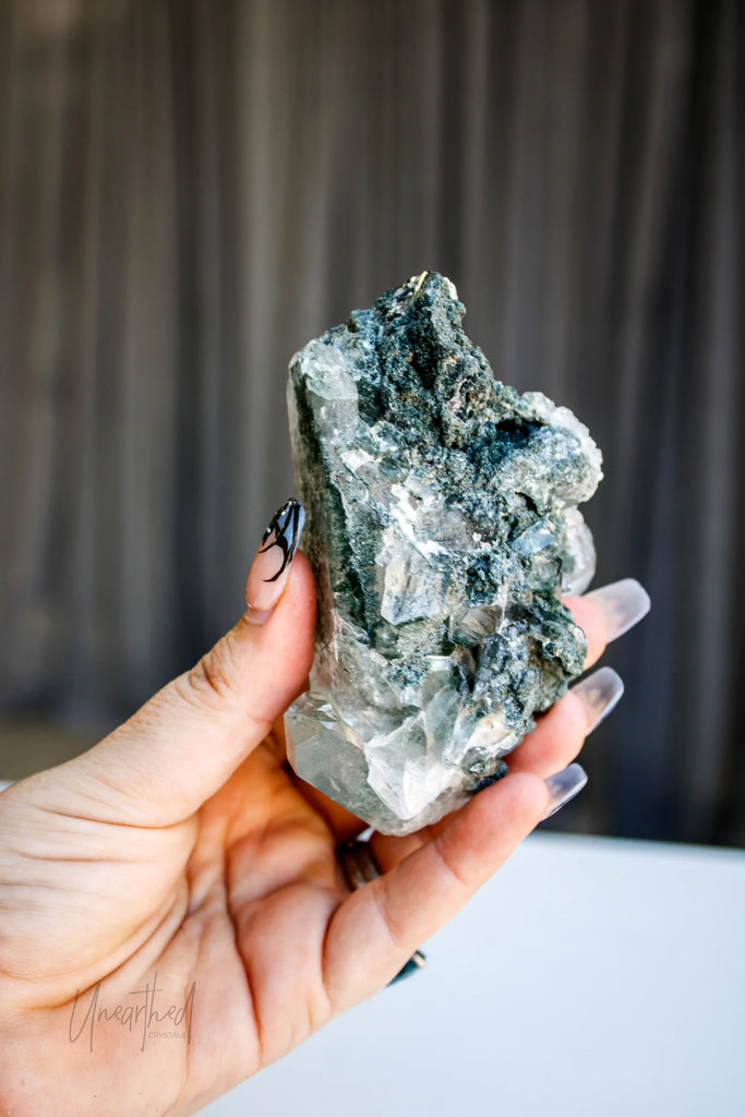 Lodolite links Crown and Third Eye to the Root, so guidance becomes action rather than theory. The quartz matrix amplifies whatever you’re working with; the mineral inclusions add grounded nuance (chlorite for healing; hematite for courage; kaolinite or feldspar for gentle clarity). It’s brilliant for journey work, past-life or inner-child exploration, and manifestation that honours your real-world timelines.
