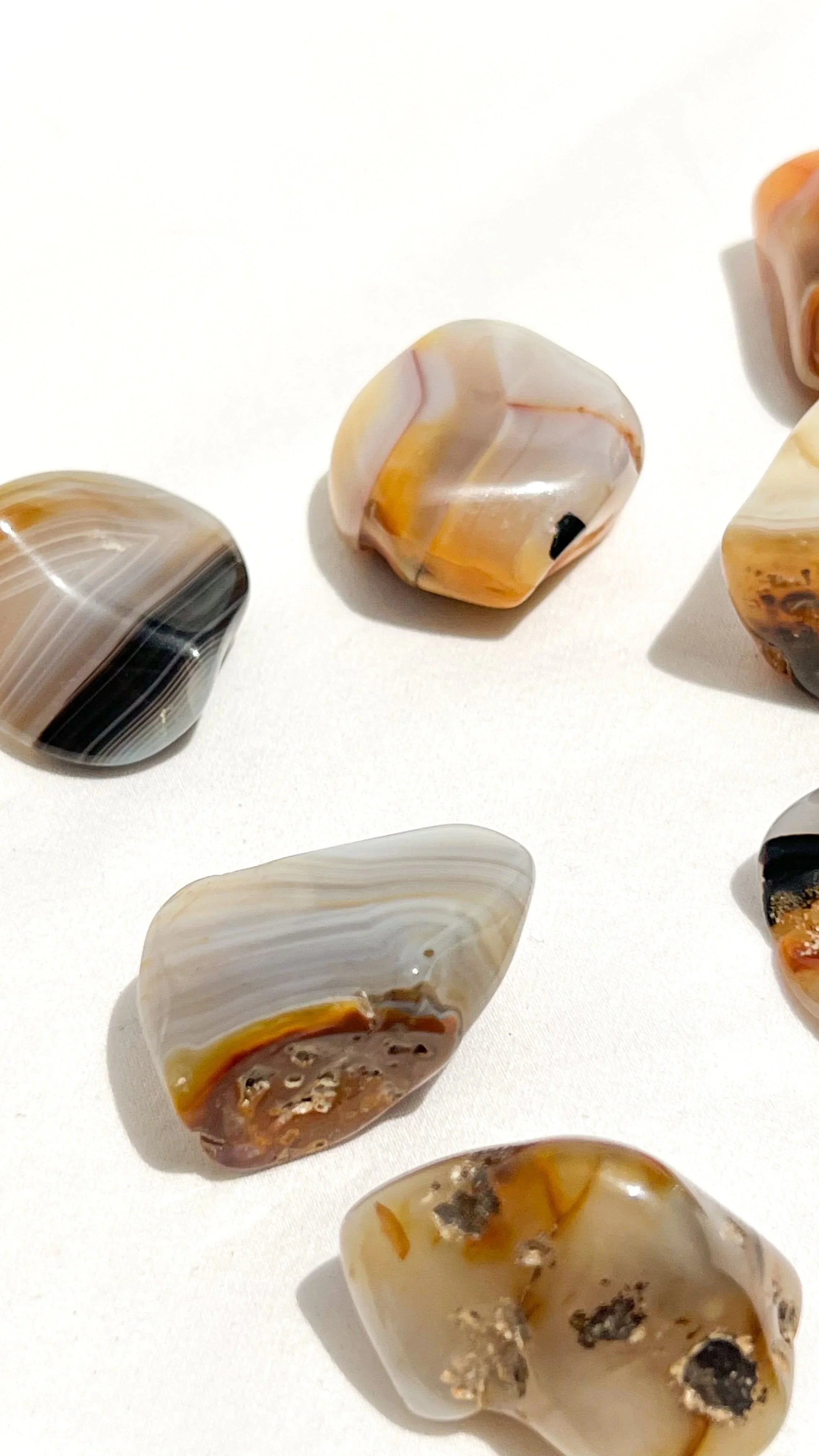 Agate is the ultimate âjack-of-all-tradesâ stone, offering grounding energy and a gentle, balancing touch for every part of your life. With its endless variety of colours and banded patterns, thereâs an Agate for practically every vibe, intention, and aesthetic.