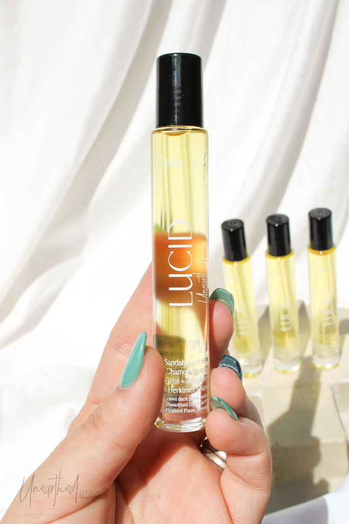 Ingredients: Grapeseed oil, Rose absolute essential oil, Jasmine absolute essential oil, Sandalwood essential oil, Chamomile essential oil, Aniseed essential oil, Herkimer Diamond