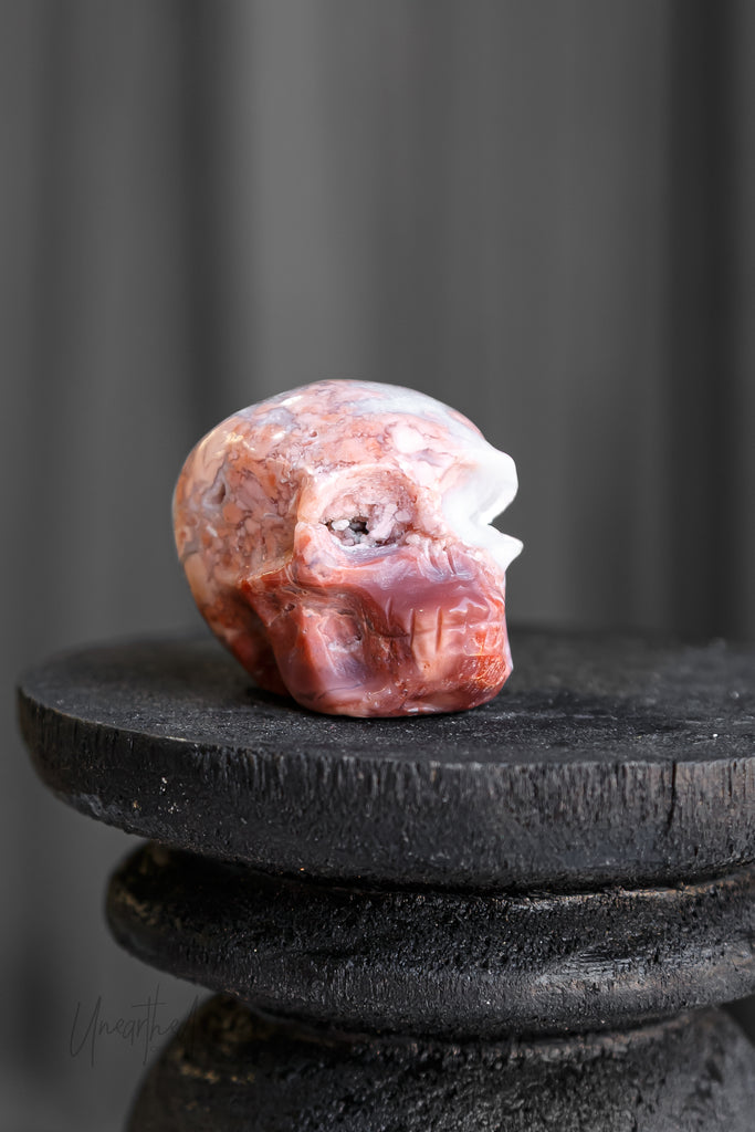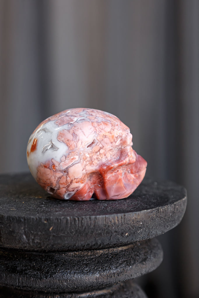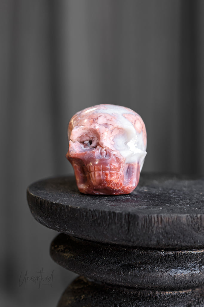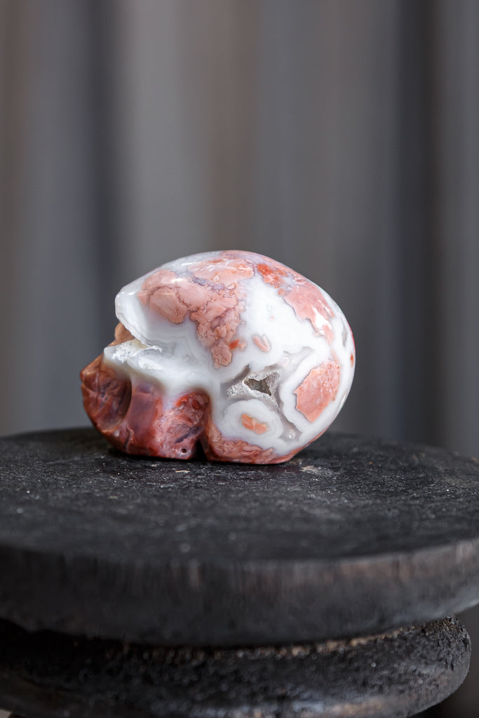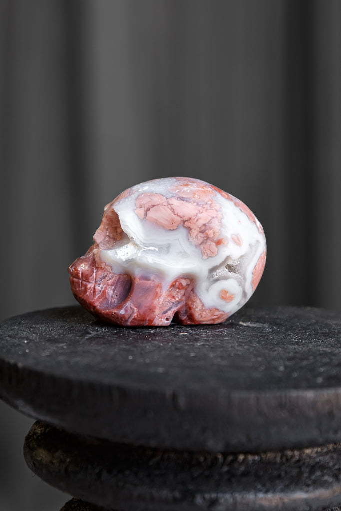 "Pink Petal" Agate Skull Carving