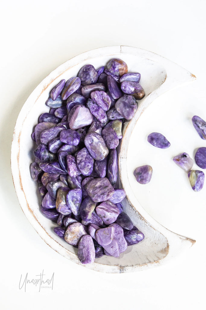 Charoite is the ultimate cosmic chrysalis crystal—here to support you through transformation, spiritual upgrades, and soul-level alignment. With swirling purples, dreamy lavenders, and black inclusions that look like interdimensional portals, Charoite is that one friend who holds your hand through the messy parts of growth and whispers, “You were never meant to stay small.”