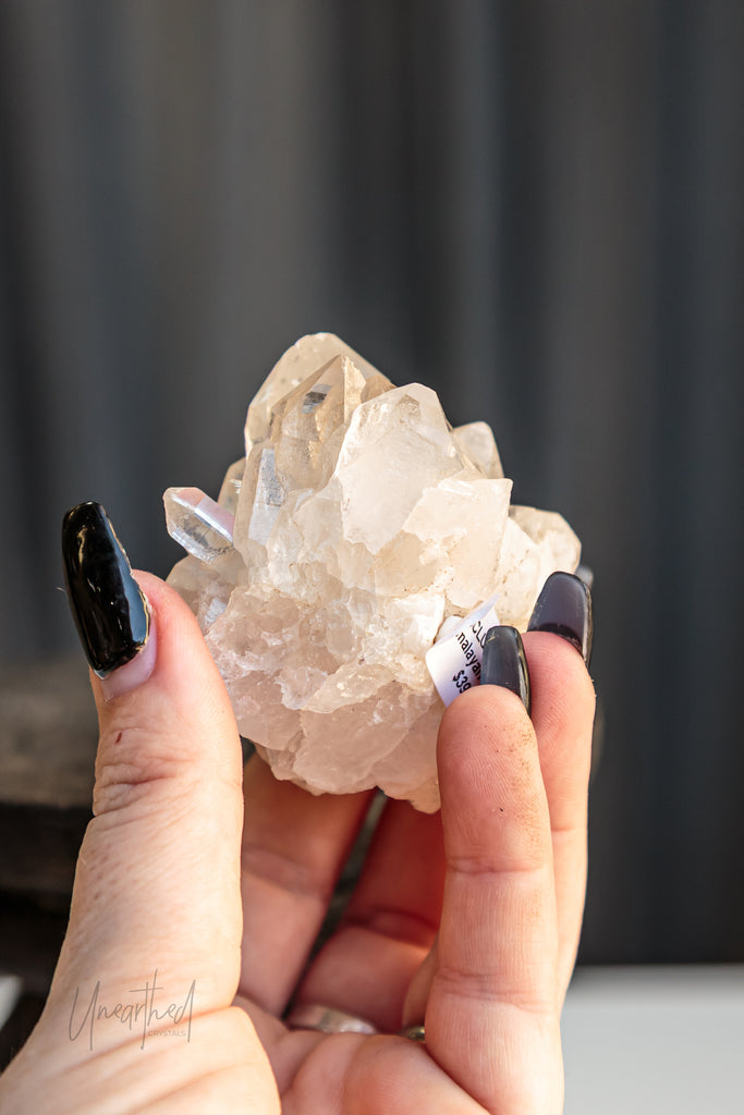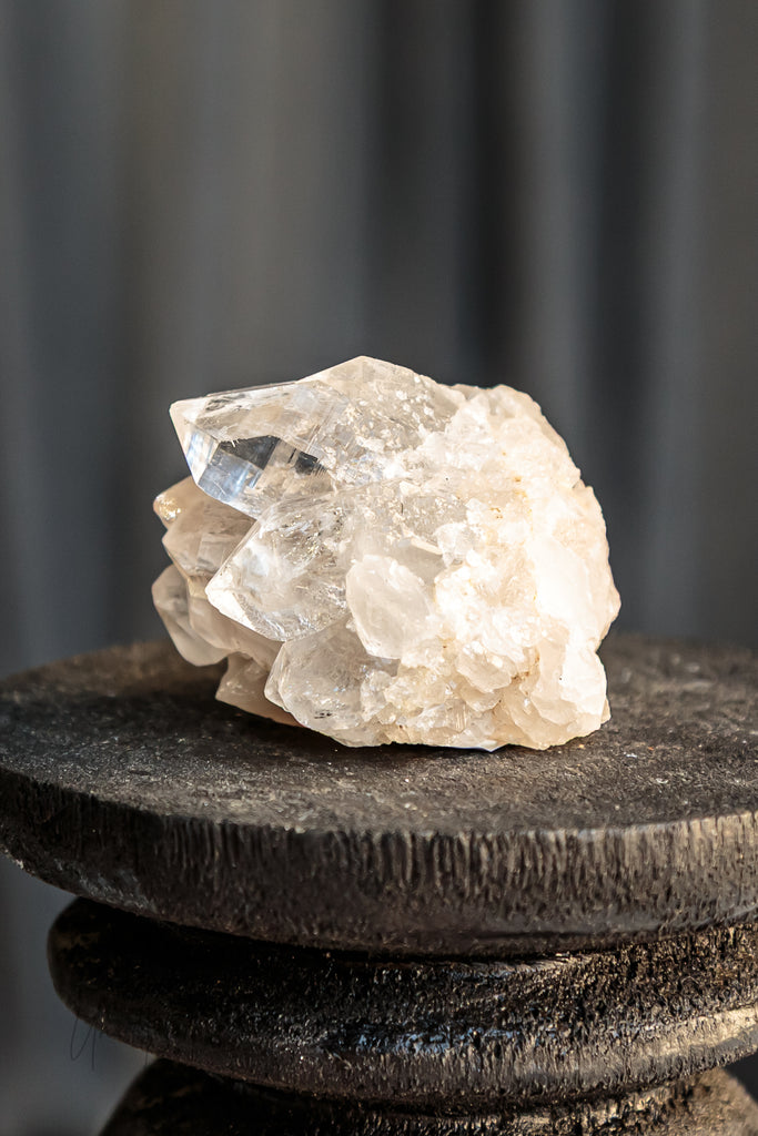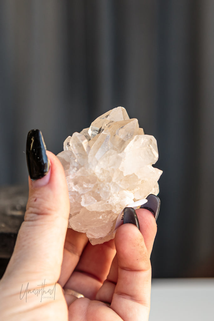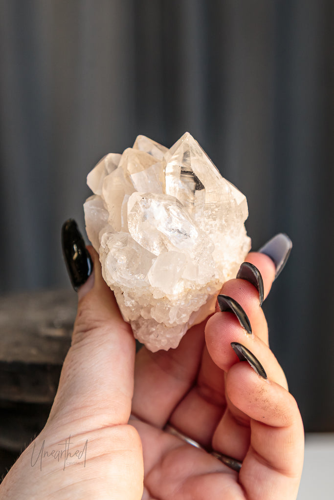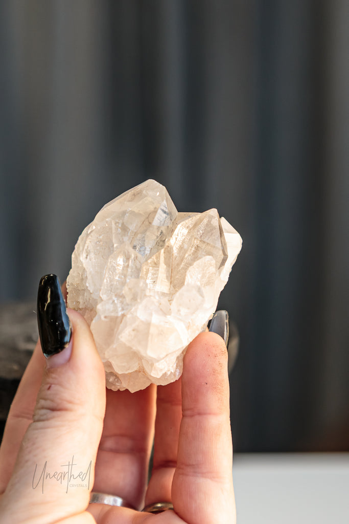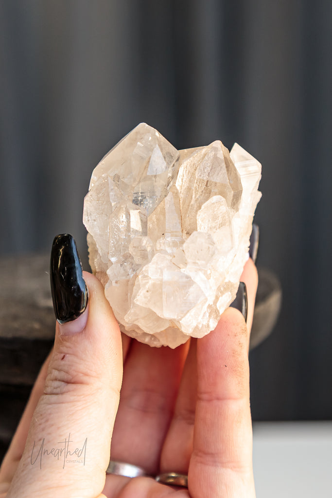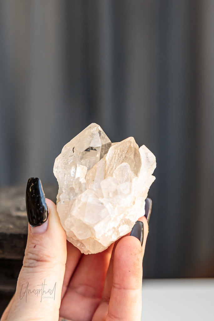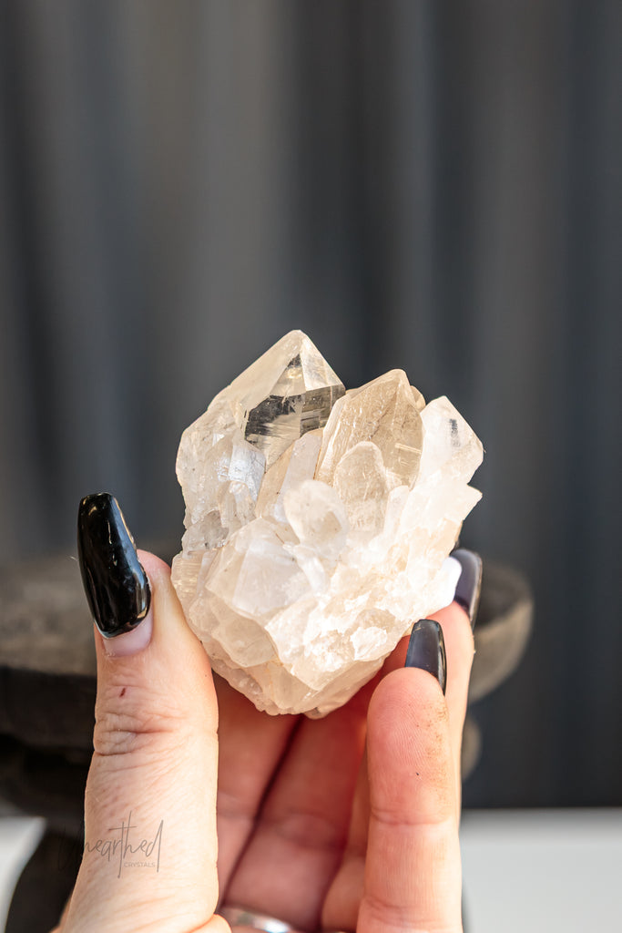 Clear Quartz is a form of Silicon Dioxide (SiO₂) and belongs to the hexagonal crystal system. It forms in long, prismatic points and can often be found in clusters or stunning solitary formations. Its transparency comes from the purity of its growth environment—and even microscopic inclusions can cause fabulous rainbows inside.