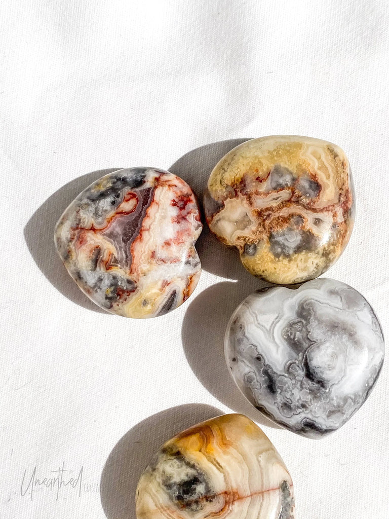 Physically, Crazy Lace Agate is beneficial for the endocrine system and the heart and works against skin disorders such as acne or eczema. It is also said to be excellent for increasing stamina and energy. Better for the soul than mainlining Red Bull at any rate.