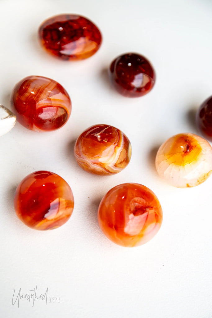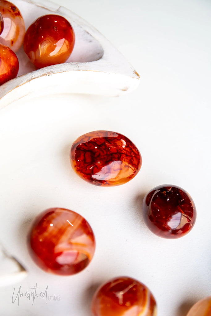 Physically, Carnelian has been historically linked to vitality and stamina—perfect for keeping both your body and spirit energised. In ancient lore, it was worn as a talisman for protection in battle and to attract success.
