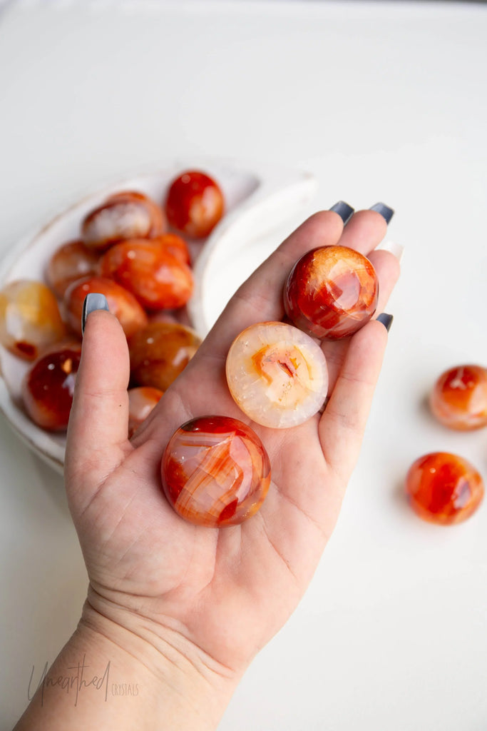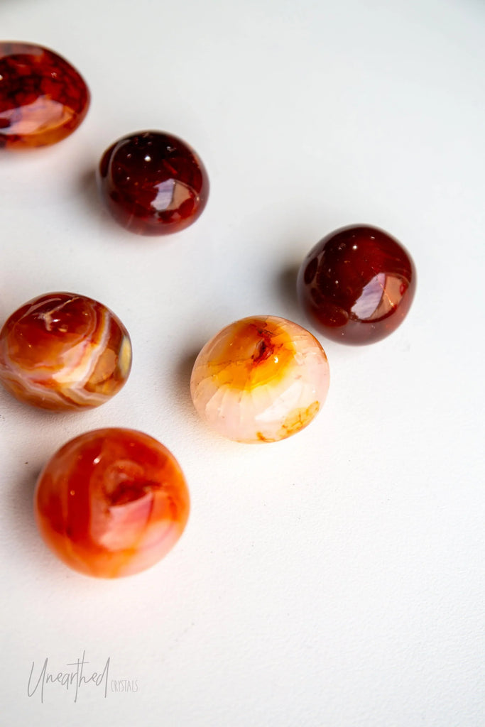 COMPANION STONES: Citrine (to amplify joy and creativity), Red Jasper (for grounding energy), and Rose Quartz (to balance fiery passion with self-love).