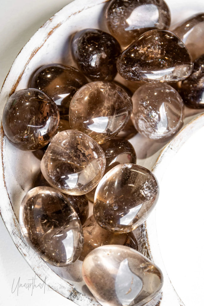 Metaphysically, Smokey Quartz connects deeply to the Root Chakra, anchoring you to the stabilising energy of the Earth. It helps clear out low-vibe energy, whether it’s emotional baggage, stress, or that energy vampire of a coworker. It’s also a master at transmuting negative vibes into something more positive and manageable.