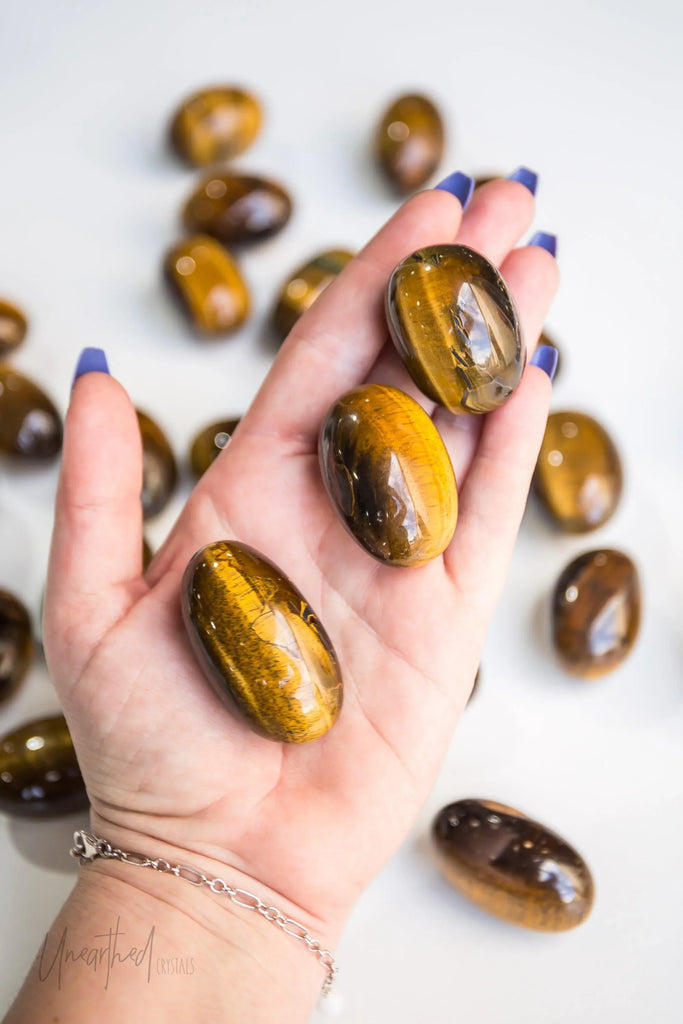 Tiger Eye is the ultimate power crystal, here to help you slay your goals while keeping your feet firmly on the ground. With its golden-brown shimmer and earthy vibes, this stone is like having a motivational coach and a calming bestie all in one.