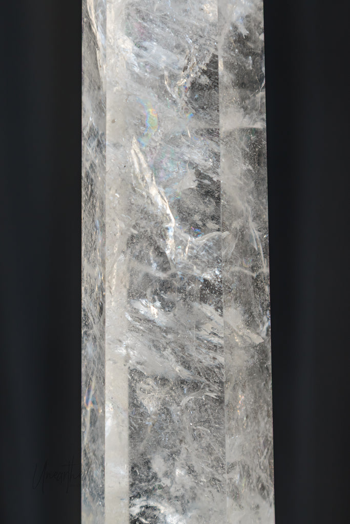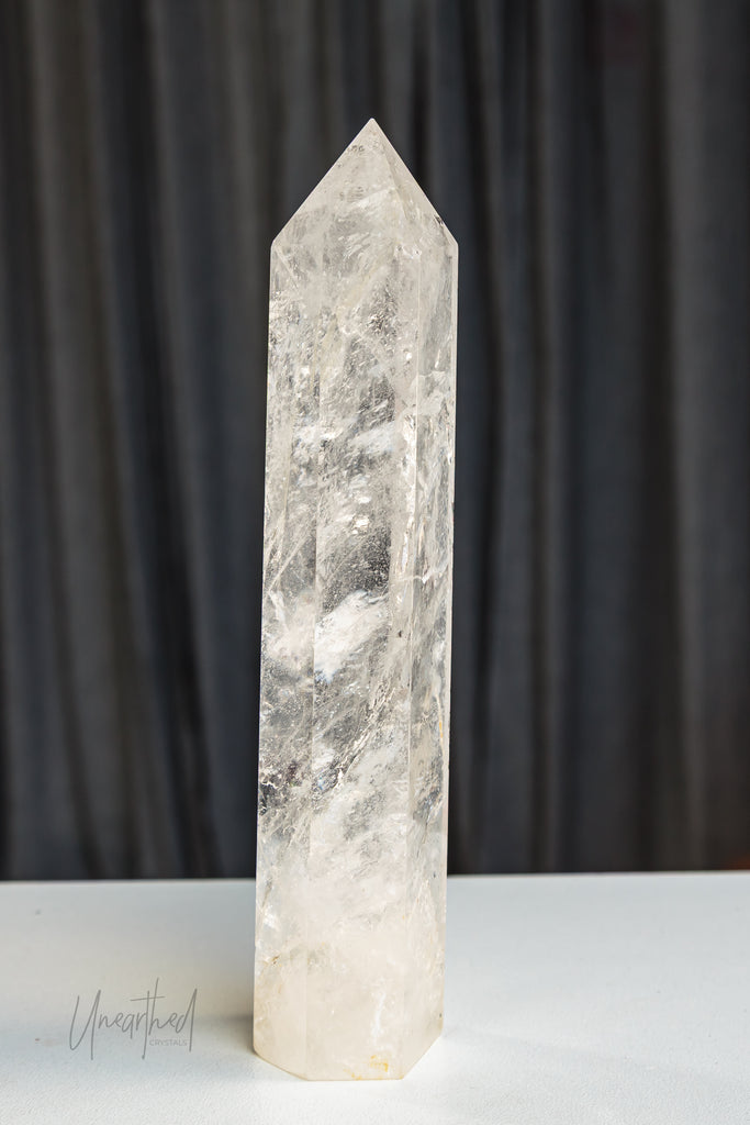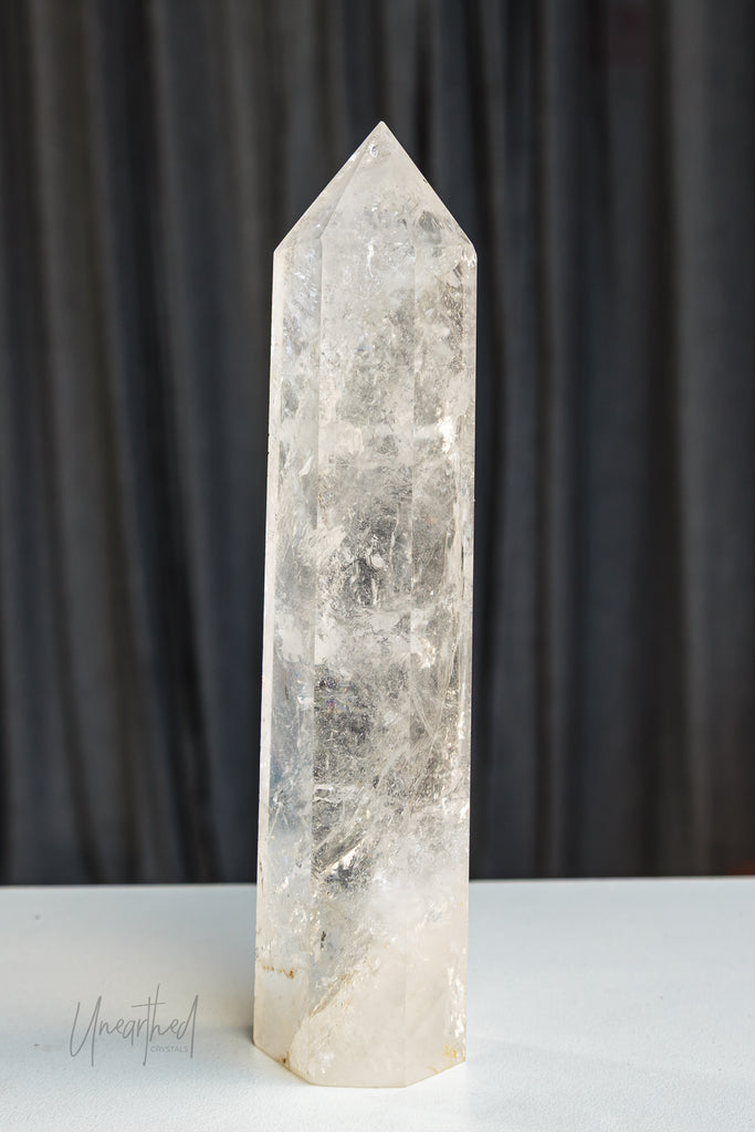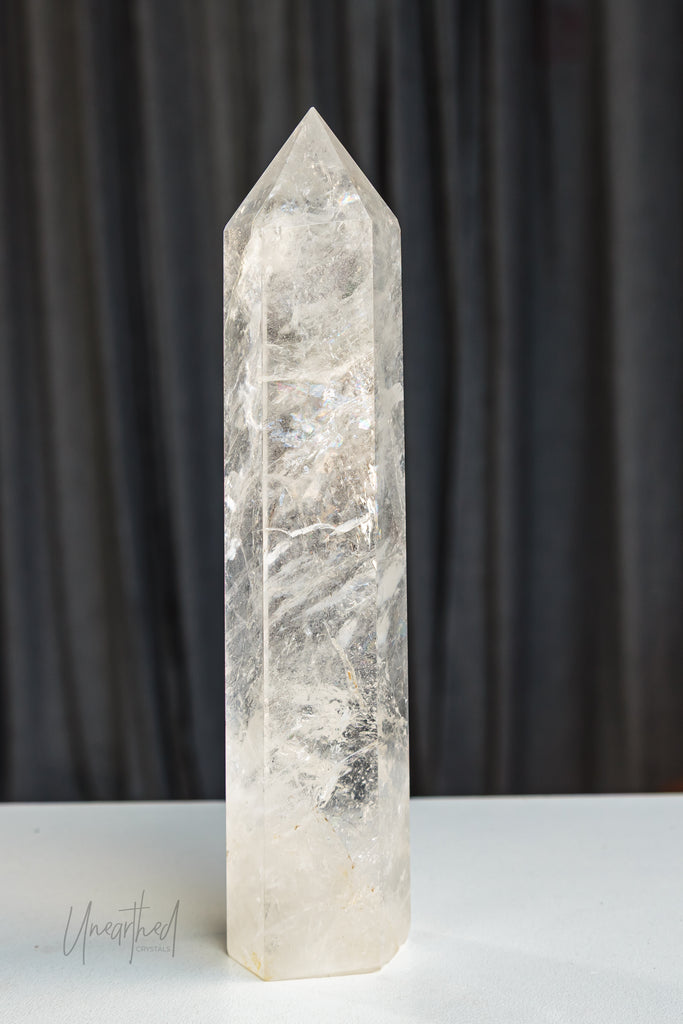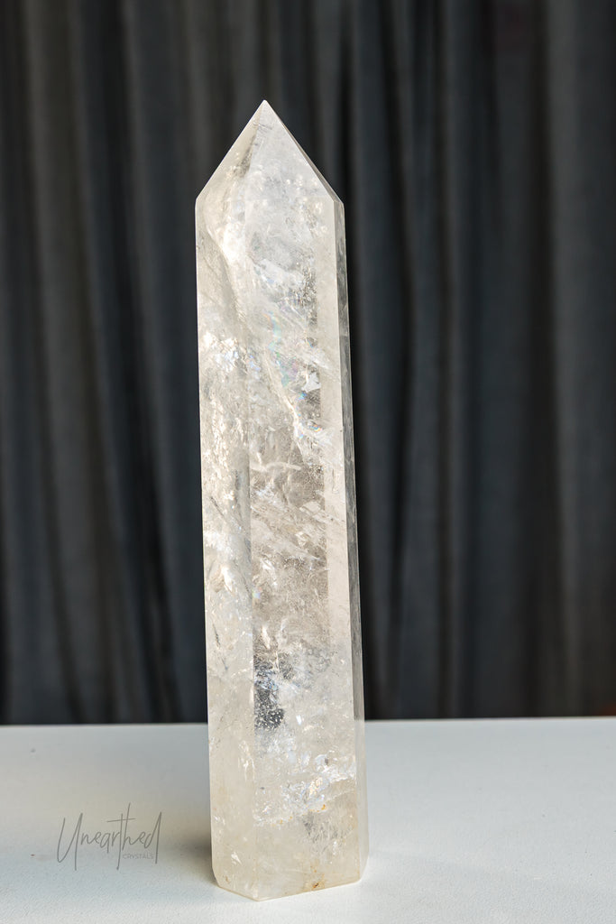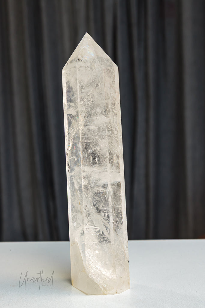 Clear Quartz is a form of Silicon Dioxide (SiOā) and belongs to the hexagonal crystal system. It forms in long, prismatic points and can often be found in clusters or stunning solitary formations. Its transparency comes from the purity of its growth environmentāand even microscopic inclusions can cause fabulous rainbows inside.