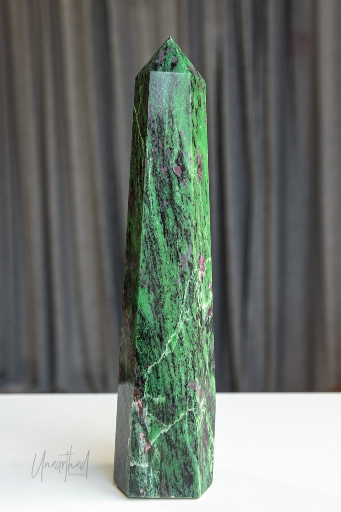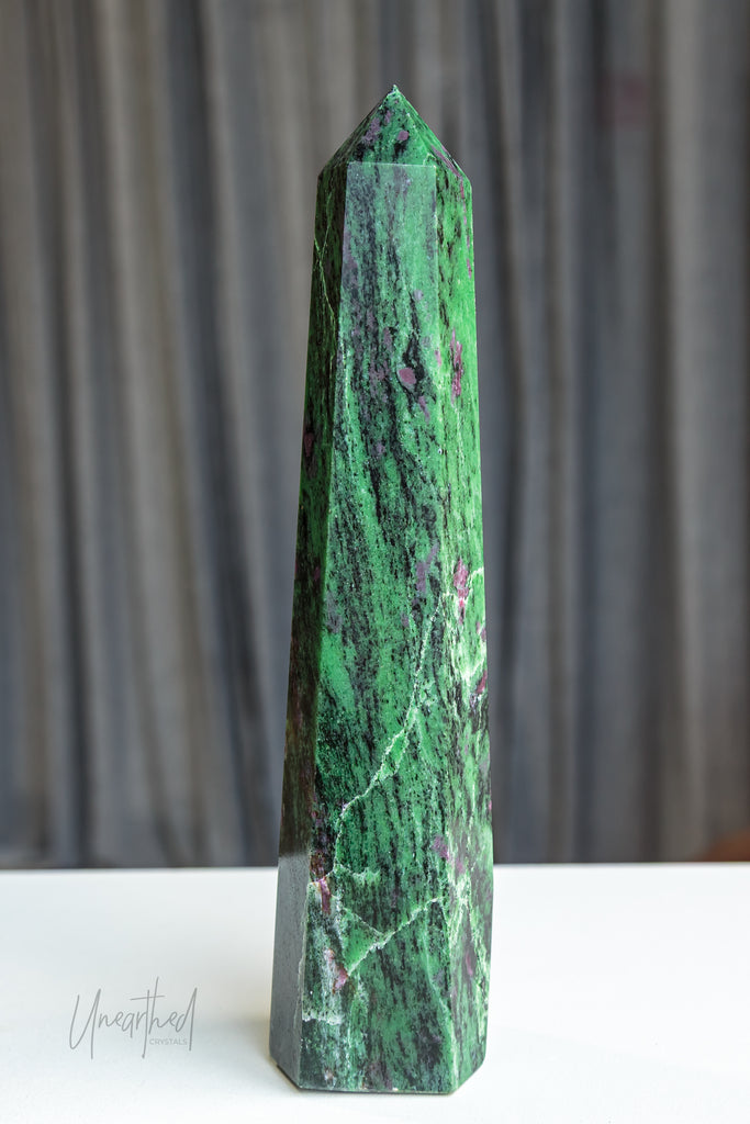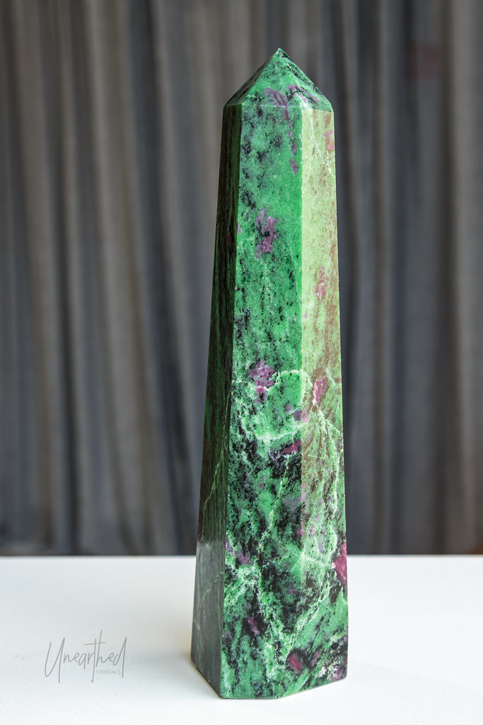 Ruby Zoisite is the glow-up of grounded magic—lush green Zoisite flecked with juicy Ruby and streaks of inky black. It looks like a wild garden after rain and feels like a courageous reset: passion without chaos, compassion without collapse. This stone takes you from “I’m overwhelmed” to “I’m centred and ready,” marrying heart healing with practical momentum so your next chapter actually happens.