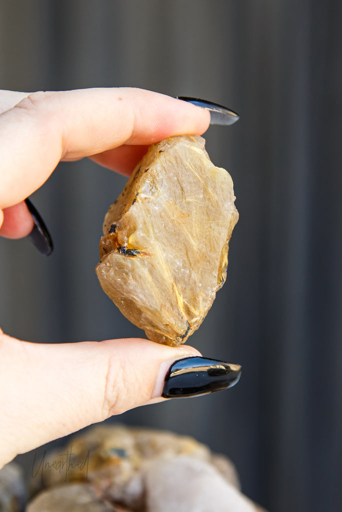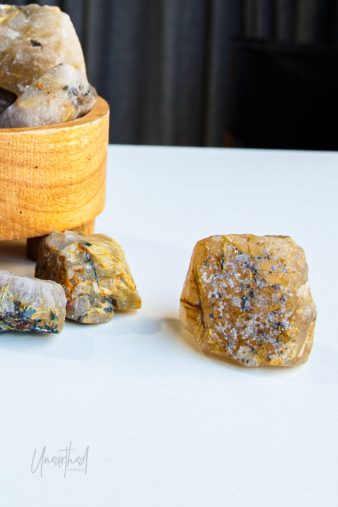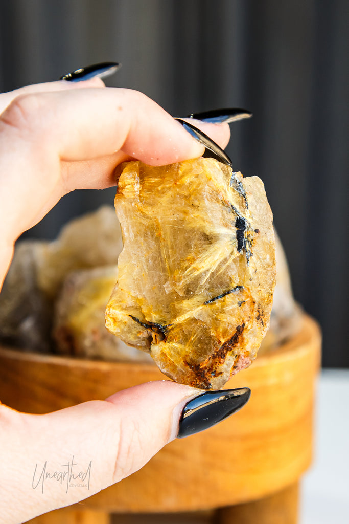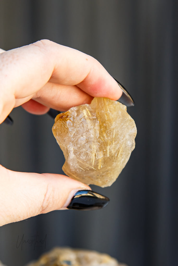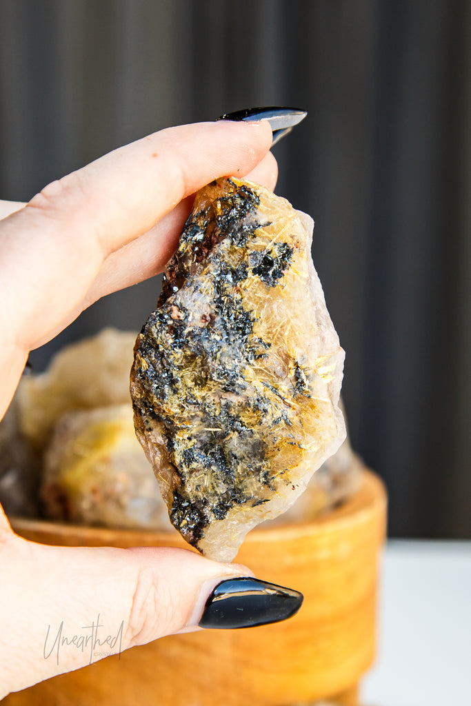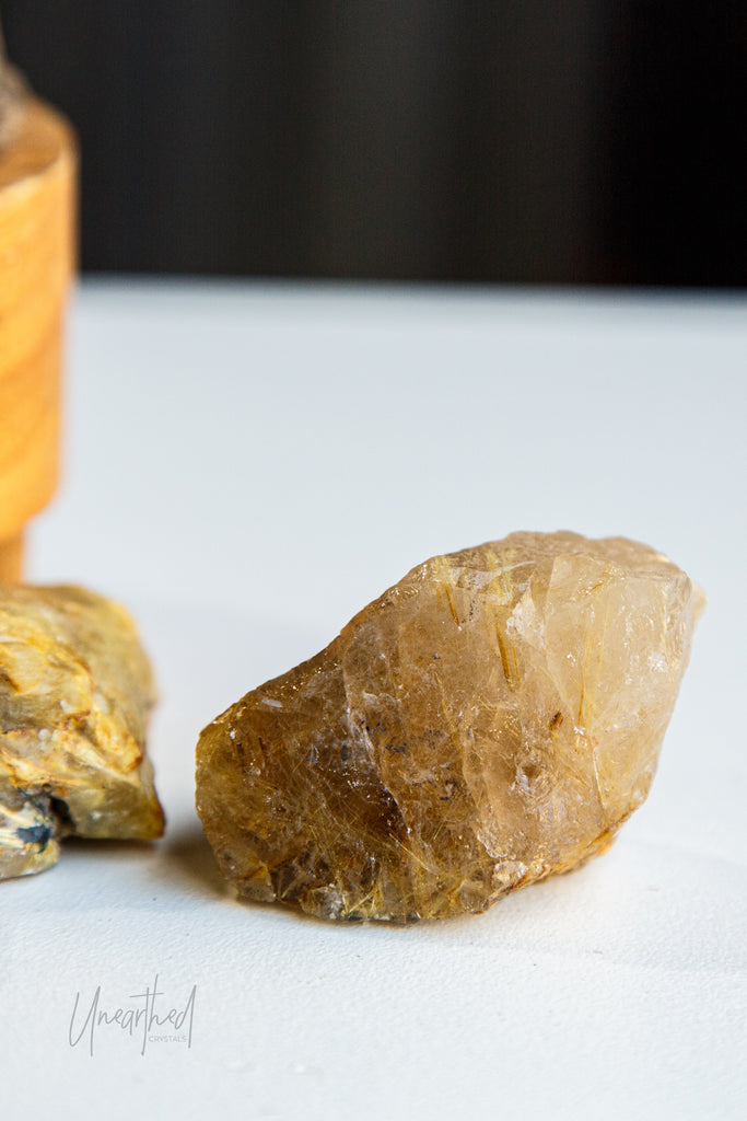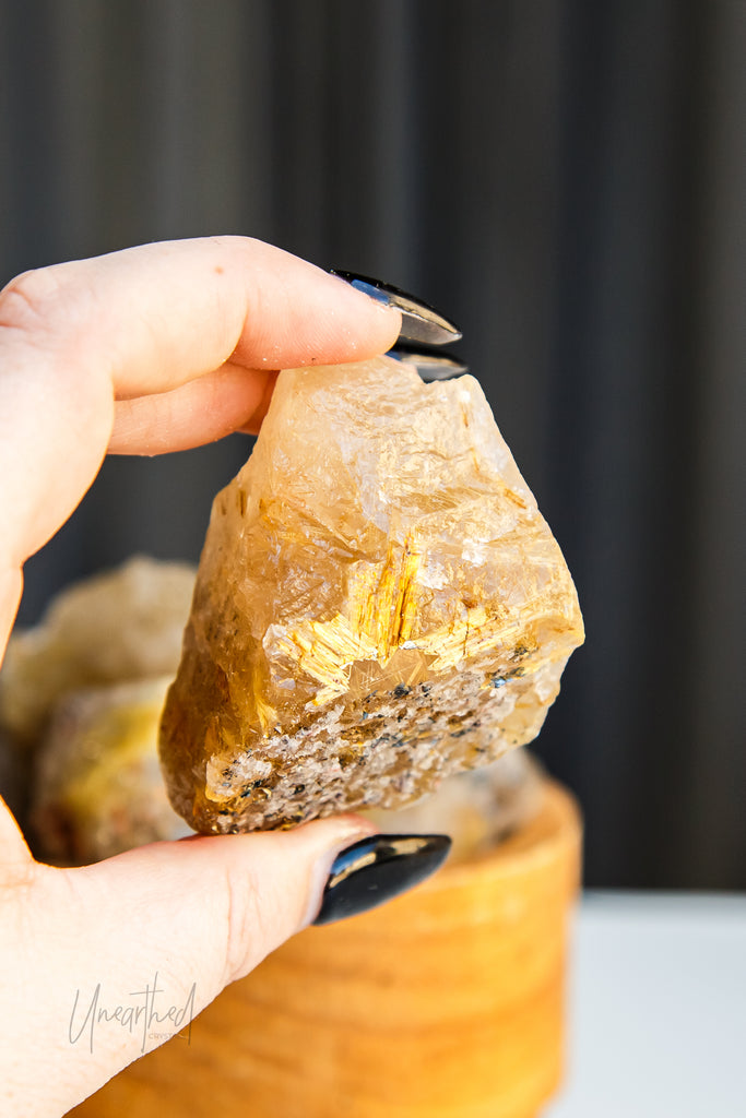 The golden strands you see are Rutile, a titanium dioxide mineral, that naturally grows within the Quartz. These inclusions form in a needle-like pattern, and no two pieces are ever alike—making each Golden Rutile Quartz a little masterpiece of metaphysical engineering.