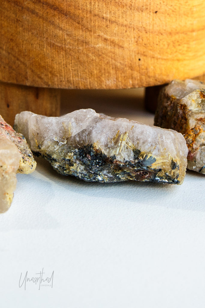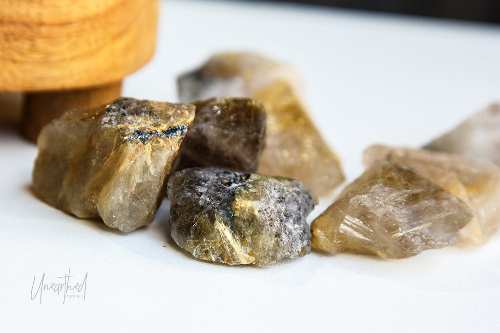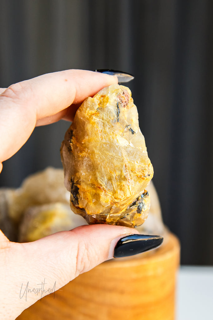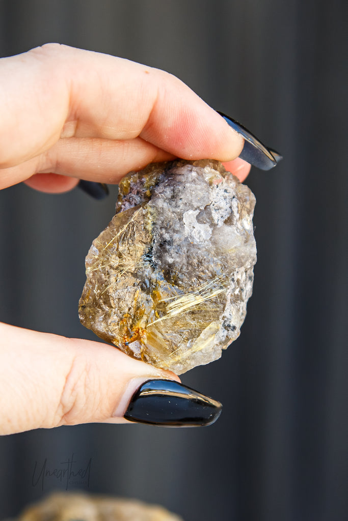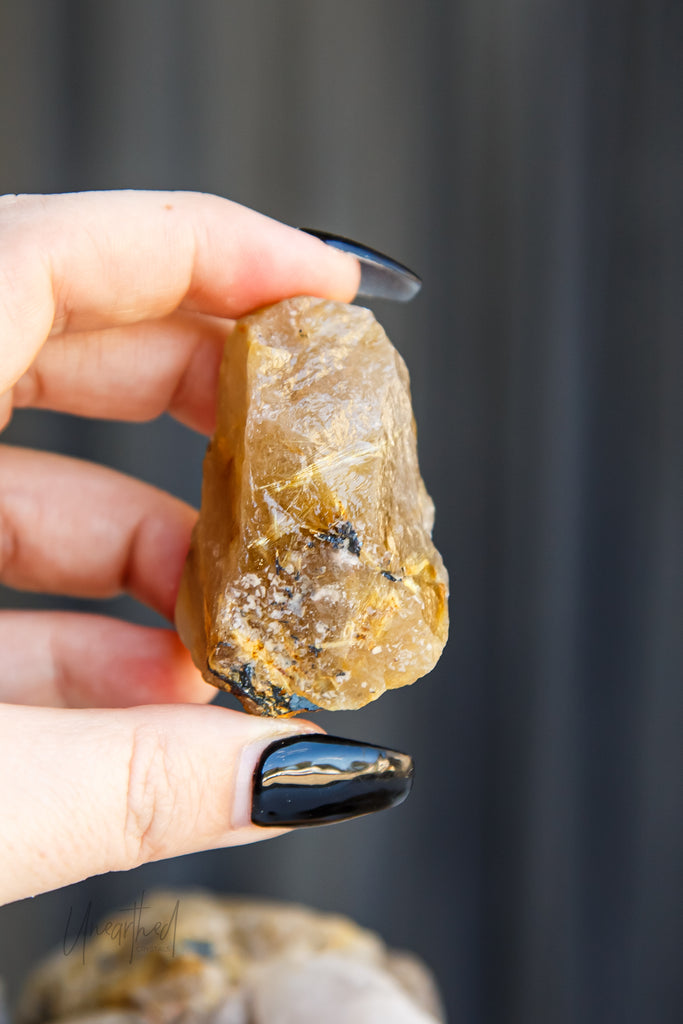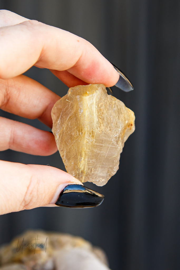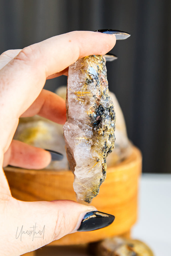 The golden strands you see are Rutile, a titanium dioxide mineral, that naturally grows within the Quartz. These inclusions form in a needle-like pattern, and no two pieces are ever alike—making each Golden Rutile Quartz a little masterpiece of metaphysical engineering.
