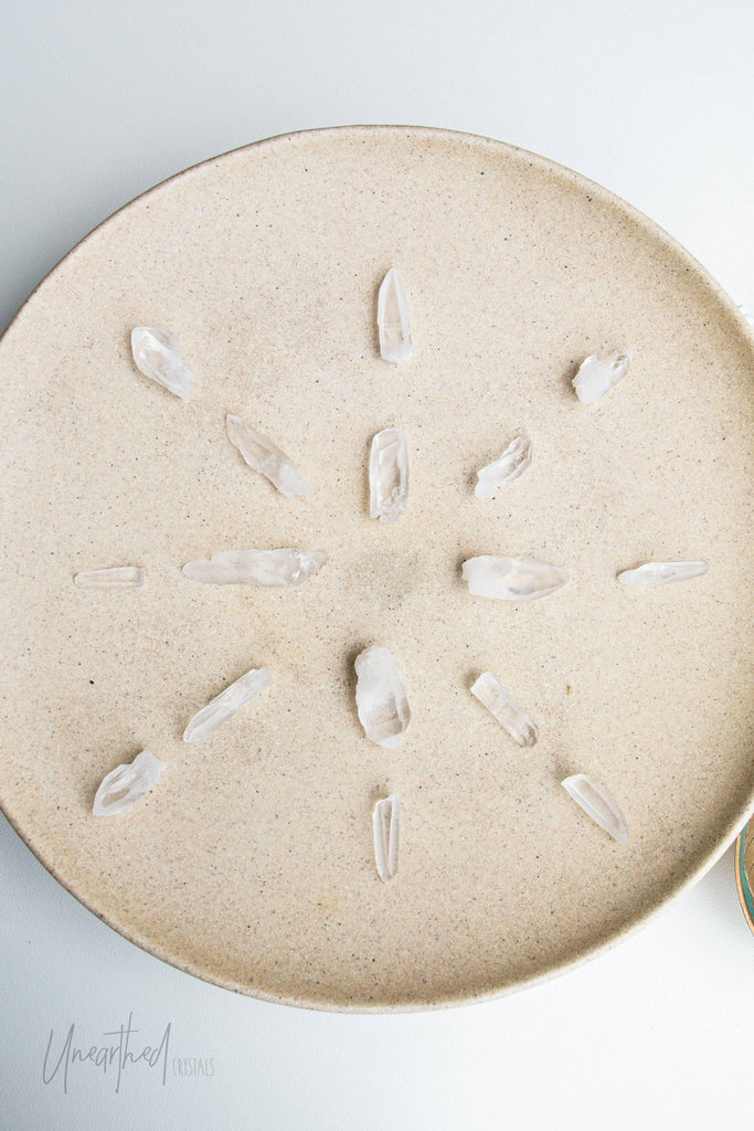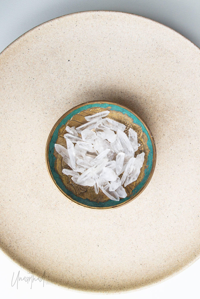 Grab a Quartz point (any size will do), and “connect the dots.” Starting from the outer stones, draw an invisible line from one crystal to the next, working your way inward until all the stones are energetically linked. Imagine a glowing web of light forming with each connection. Boom—your grid is on.