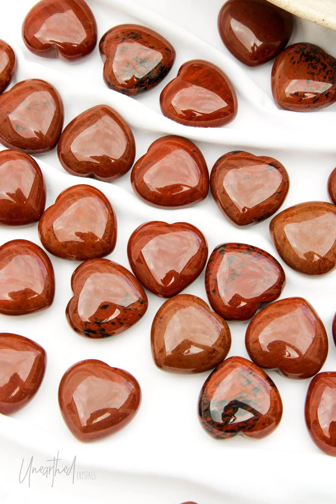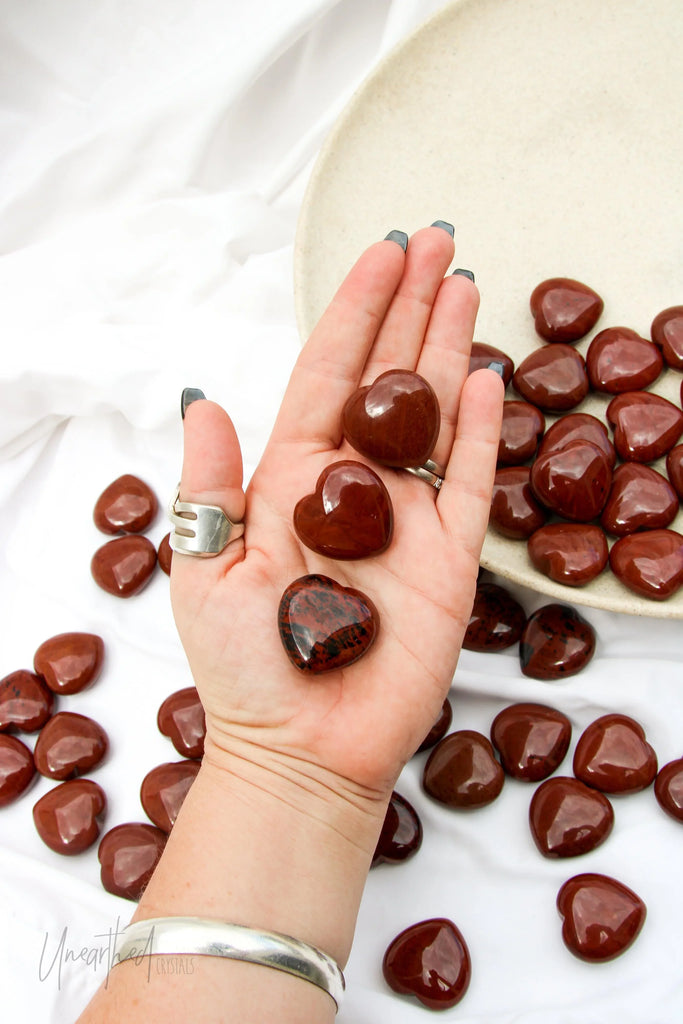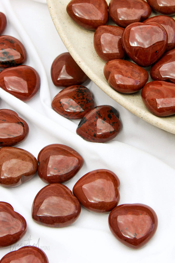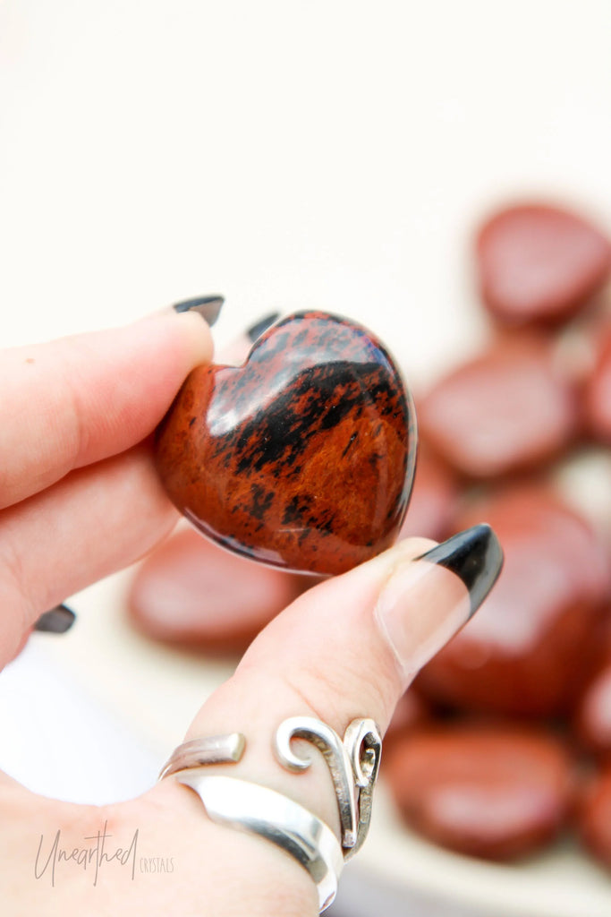 Mahogany Obsidian is a type of Obsidian with Hematite or Magnetite inclusions within, giving it its red, brownish colour.