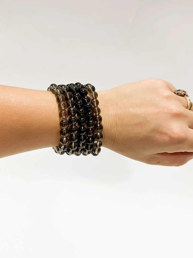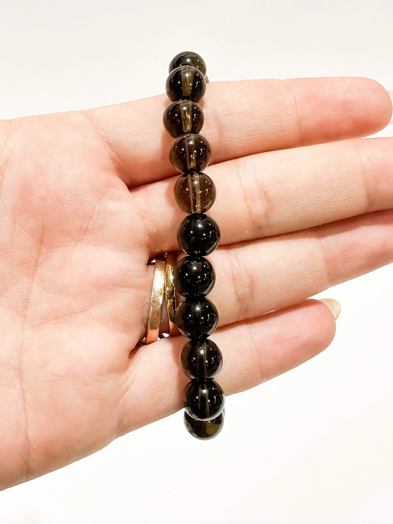 Smokey Quartz Bead Stretch Bracelet | 8mm