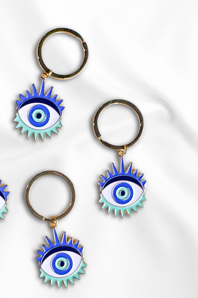Carry protection and style wherever you go with our Evil Eye Keyring! Made from sleek golden metal and adorned with a vibrant enamel charm, this keyring isnât just a practical accessoryâitâs a powerful symbol of protection.
