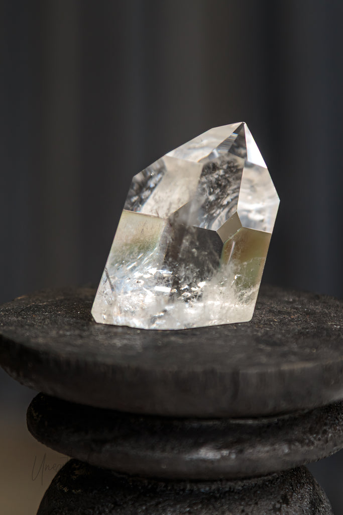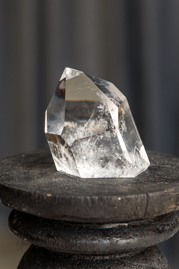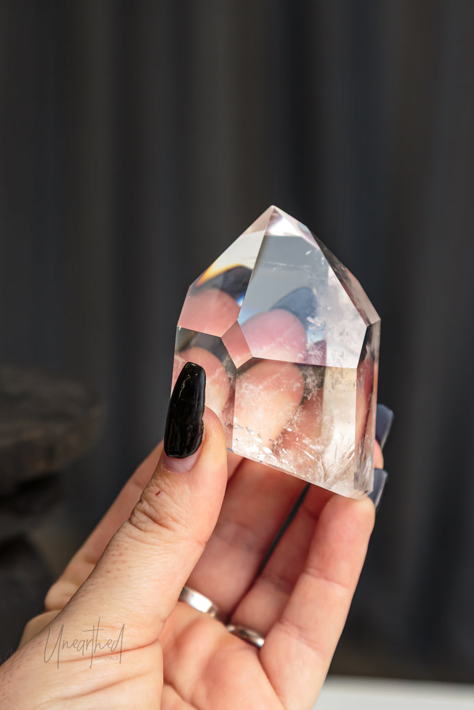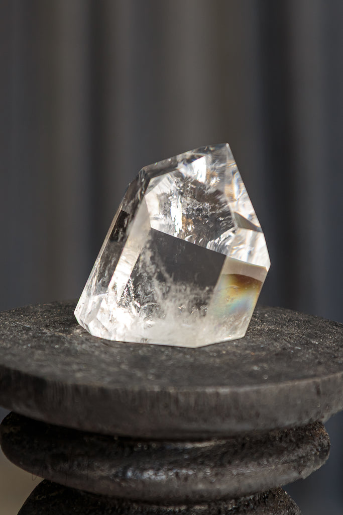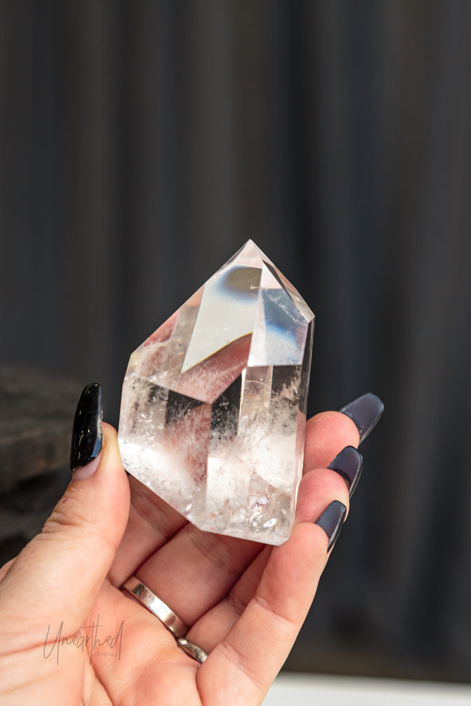 Clear Quartz is a form of Silicon Dioxide (SiO₂) and belongs to the hexagonal crystal system. It forms in long, prismatic points and can often be found in clusters or stunning solitary formations. Its transparency comes from the purity of its growth environment—and even microscopic inclusions can cause fabulous rainbows inside.