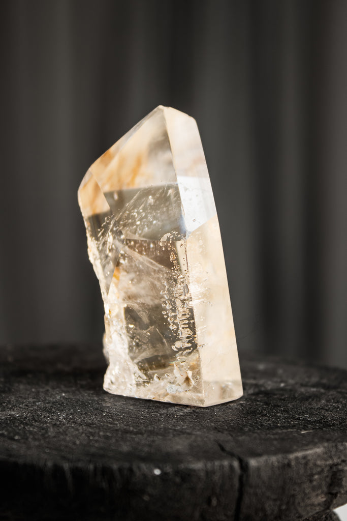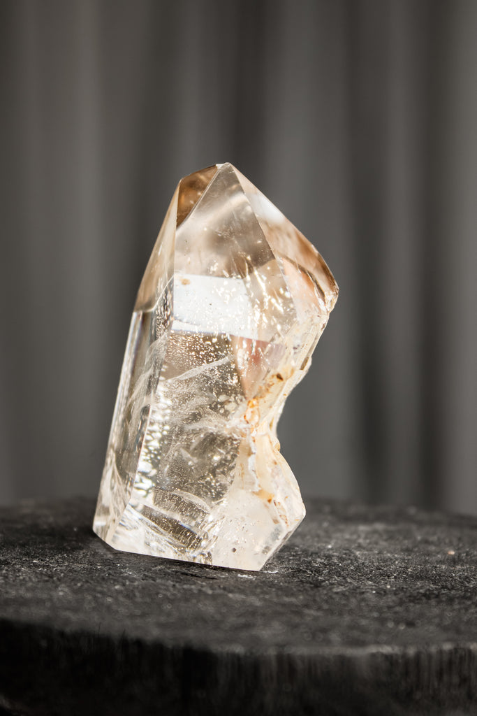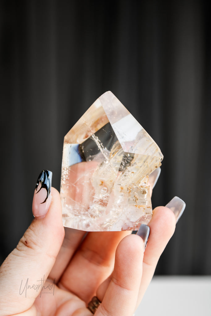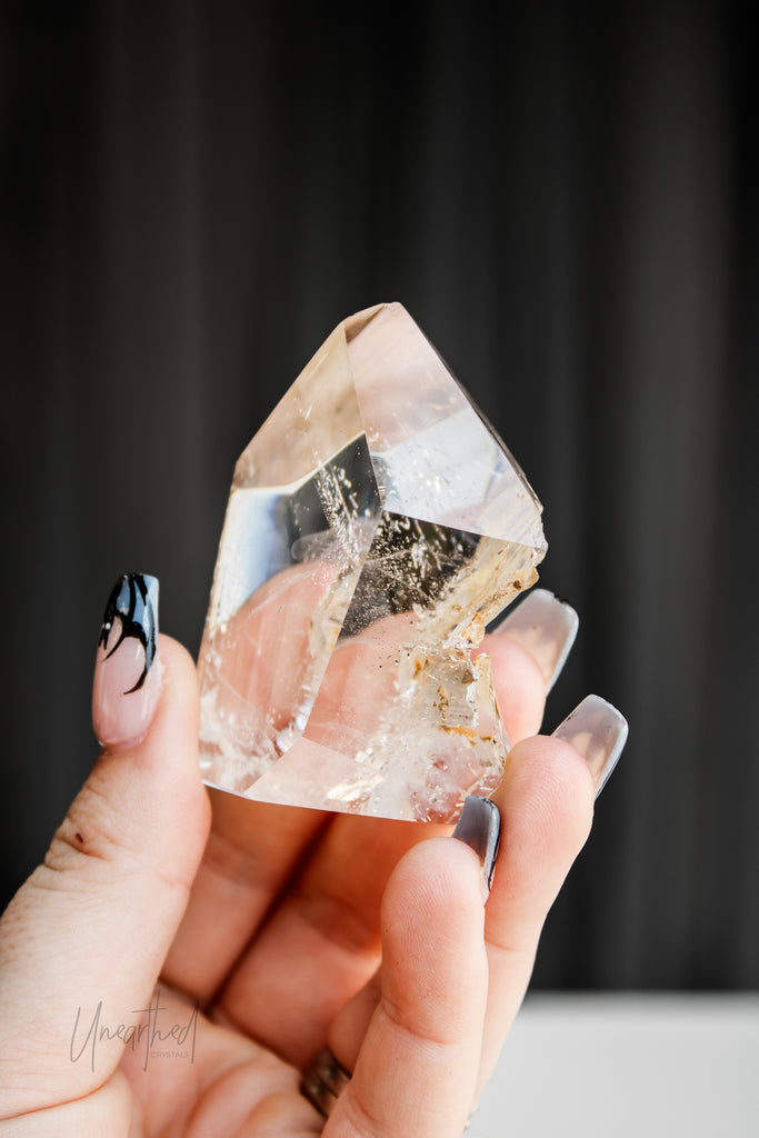 Clear Quartz is a form of Silicon Dioxide (SiO₂) and belongs to the hexagonal crystal system. It forms in long, prismatic points and can often be found in clusters or stunning solitary formations. Its transparency comes from the purity of its growth environment—and even microscopic inclusions can cause fabulous rainbows inside.