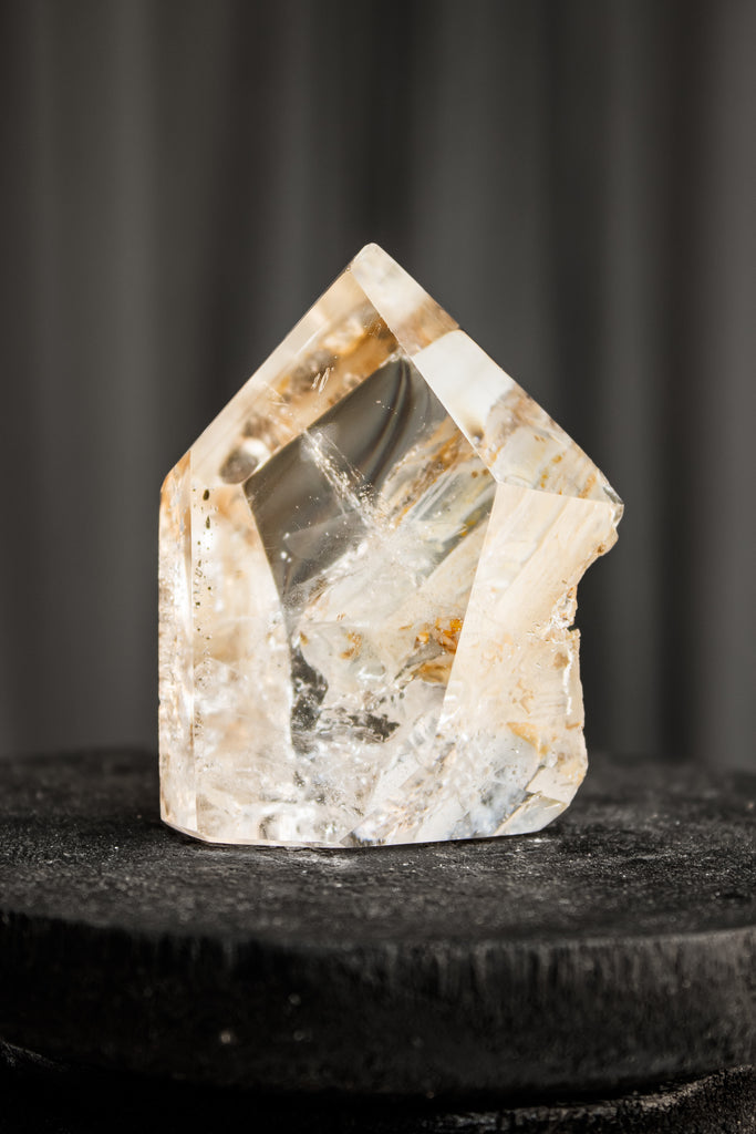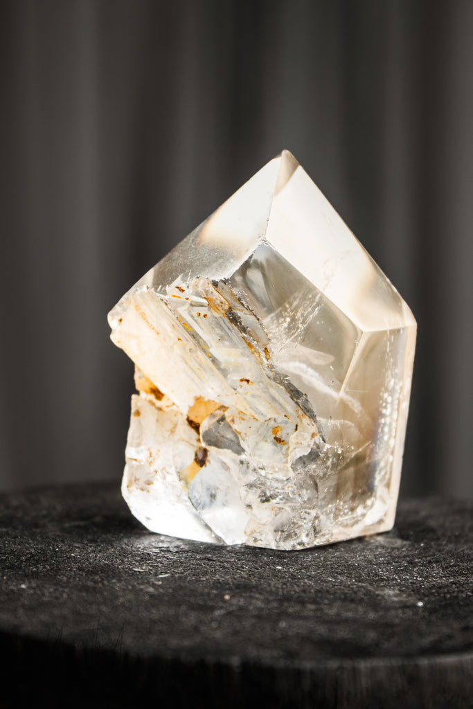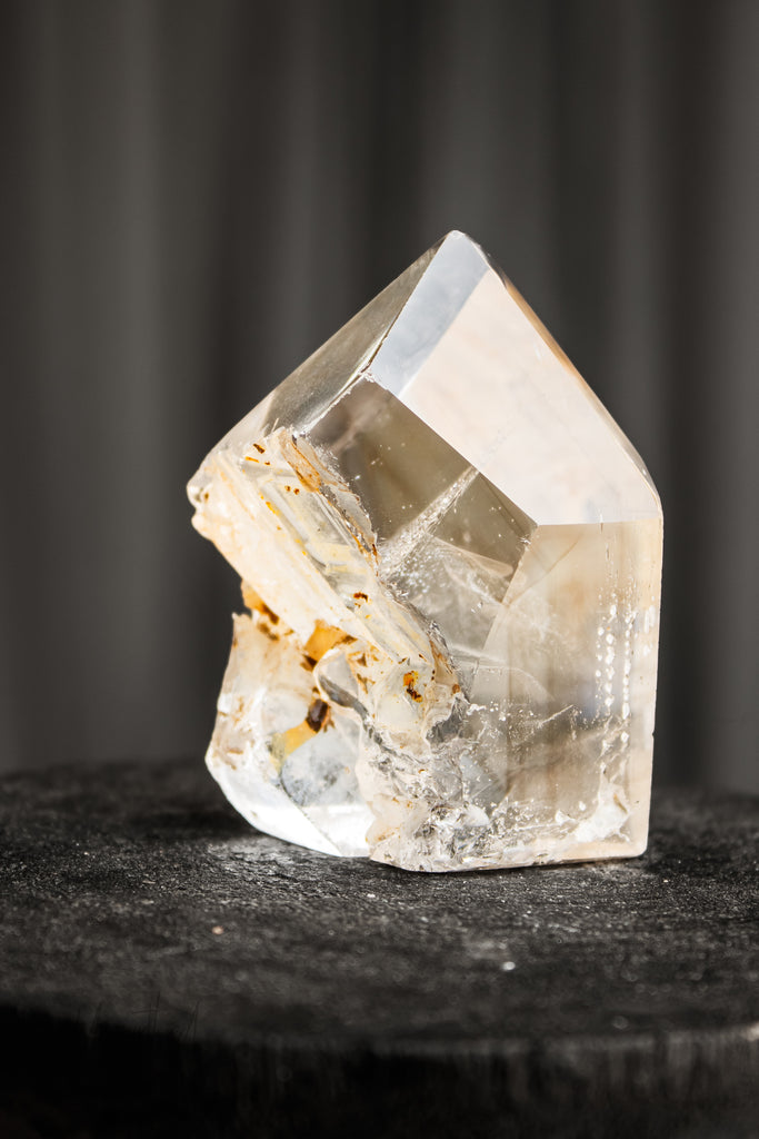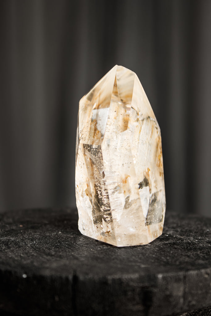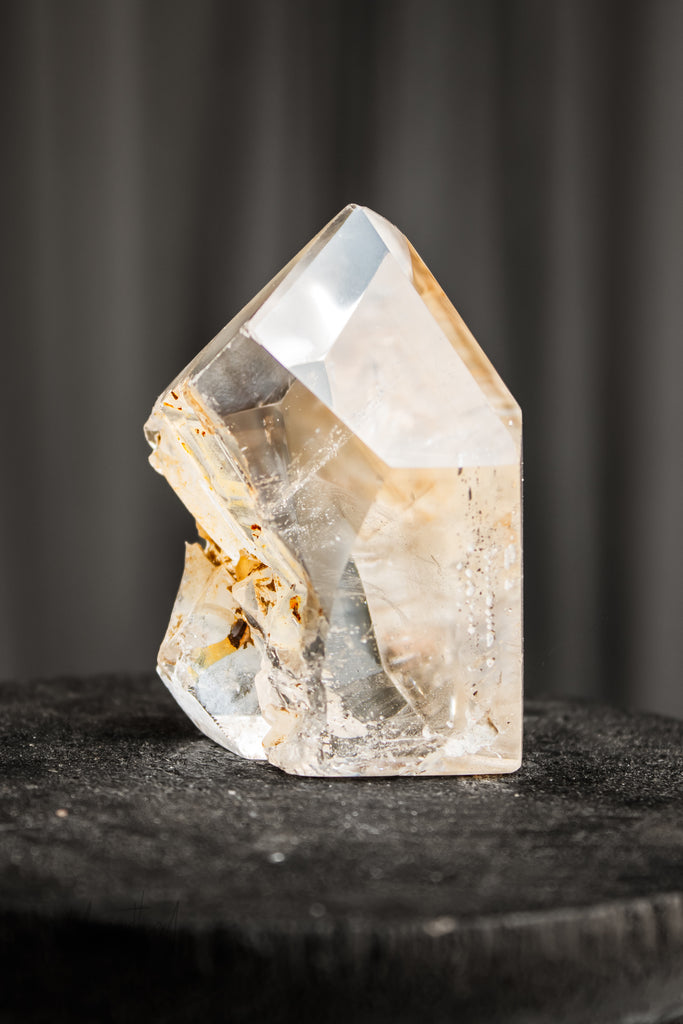 Clear Quartz is a form of Silicon Dioxide (SiO₂) and belongs to the hexagonal crystal system. It forms in long, prismatic points and can often be found in clusters or stunning solitary formations. Its transparency comes from the purity of its growth environment—and even microscopic inclusions can cause fabulous rainbows inside.